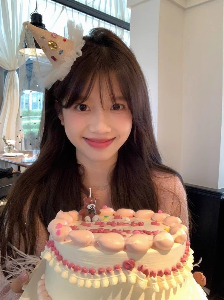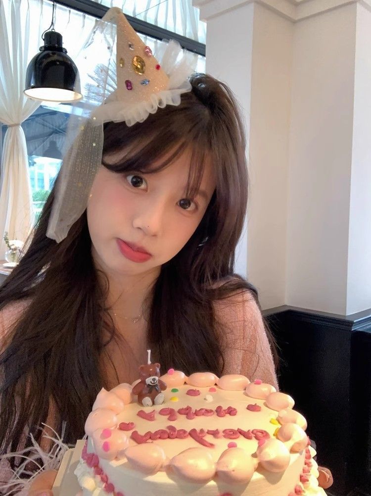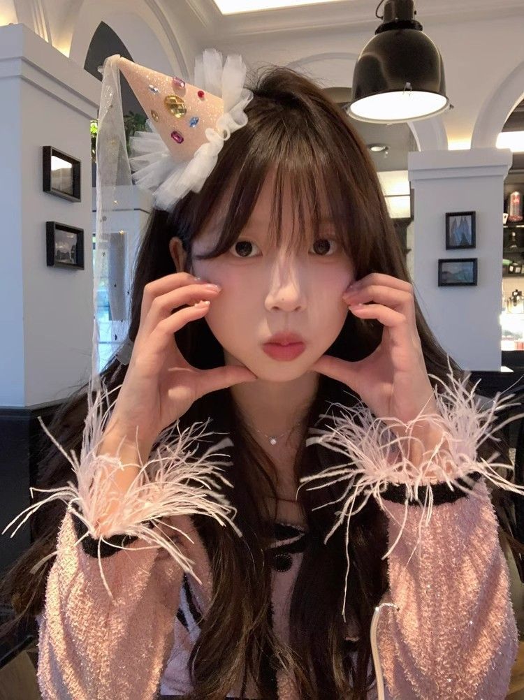 • 라인스톤 핑크 생일 모자