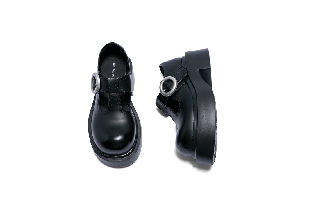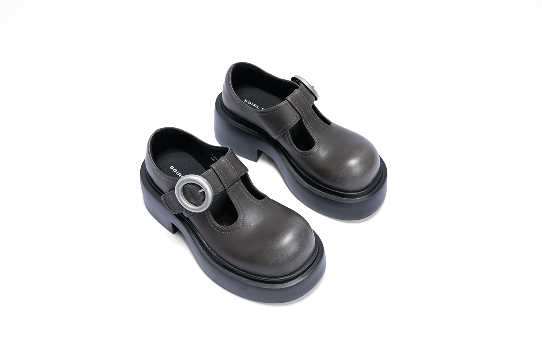 SGIRL TWTW2024 가을 새로운 두꺼운 밑창 Mary Jane 두꺼운 하이힐 작은 높이 증가 두꺼운 밑창 작은 가죽 신발스토어 가기