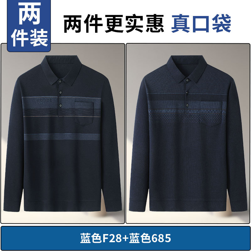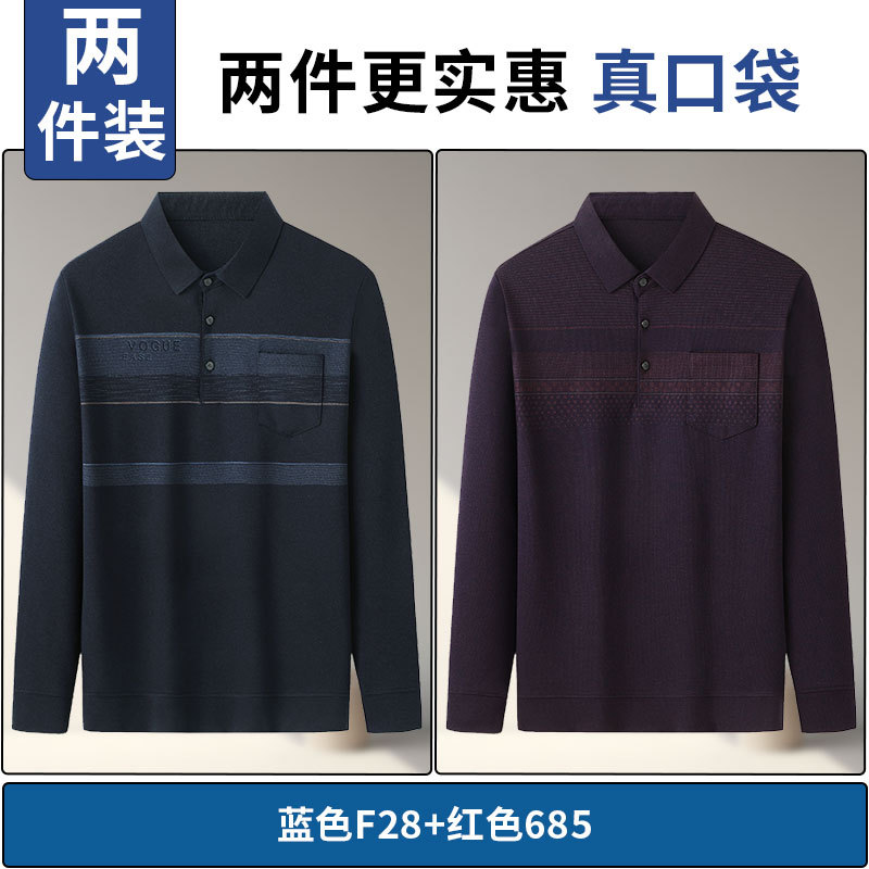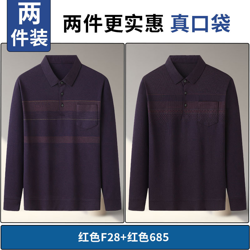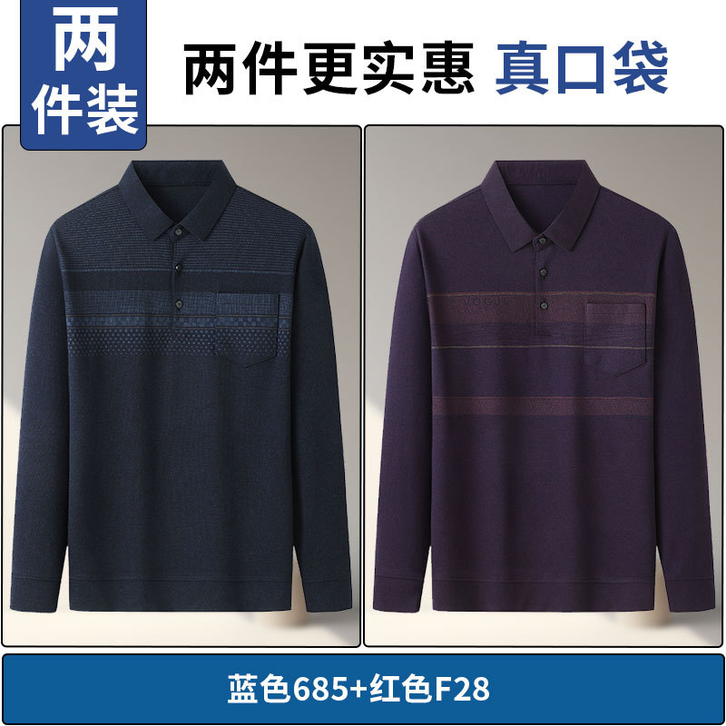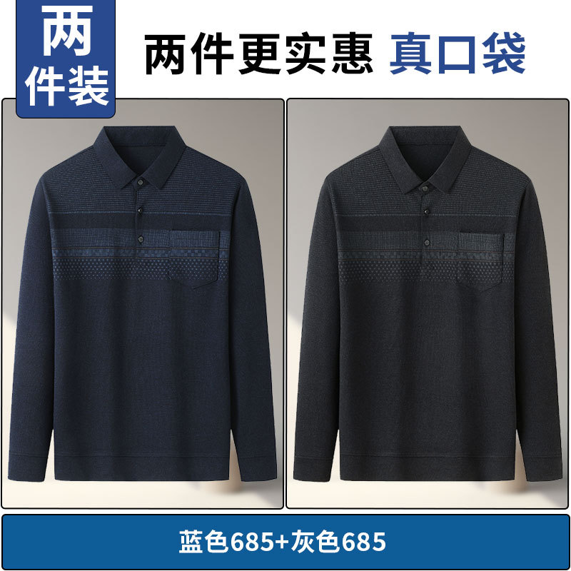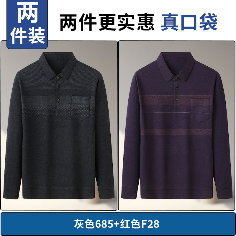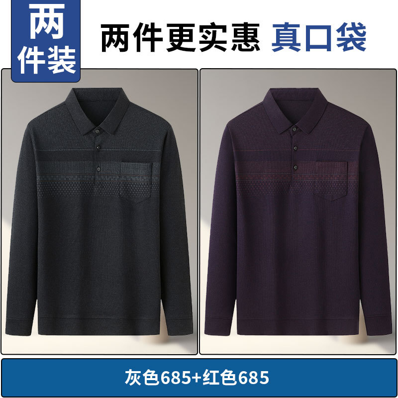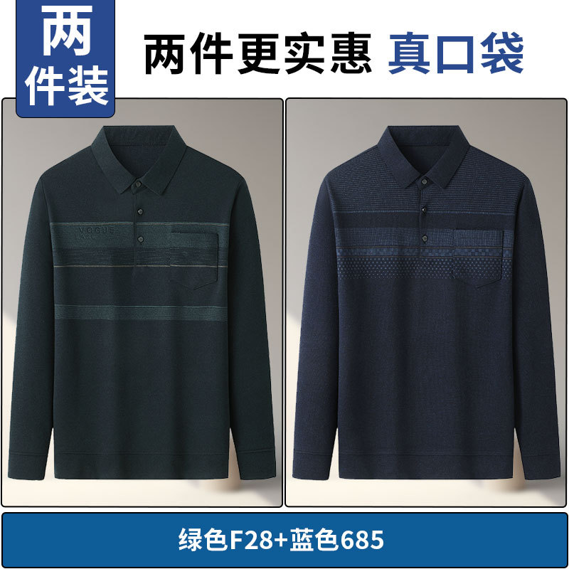 아빠의 긴 소매 티셔츠 봄과 가을 새로운 중년 및 노인 남성 할아버지 주머니 옷 남성용 옷깃 폴로 셔츠
