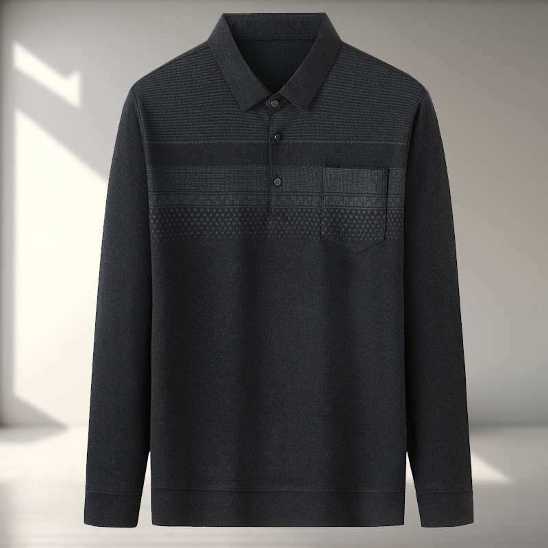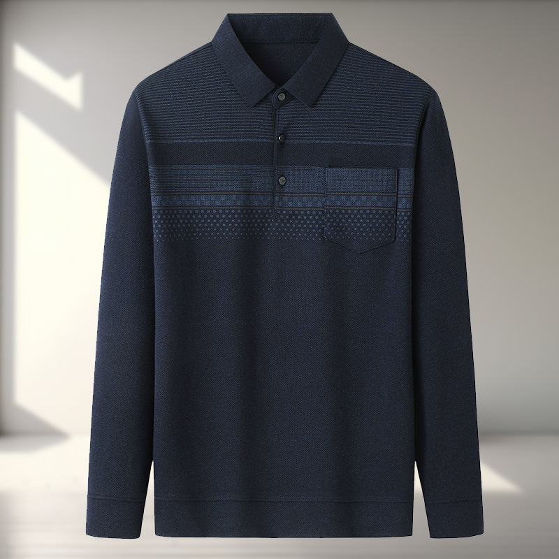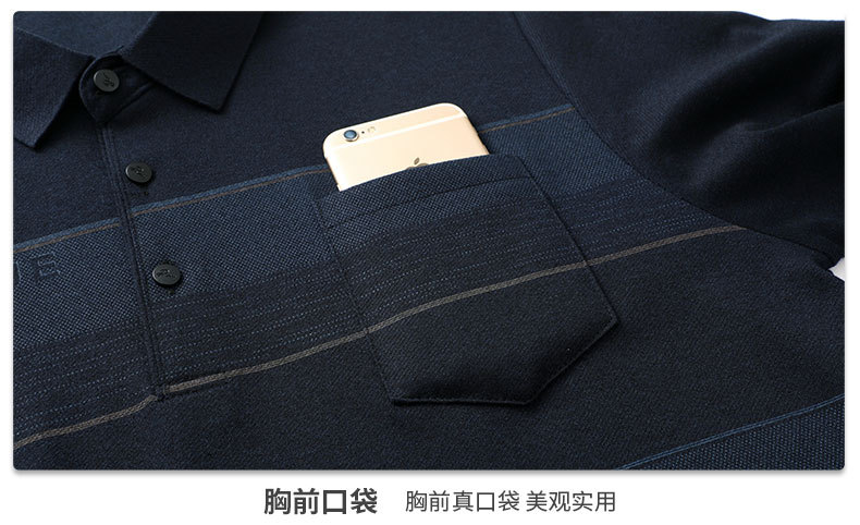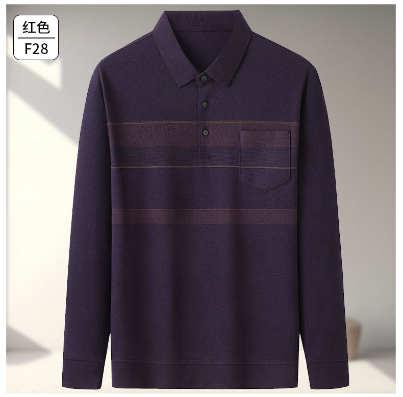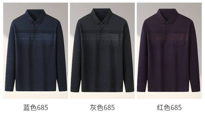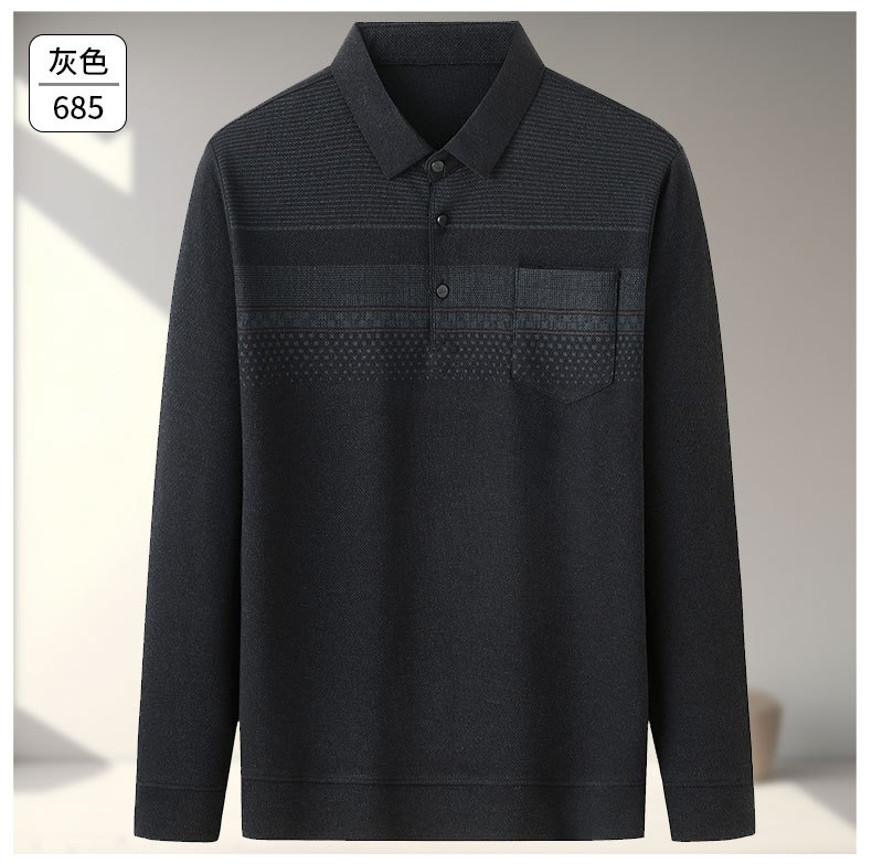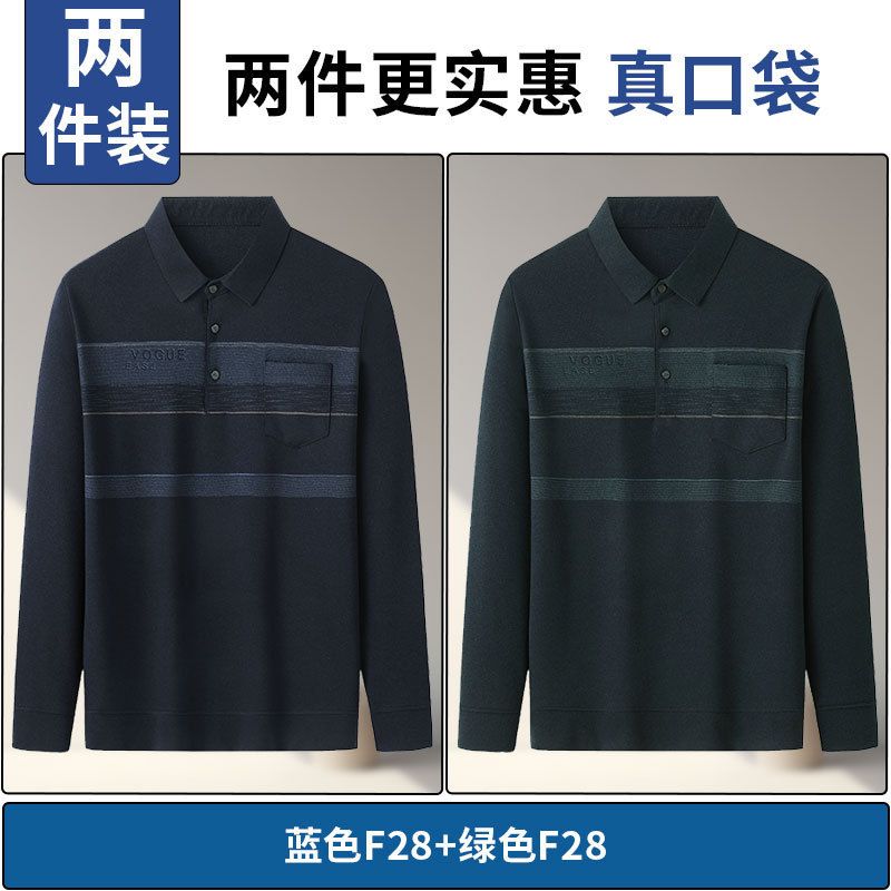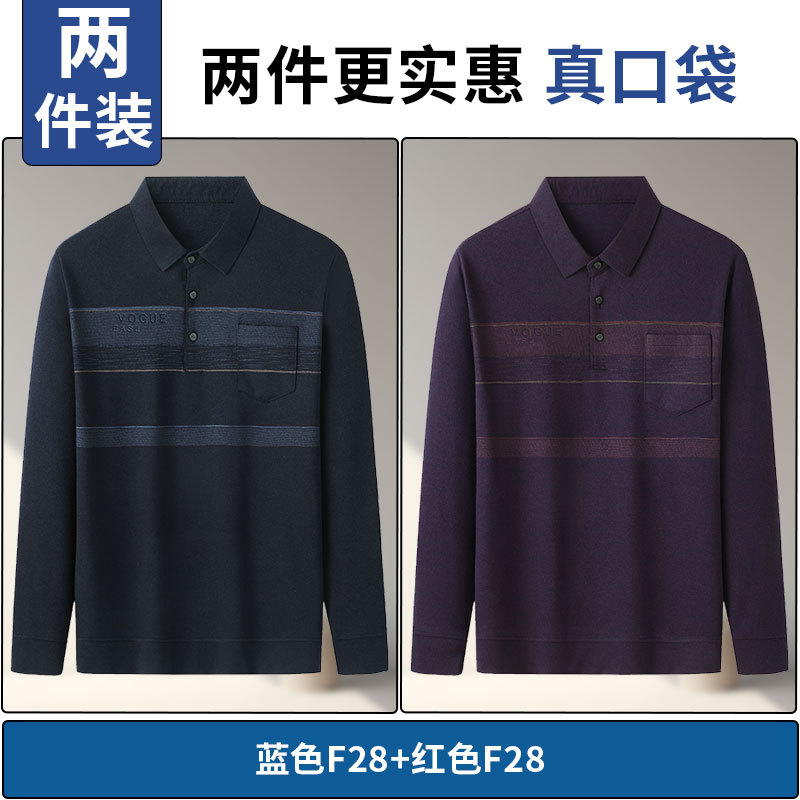 아빠의 긴 소매 티셔츠 봄과 가을 새로운 중년 및 노인 남성 할아버지 주머니 옷 남성용 옷깃 폴로 셔츠