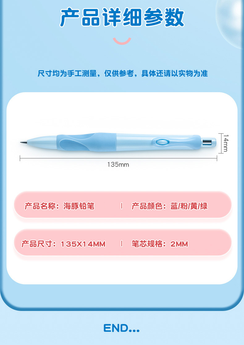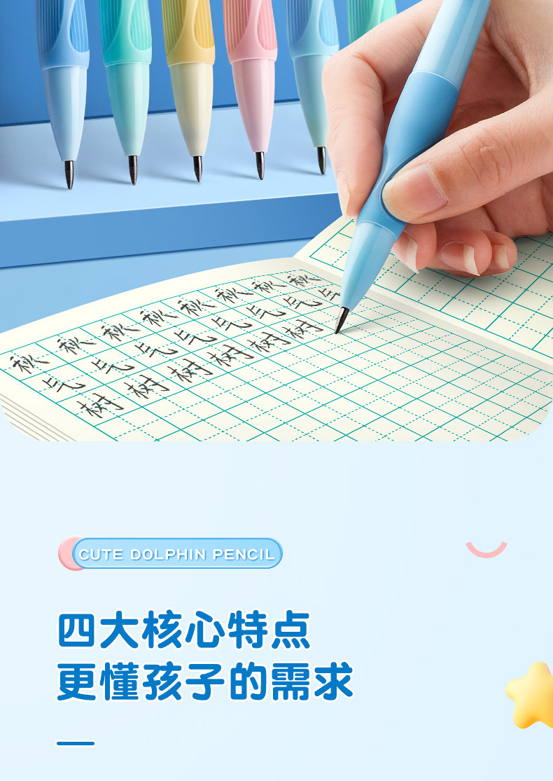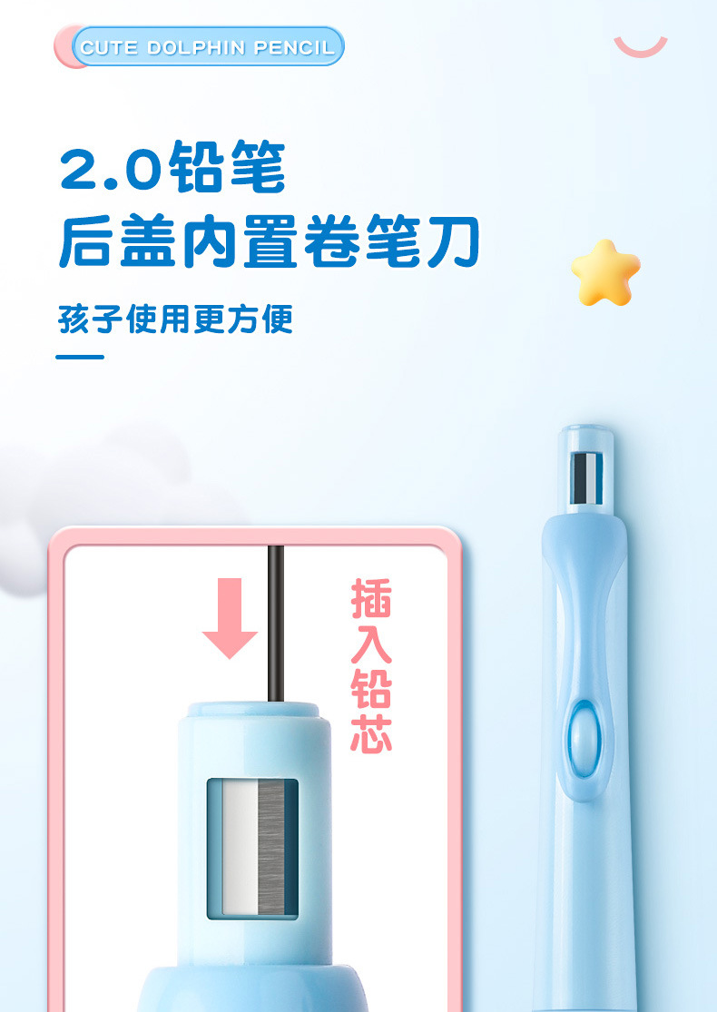 Tianzhuo 좋은 펜 돌고래 긍정적 인 자세 기계 연필 초등학교 학생들은 2.0 리드를 사용하여 2b 연필을 깨기 쉽지 않은 고정 위치를 수정합니다.스토어 가기