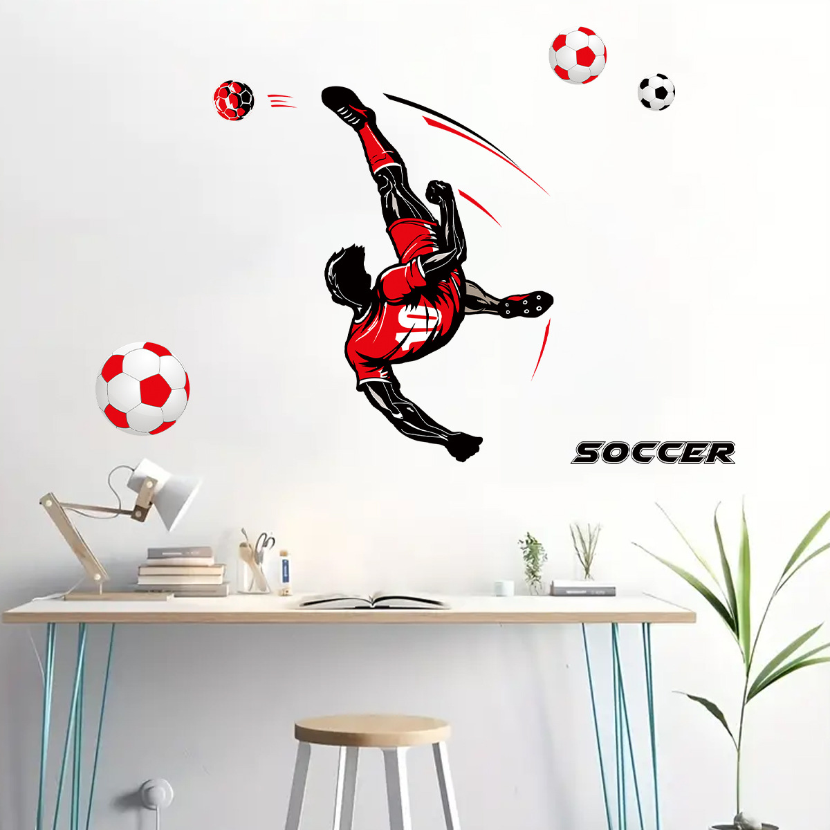 거꾸로 된 골드 후크 축구 샷 자체 접착 벽 스티커 스포츠 룸 배경 벽 장식 스티커 BR0784E스토어 가기