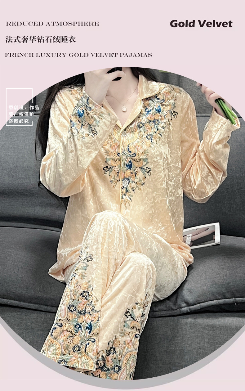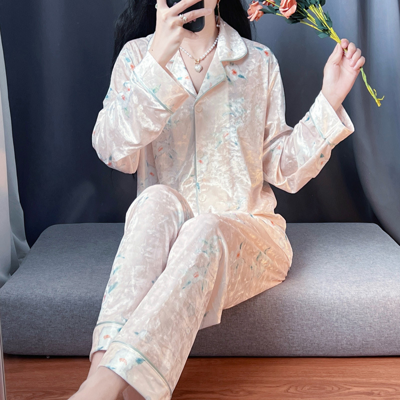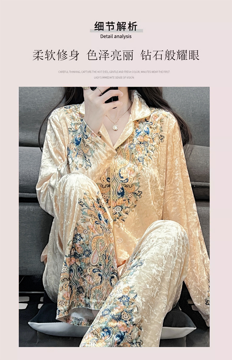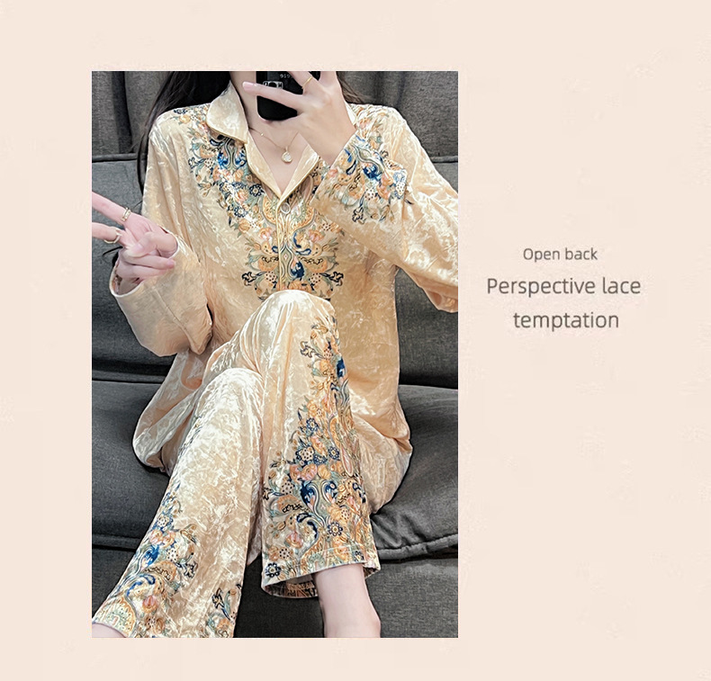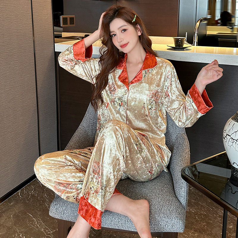 골드 벨벳 잠옷 가을 겨울 여성 세트 봄 가을 겨울 고급스러운 플러스 벨벳 두꺼운 겨울 골드 다이아몬드 벨벳 홈웨어스토어 가기