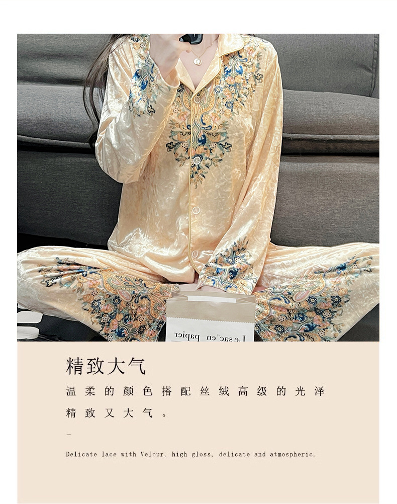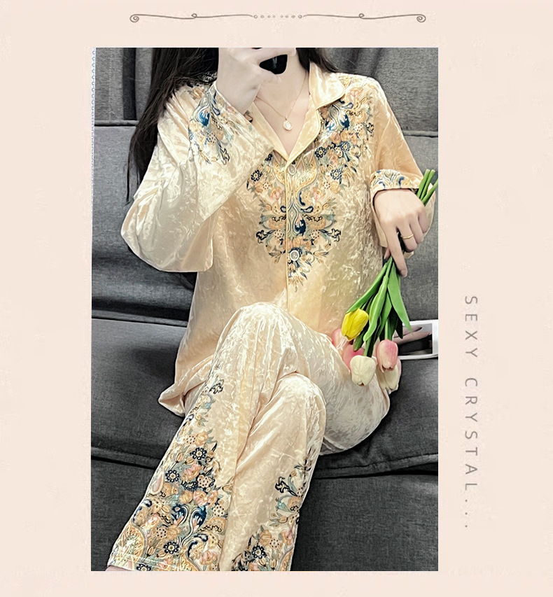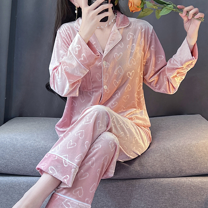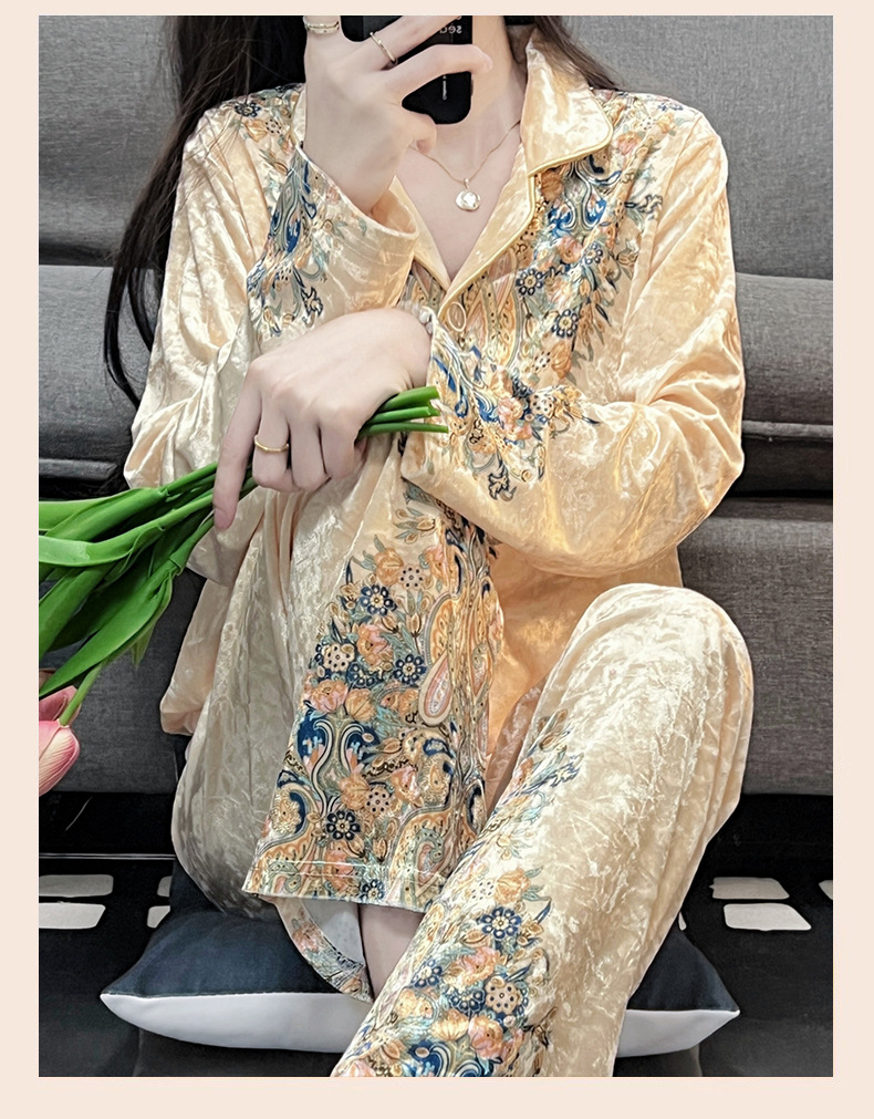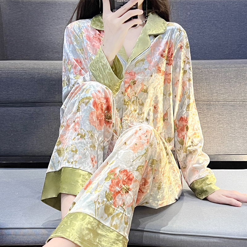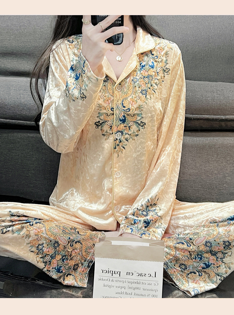 골드 벨벳 잠옷 가을 겨울 여성 세트 봄 가을 겨울 고급스러운 플러스 벨벳 두꺼운 겨울 골드 다이아몬드 벨벳 홈웨어스토어 가기