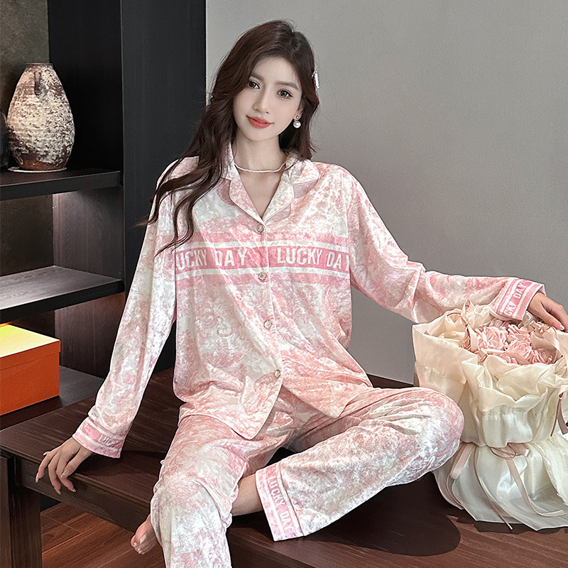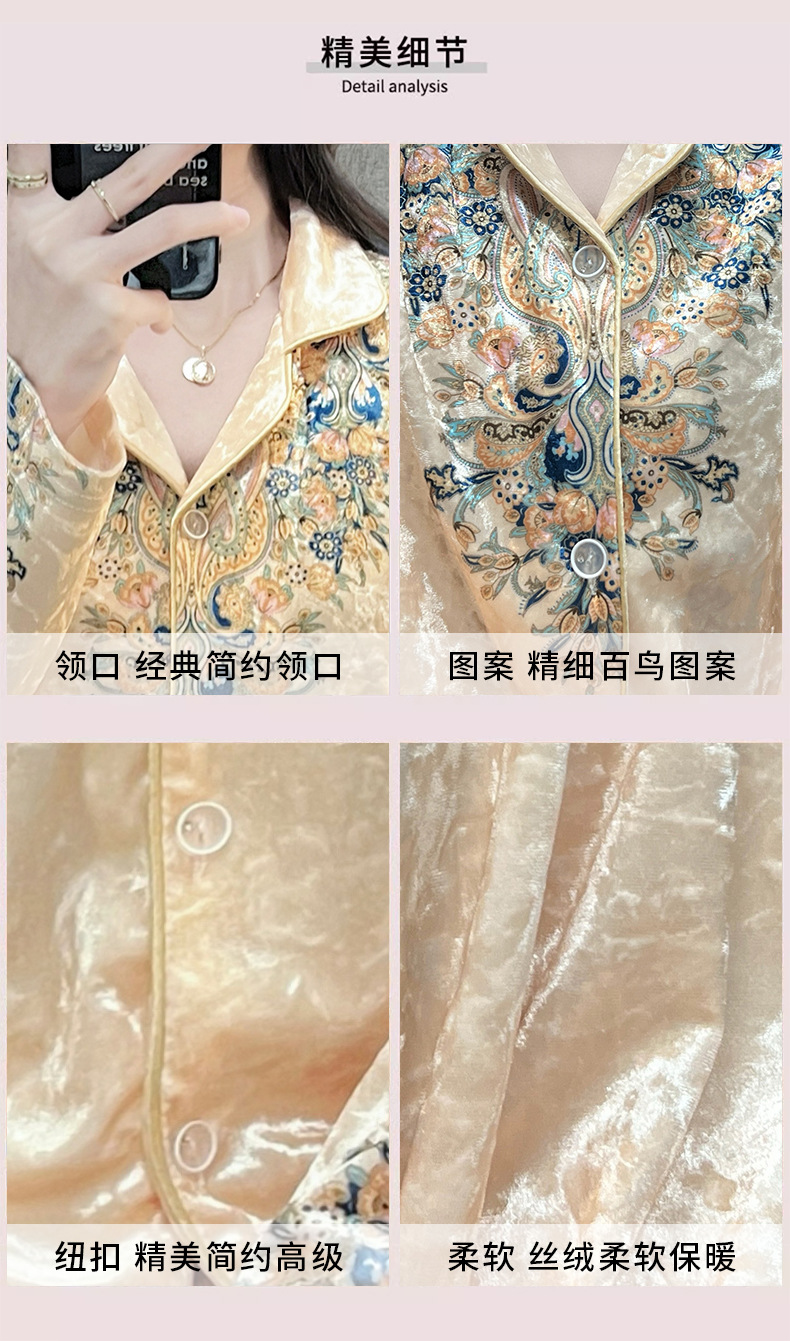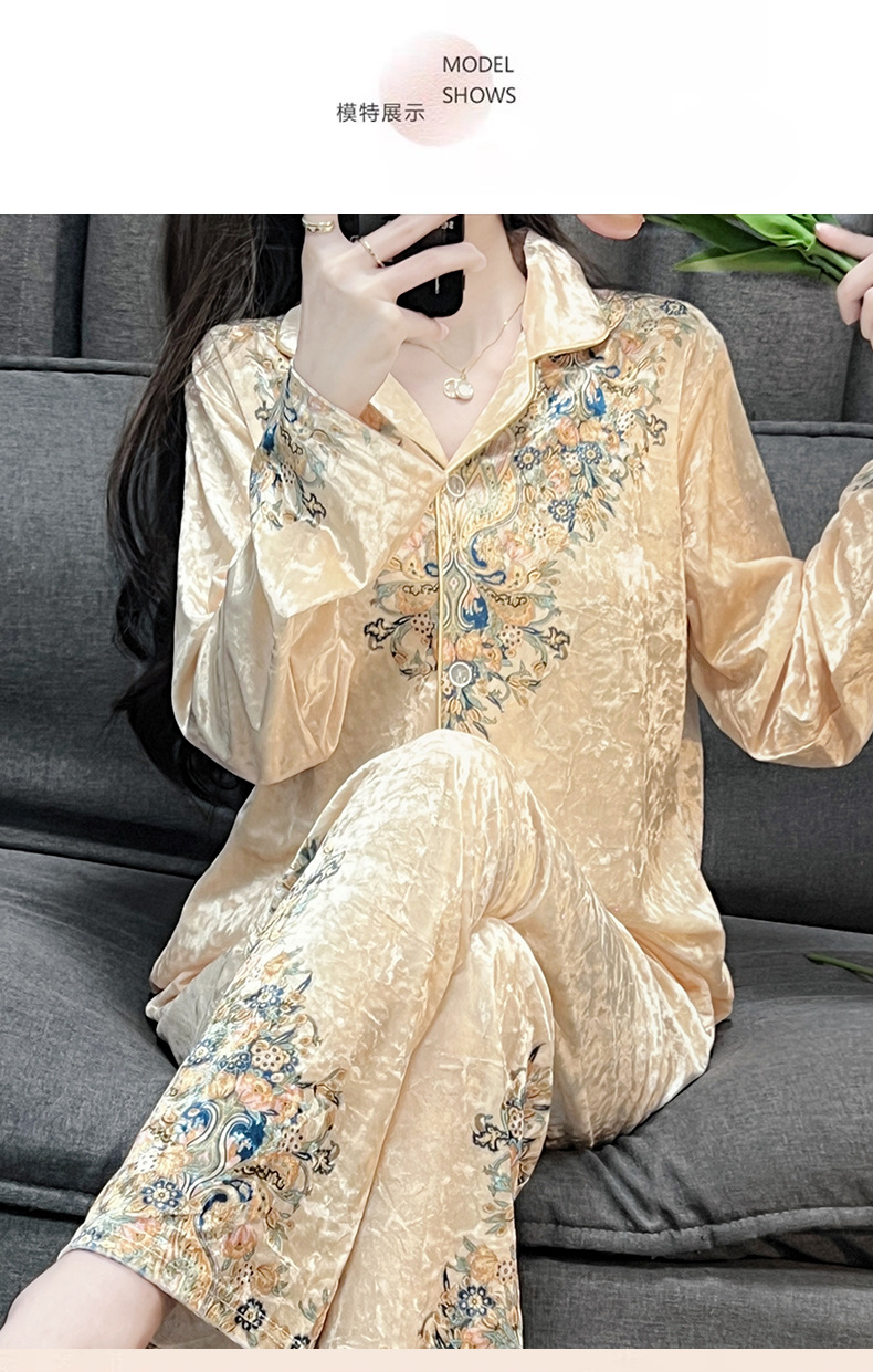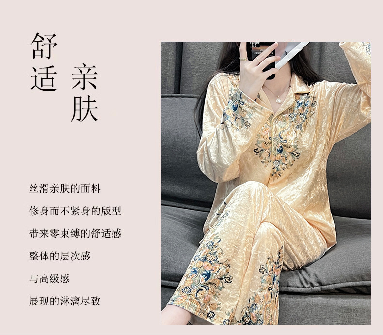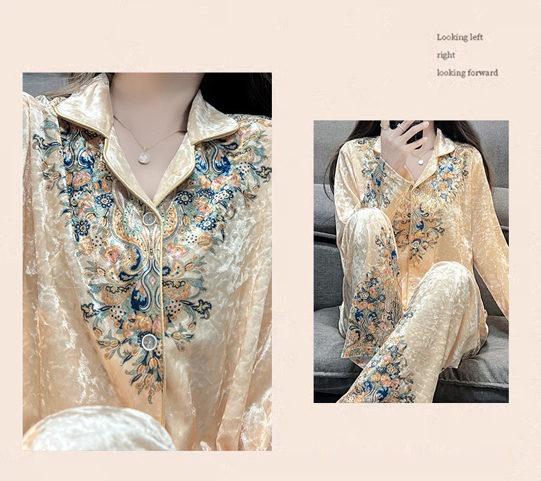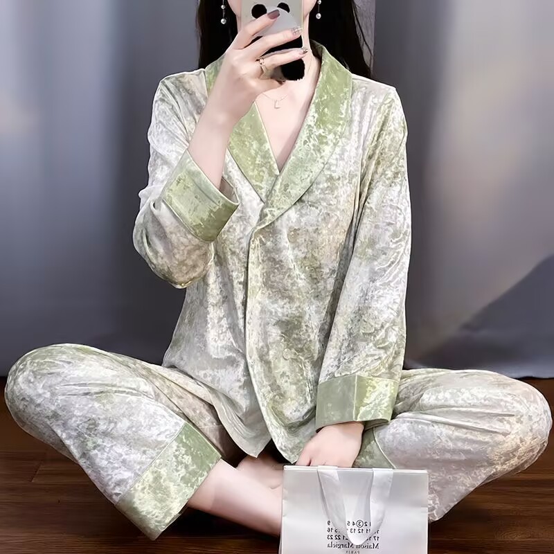 골드 벨벳 잠옷 가을 겨울 여성 세트 봄 가을 겨울 고급스러운 플러스 벨벳 두꺼운 겨울 골드 다이아몬드 벨벳 홈웨어스토어 가기