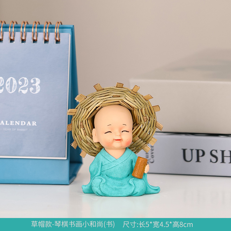 중국 선 스타일 작은 스님 장식 귀여운 작은 스님 데스크탑 차 테이블 차 애완 동물 차 테이블 사무실 장식 작은 장식