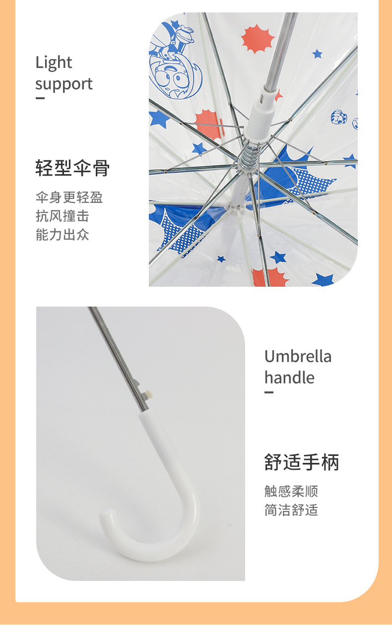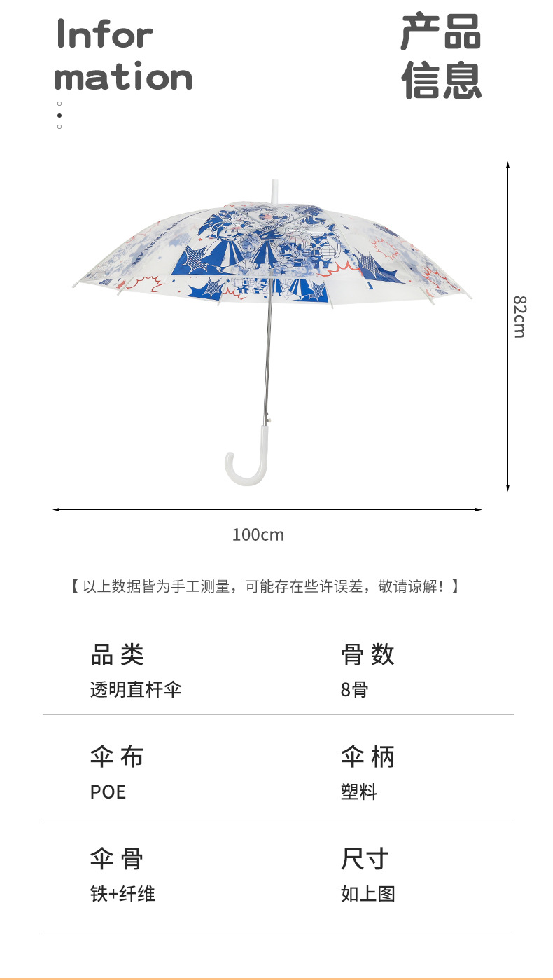 새로운 POE 투명 인쇄 작은 신선한 직선 우산 재고 도매 현대 간단한 패션 방풍 8 뼈 우산