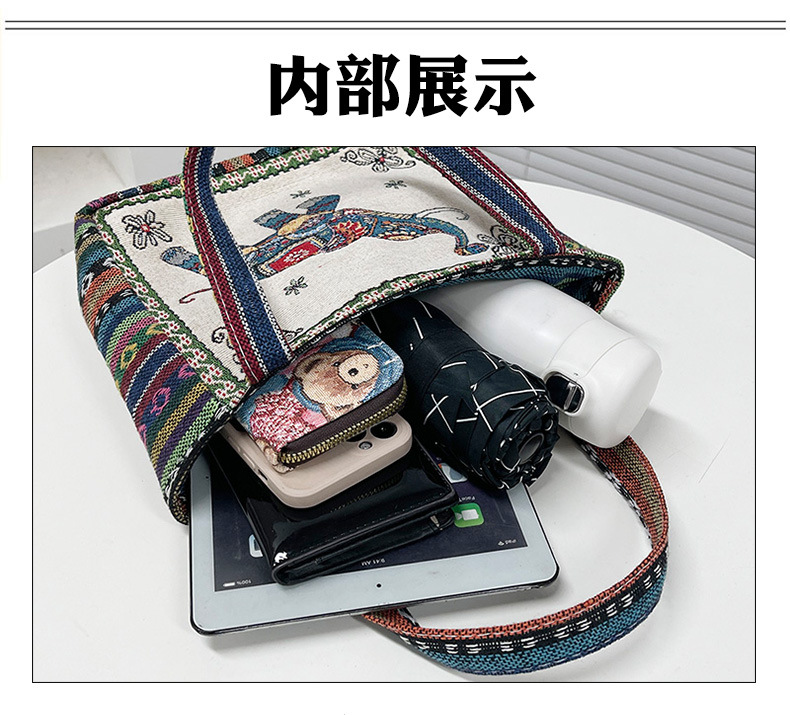 일본과 한국 스타일 어깨 가방 여성 민족 스타일 캔버스 가방 새로운 도착 만화 섬유 내구성 자수 핸드백 작은 광장 가방 여성 가방스토어 가기