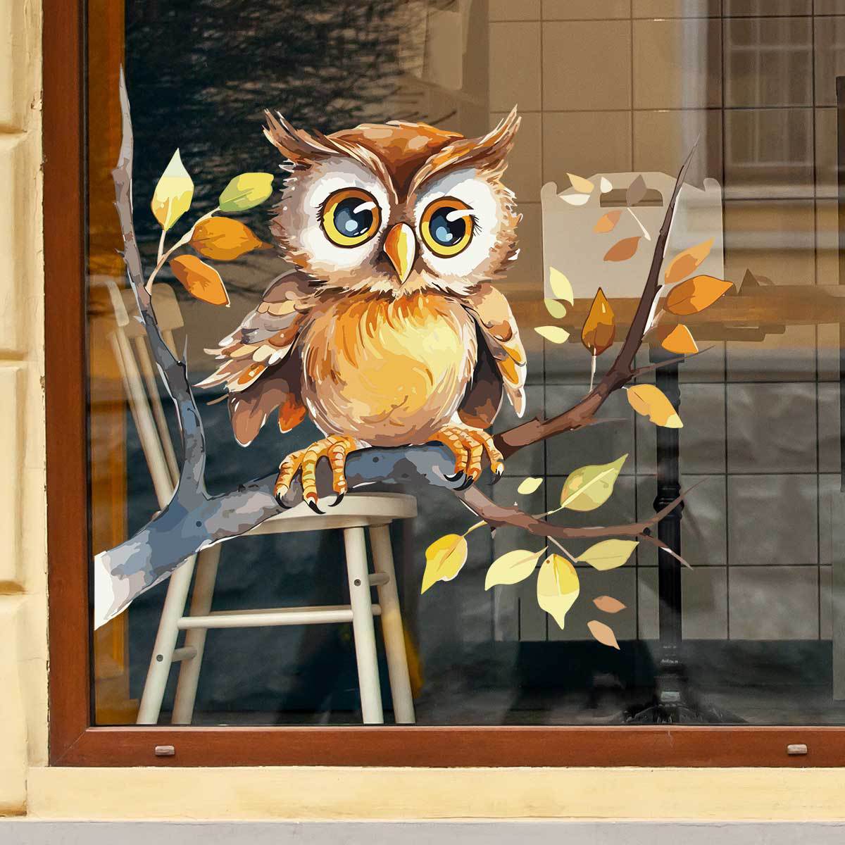 만화 가지 귀여운 올빼미 창 스티커 자체 접착 벽 스티커 양면 시각적 유리 문 장식 스티커 BR0786C