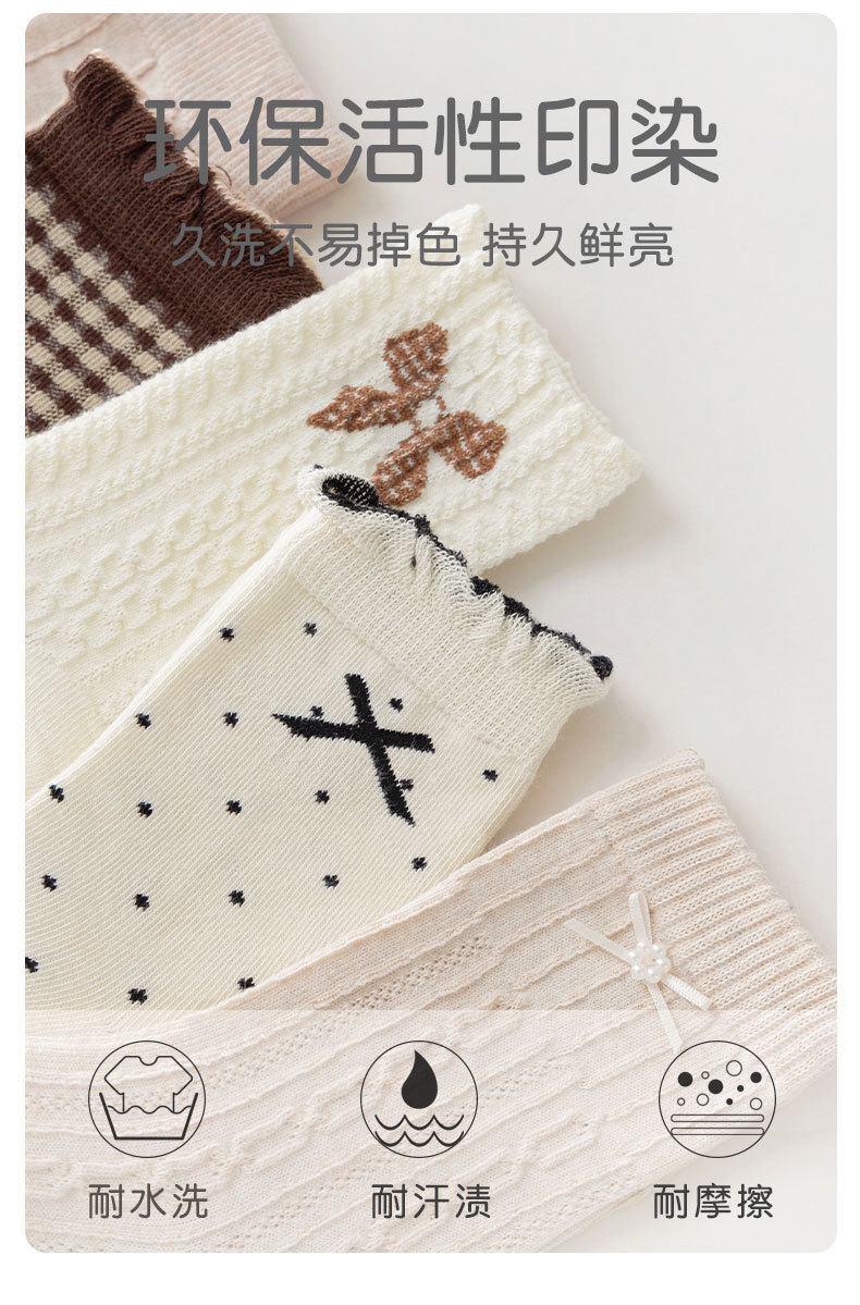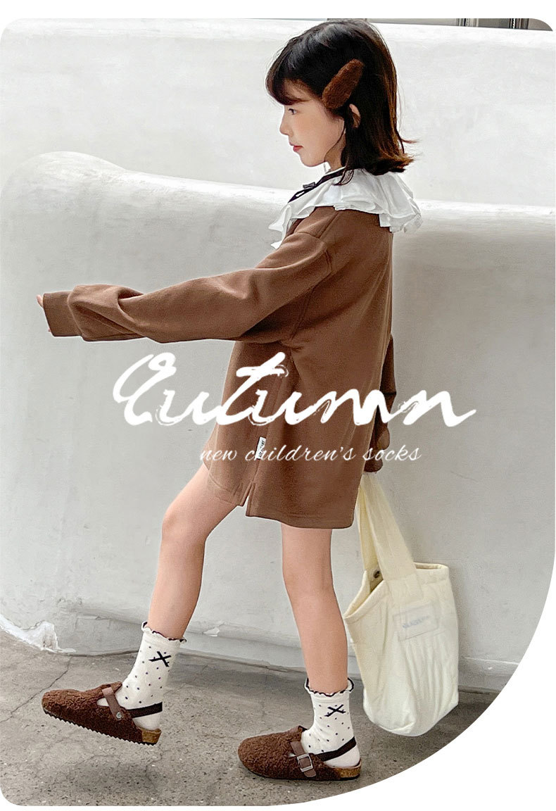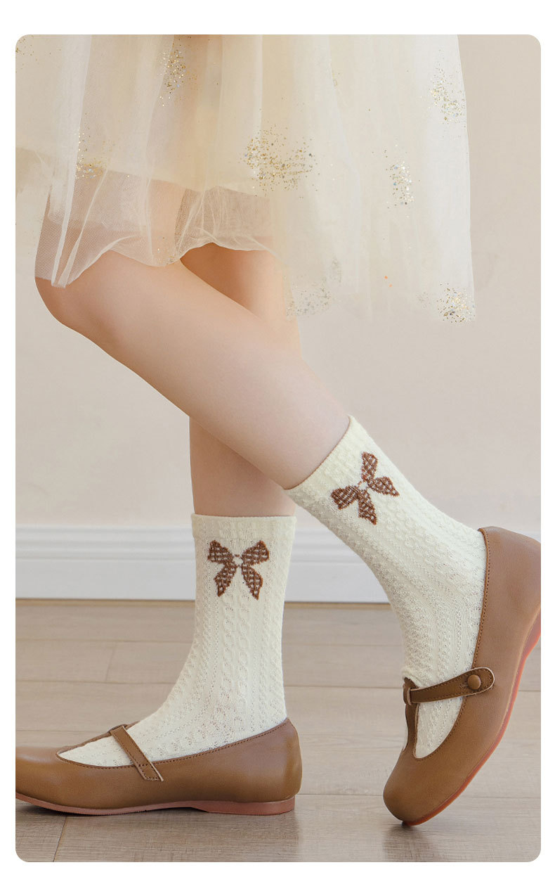敏榴女童袜子美拉德日系中筒袜咖啡色爱心蝴蝶结儿童袜子春秋棉袜