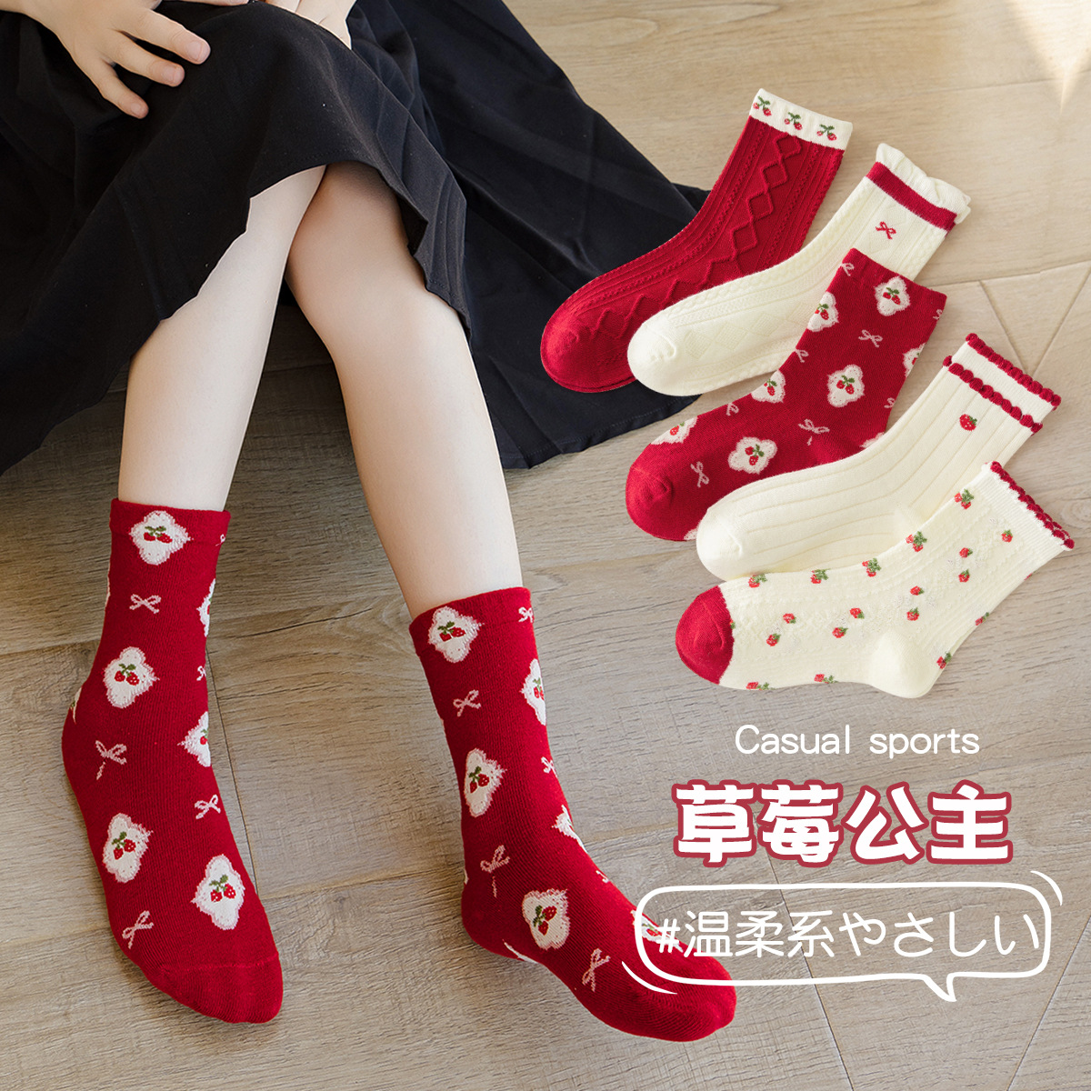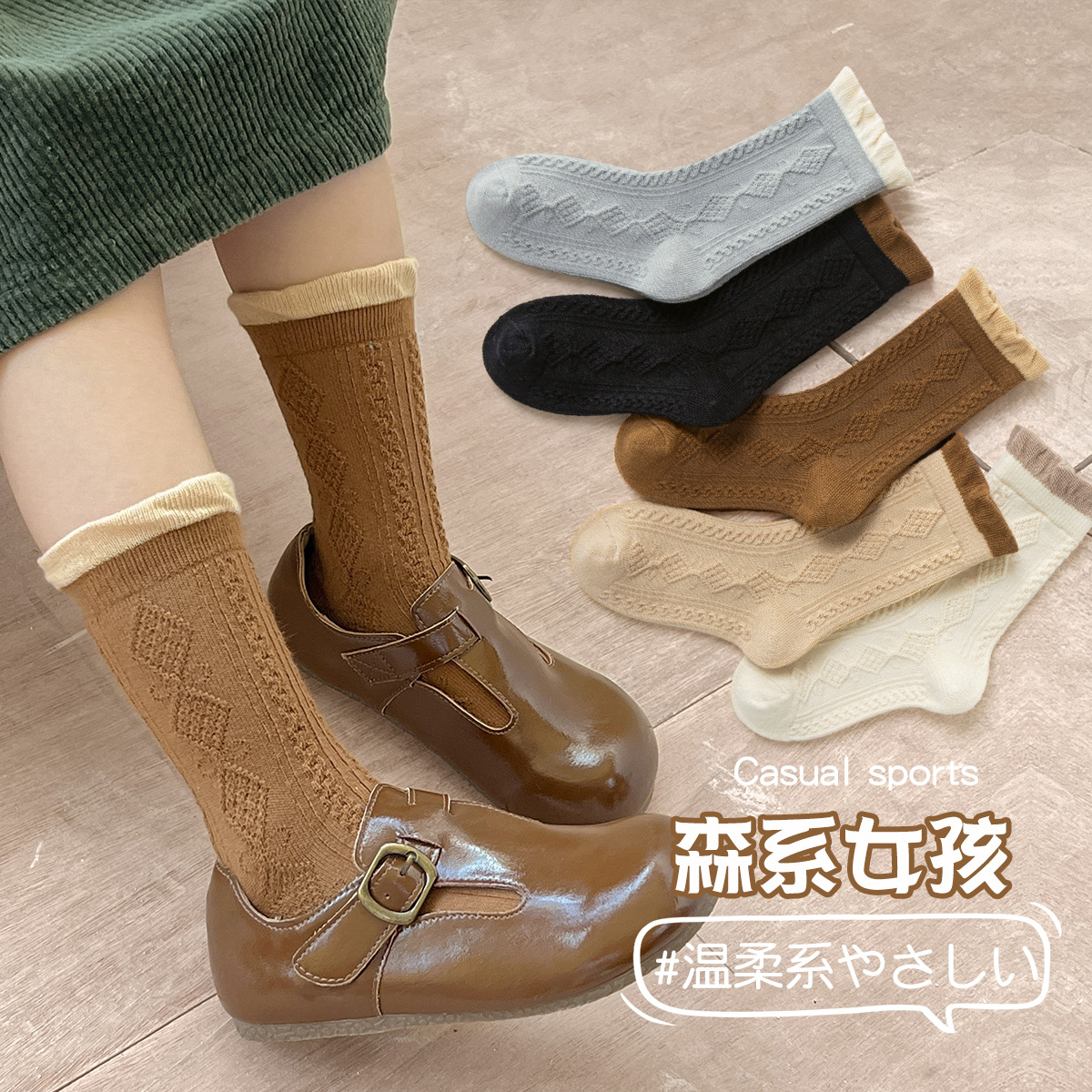 新款女童袜子批发敏榴春秋森系中筒袜儿童袜公主花边女孩秋冬棉袜