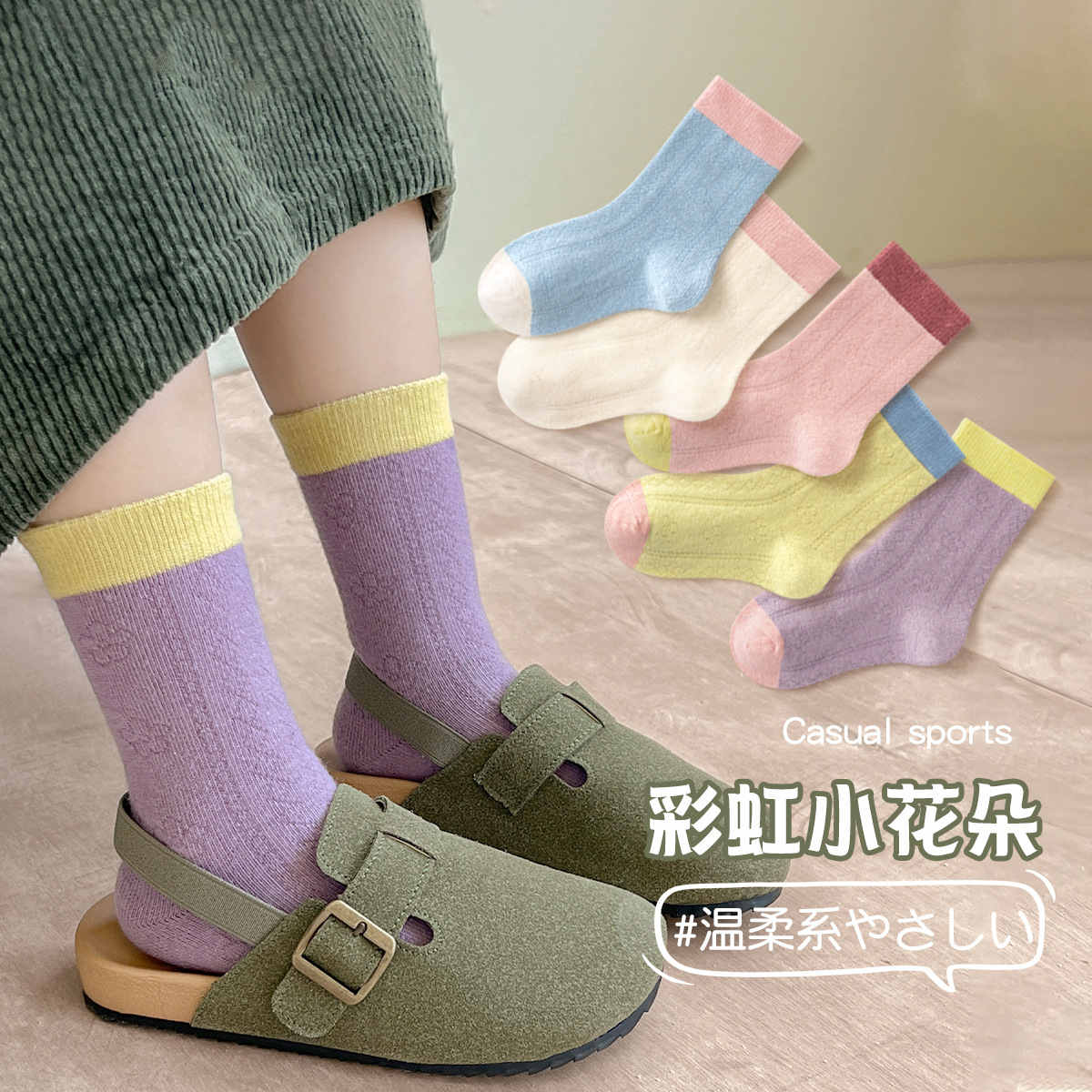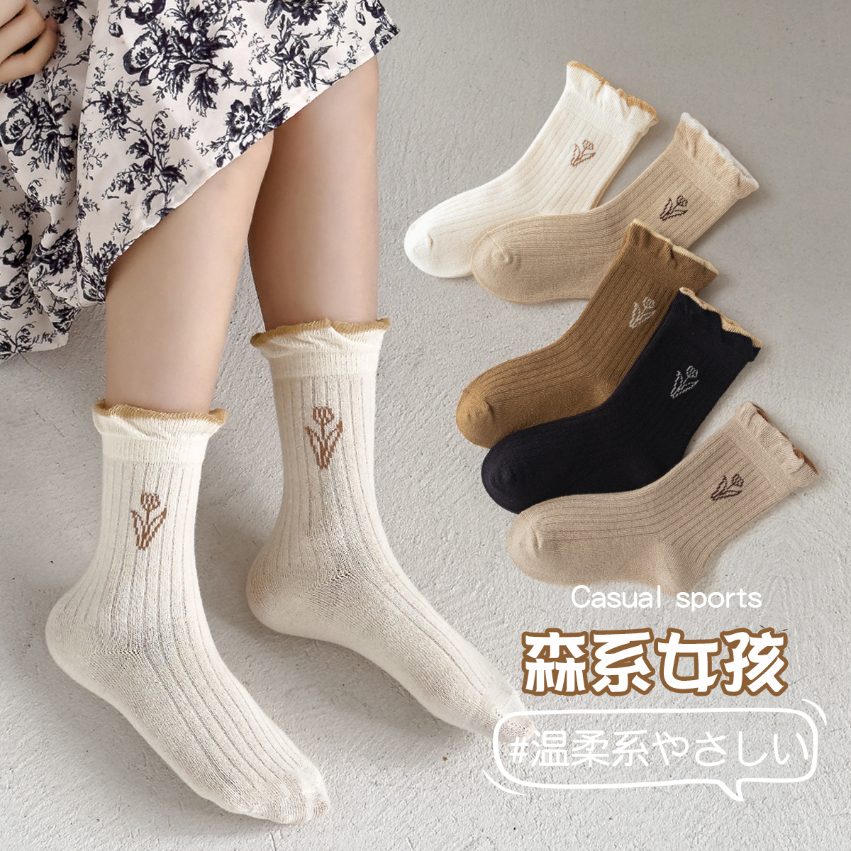 女童袜子秋季甜美森系中筒袜花朵可爱儿童袜子春秋中大童棉袜批发