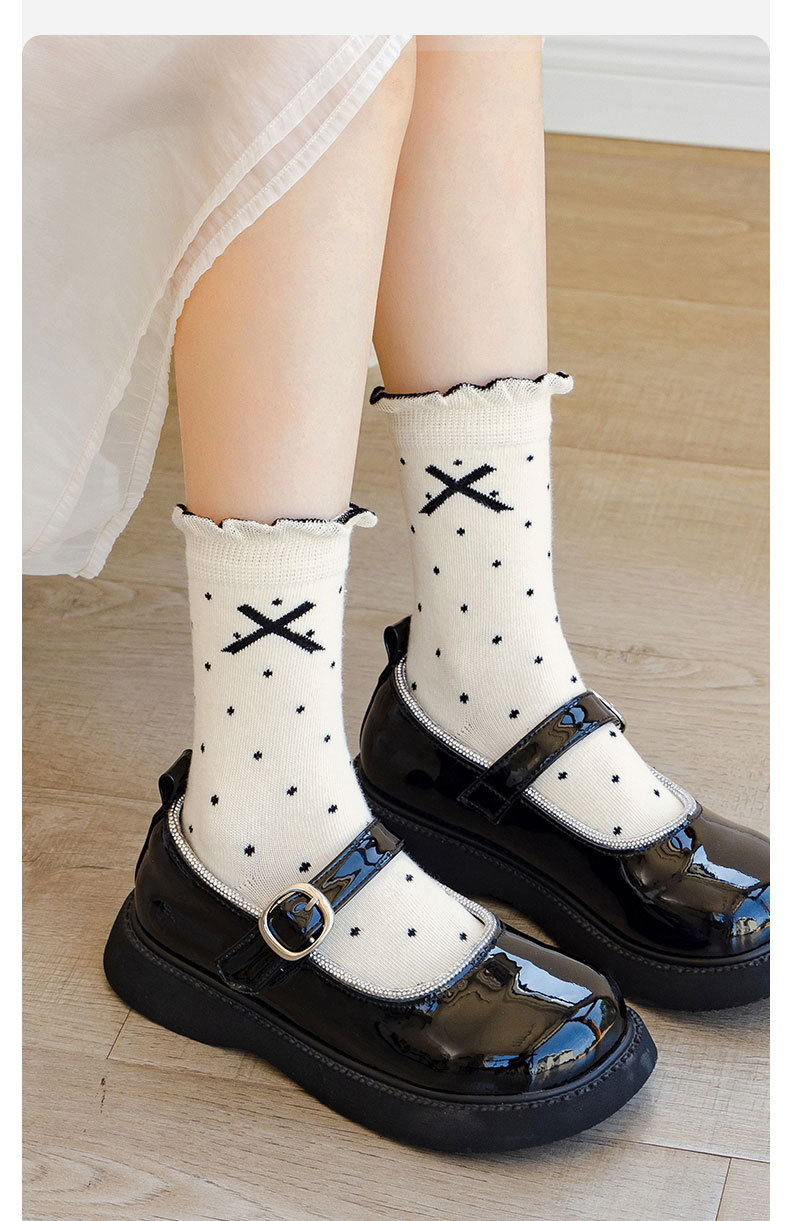 2024新款女童袜子春秋甜美圆点ins卷边中筒袜日系儿童袜子秋冬季