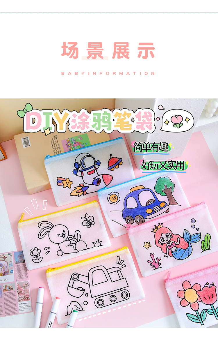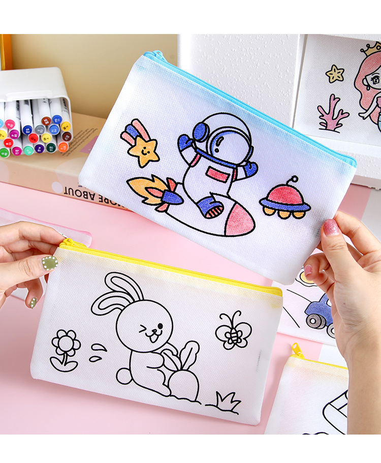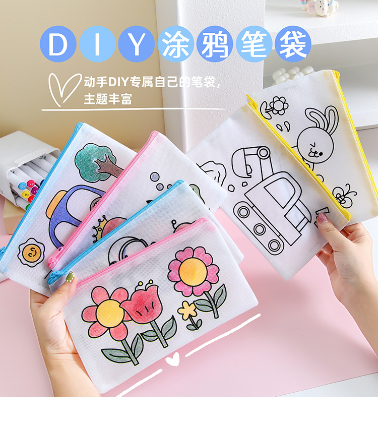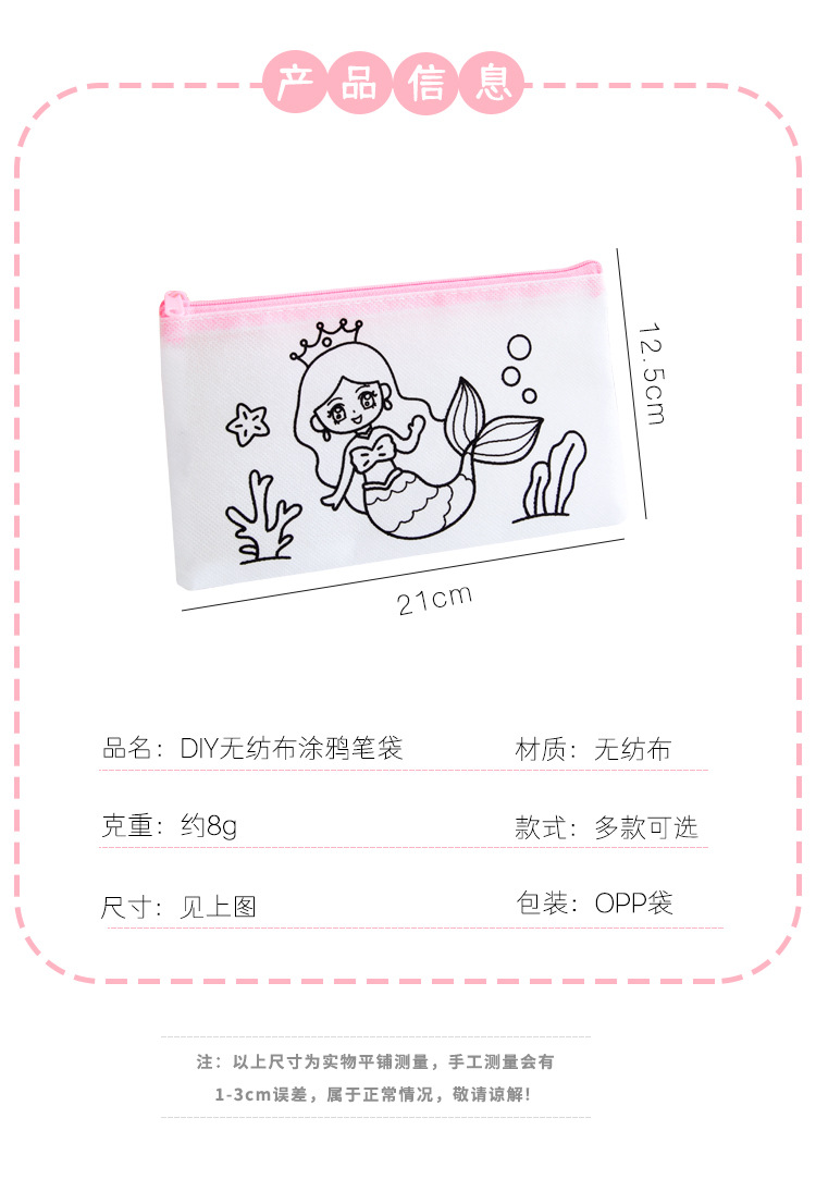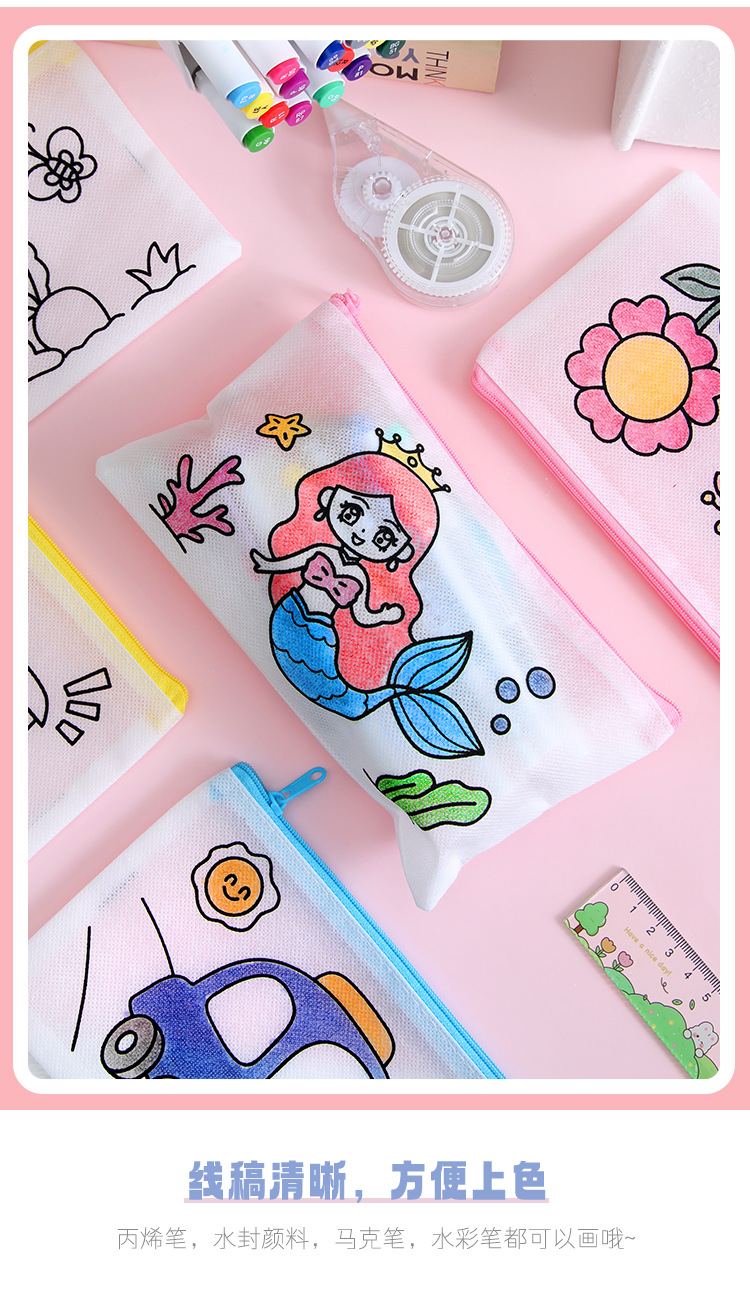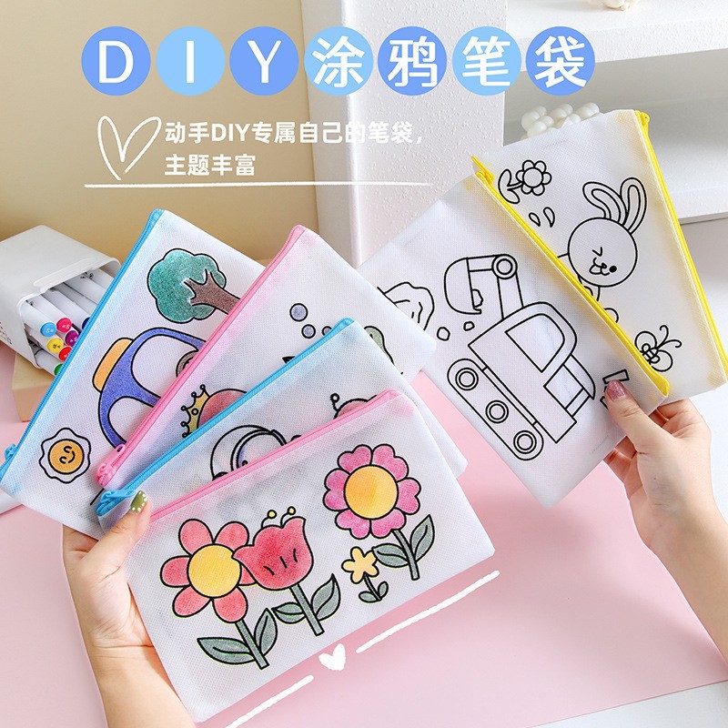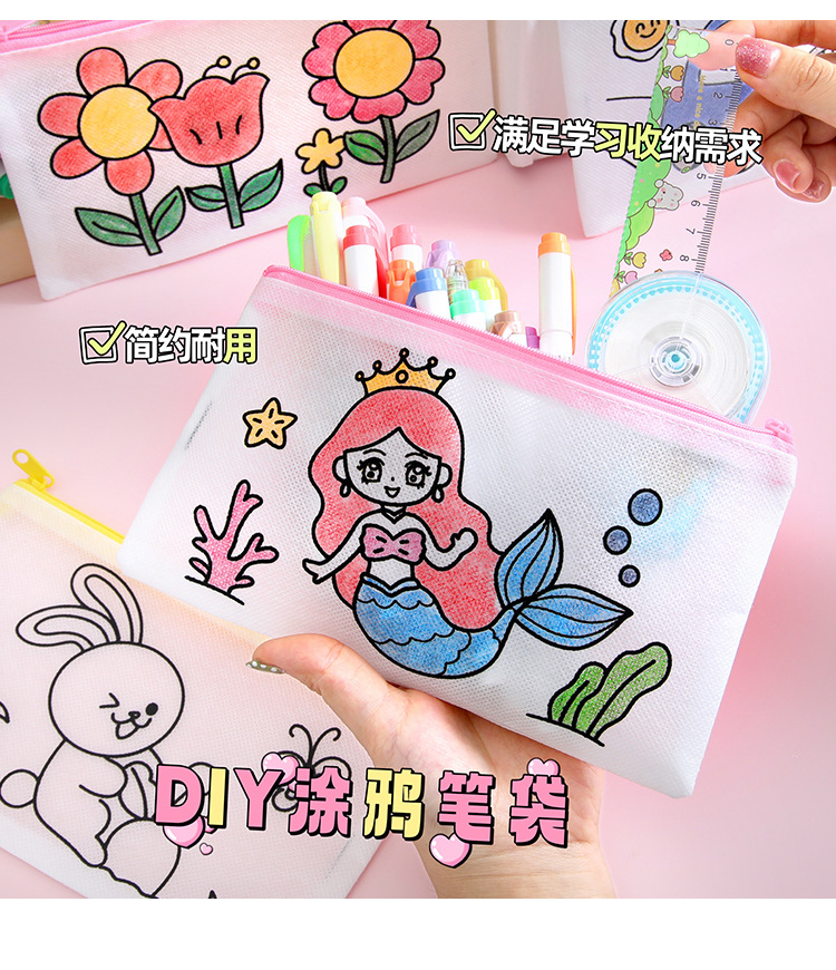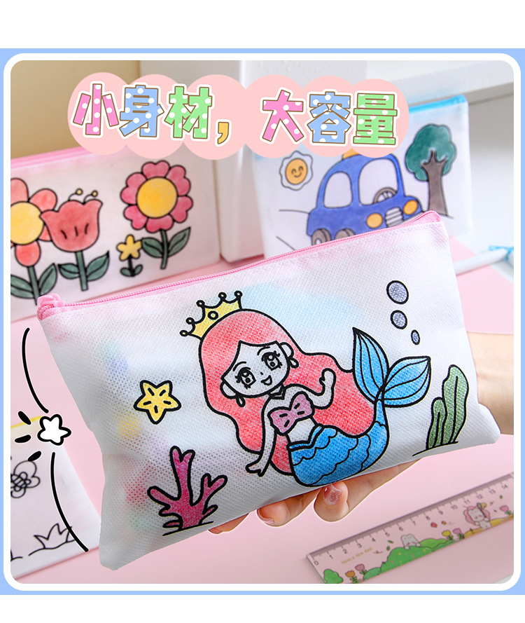 어린이 DIY 낙서 연필 가방 학생 창조적 인 문구 작은 선물 유치원 수제 컬러 부직포 연필 가방