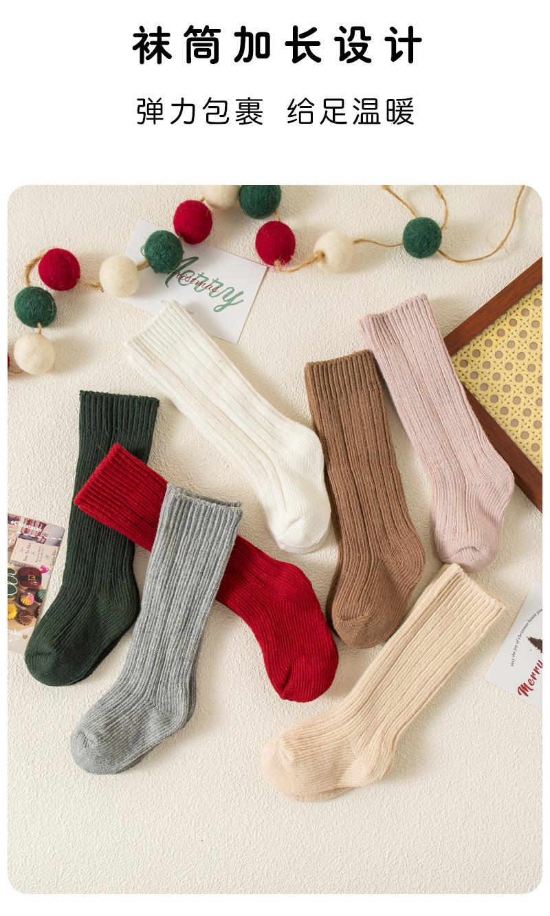 어린이용 두꺼운 니트 단색 양말, 아기 양말, 니트 면 소재, 한국 스타일 중목 양말, 스타킹, 다용도 롱 양말