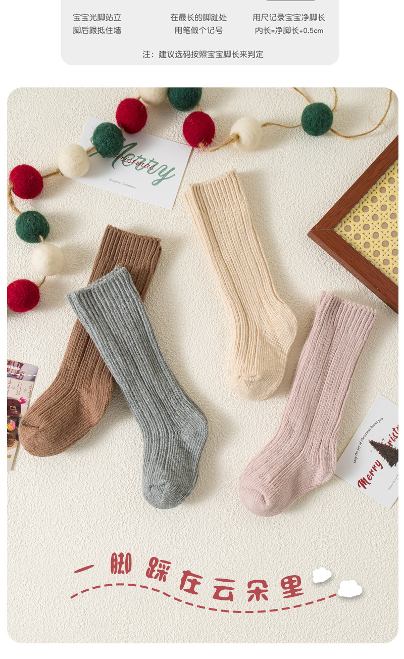 어린이용 두꺼운 니트 단색 양말, 아기 양말, 니트 면 소재, 한국 스타일 중목 양말, 스타킹, 다용도 롱 양말스토어 가기