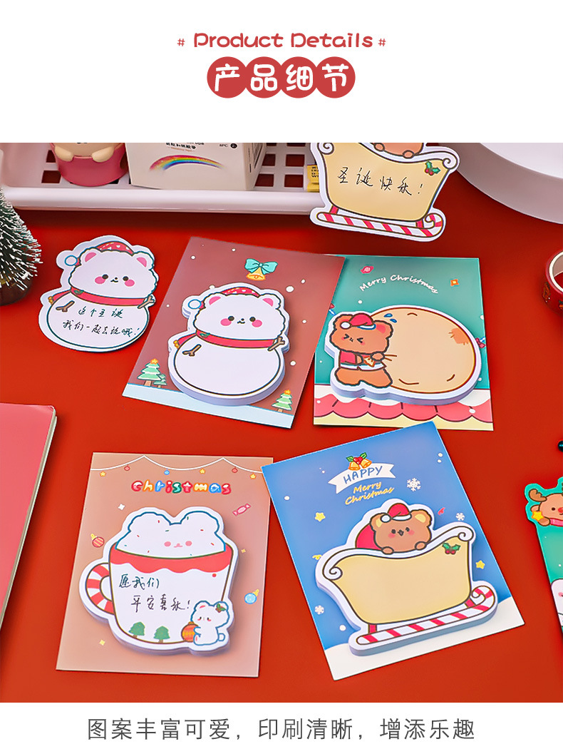 귀여운 만화 크리스마스 포스트잇 노트 학생들을위한 메시지 포스트잇 노트 크리스마스 작은 선물 선물 포스트잇 노트스토어 가기
