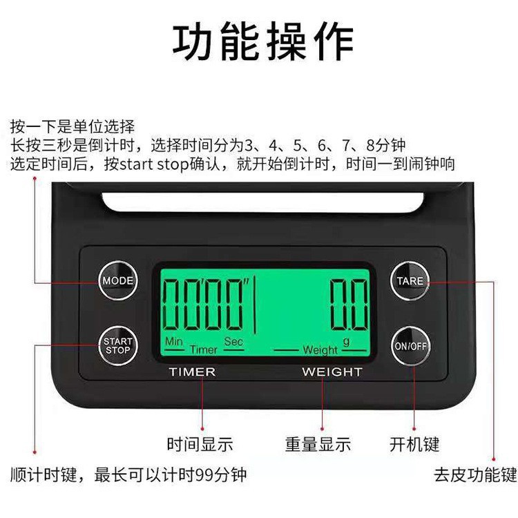 핸드 커피 전자 스케일 3kg 타이밍 커피 전자 스케일 5kg 주방 스케일 0.1g 커피 스케일스토어 가기