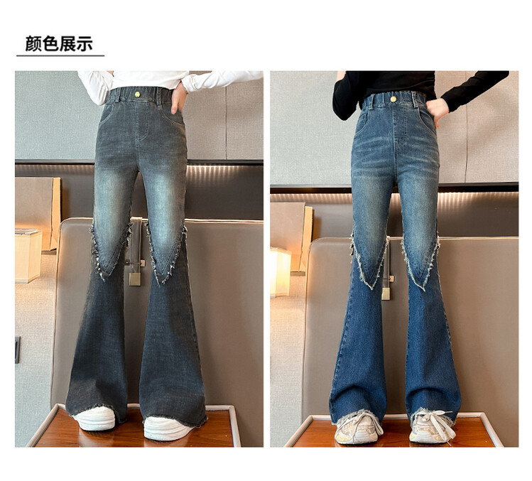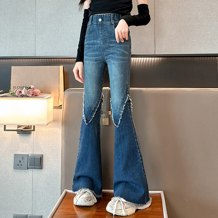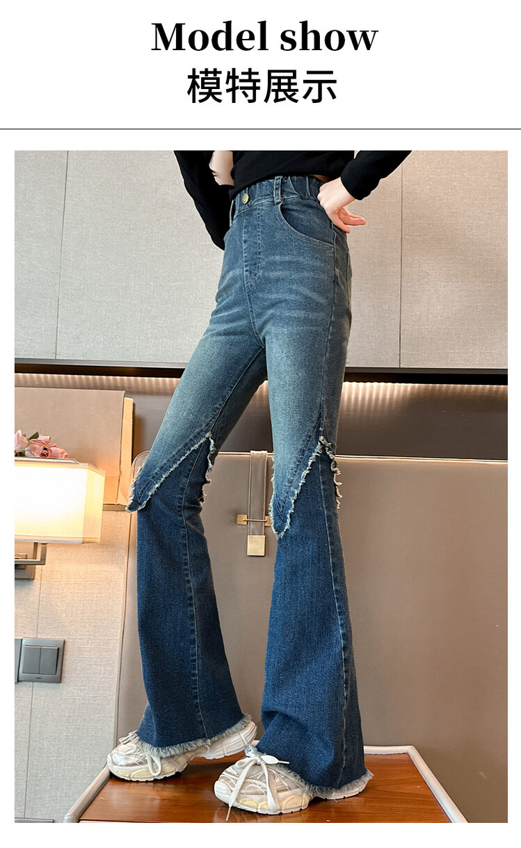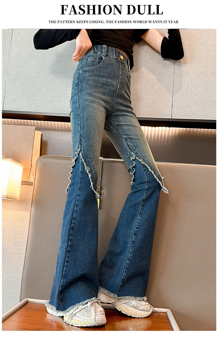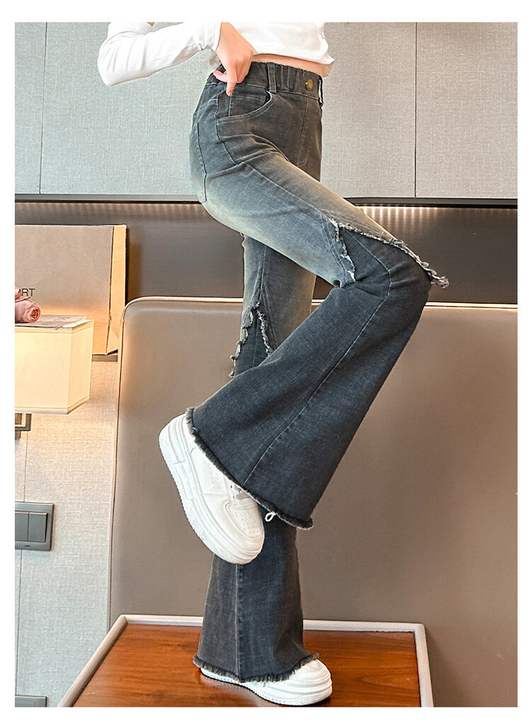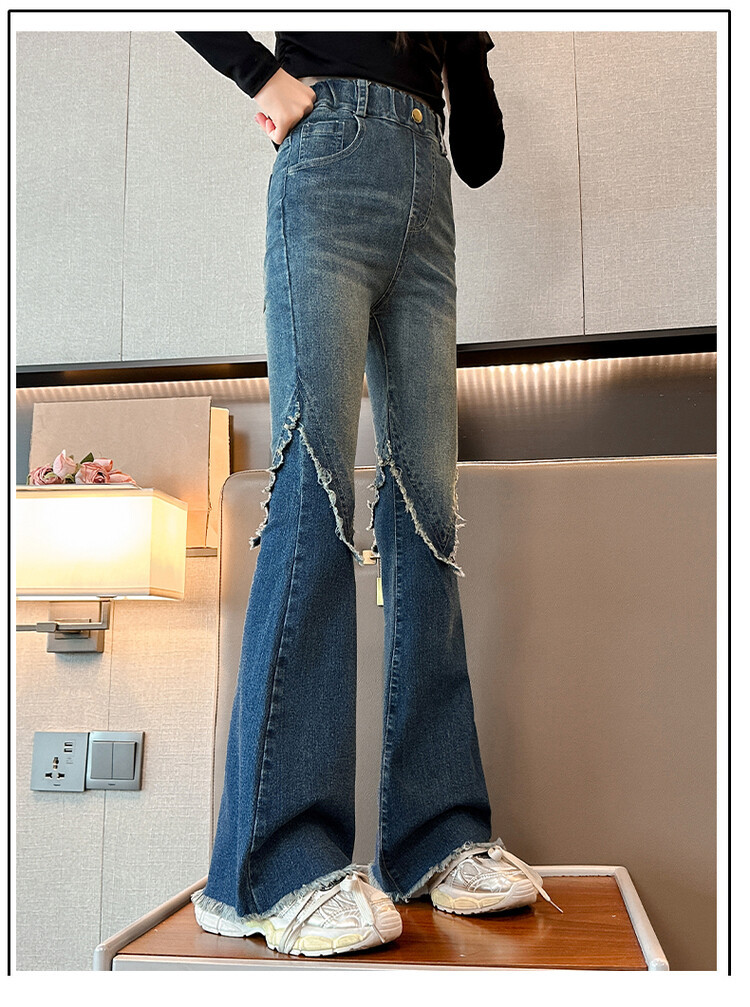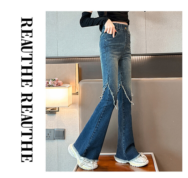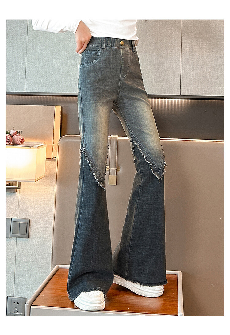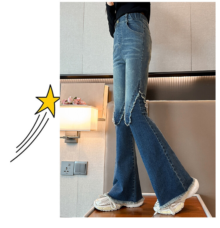 여자 바지 2024 새로운 봄과 가을 어린이 올 매치 바지 여자 달콤한 스트레치 데님 플레어 팬츠를 대신하여