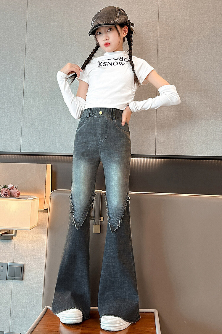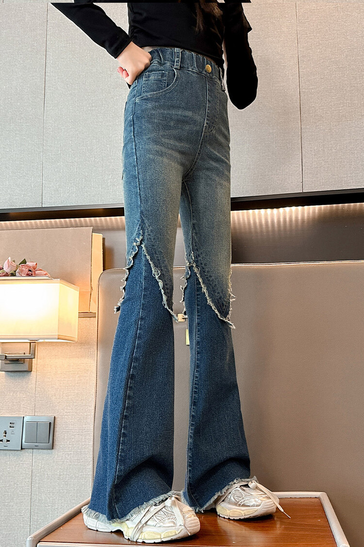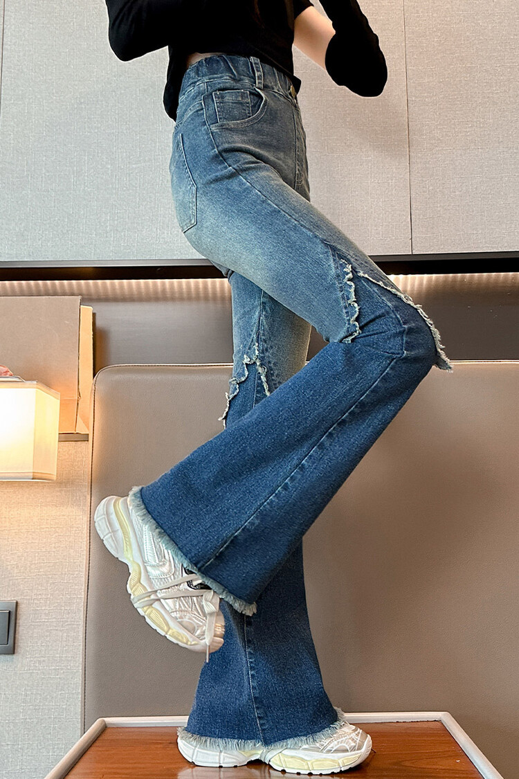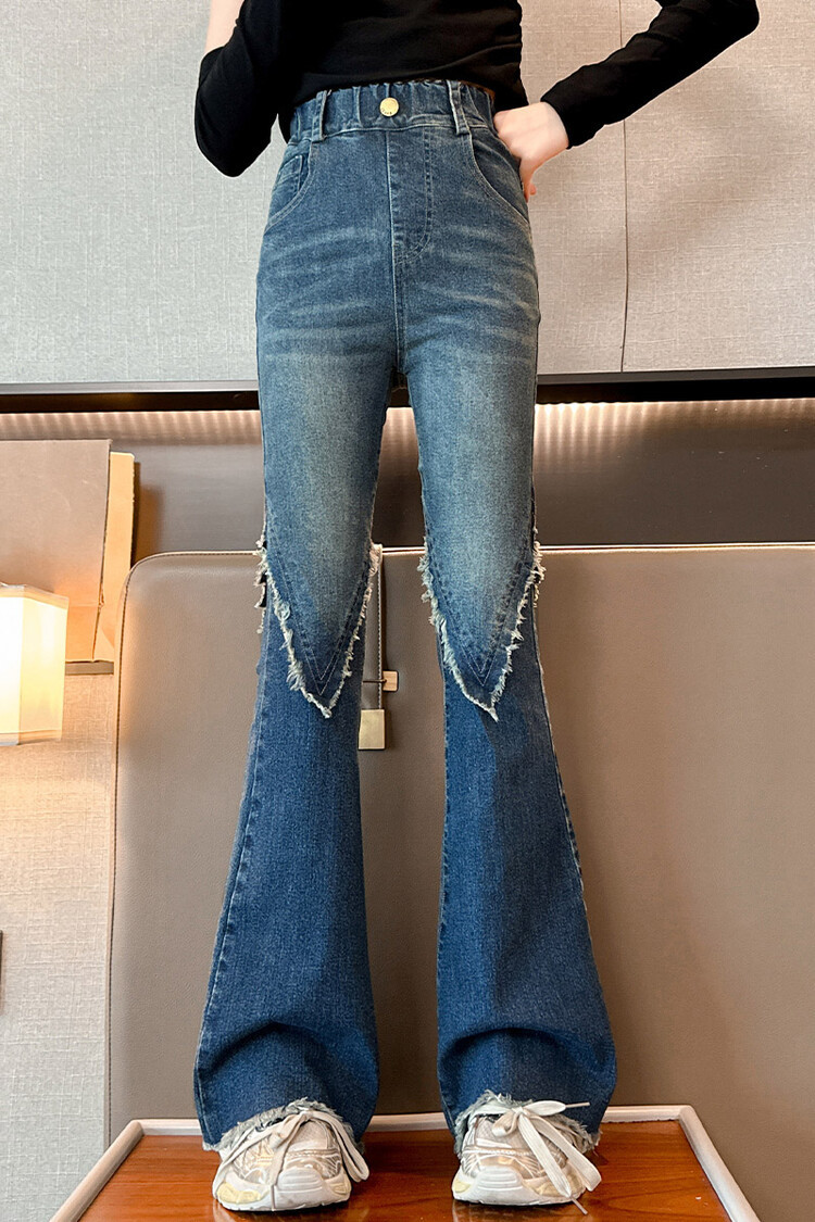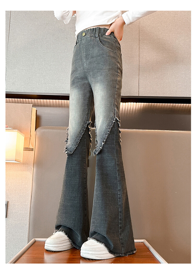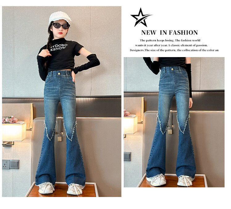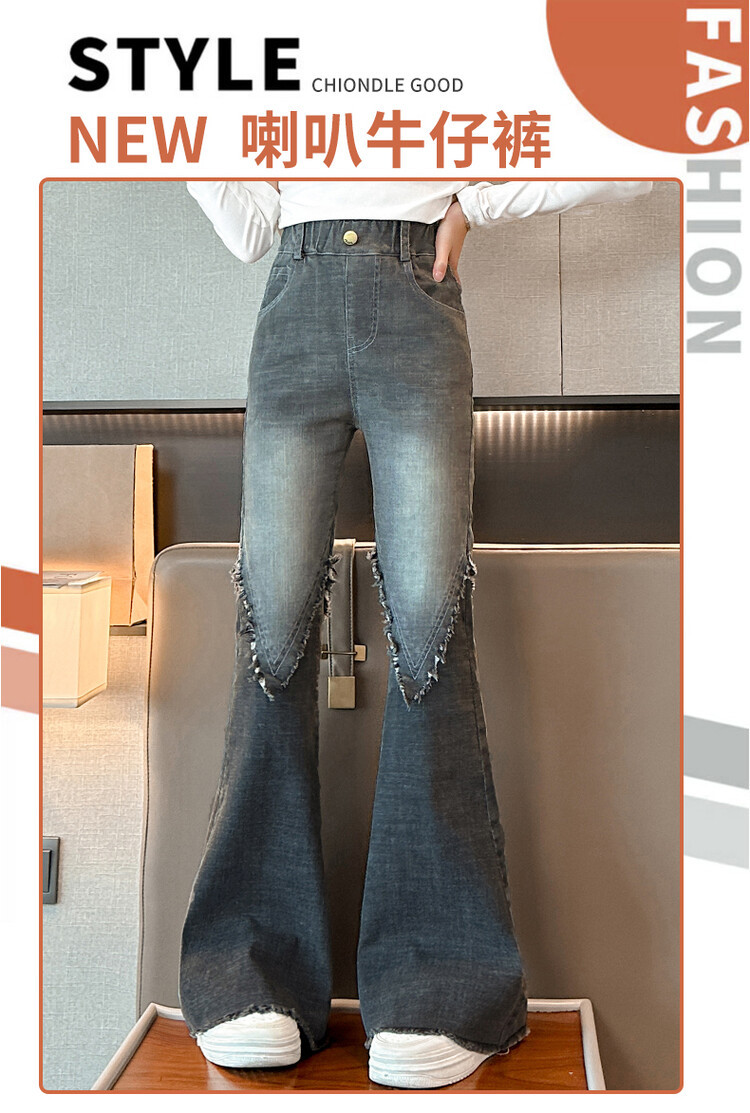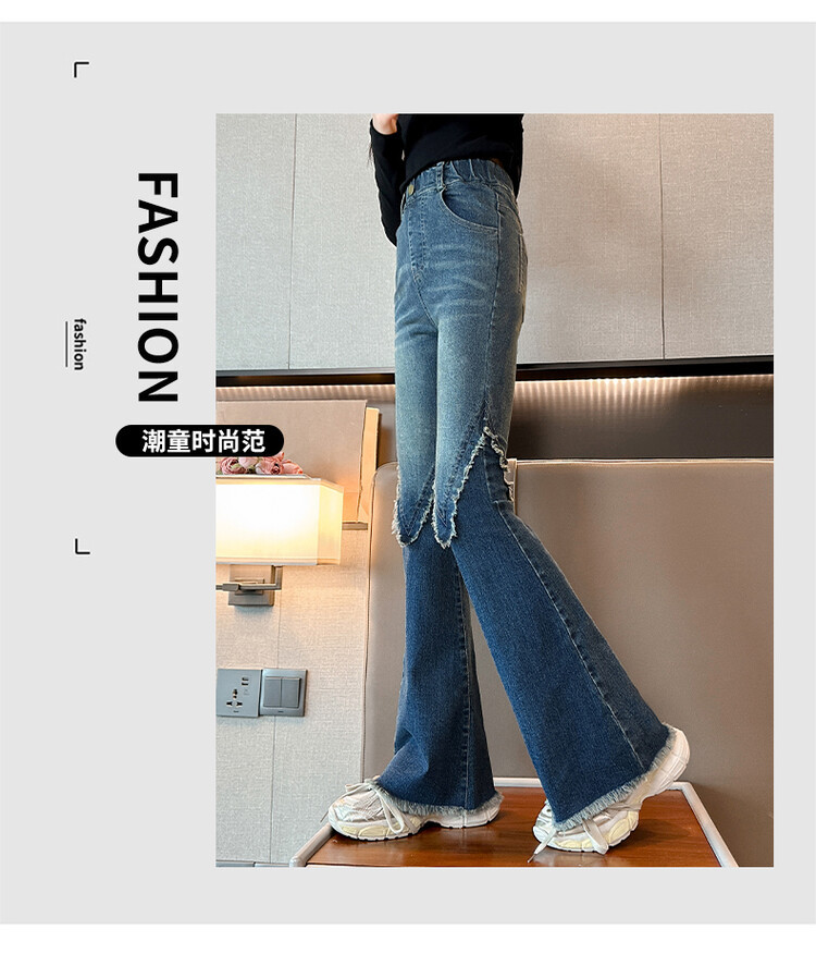여자 바지 2024 새로운 봄과 가을 어린이 올 매치 바지 여자 달콤한 스트레치 데님 플레어 팬츠를 대신하여