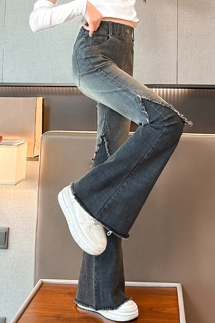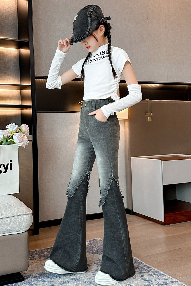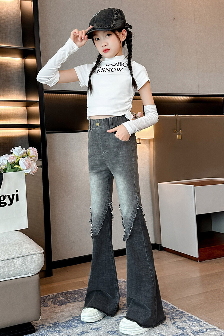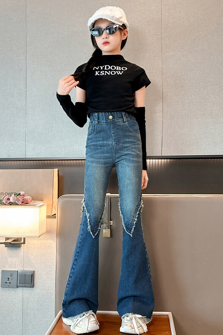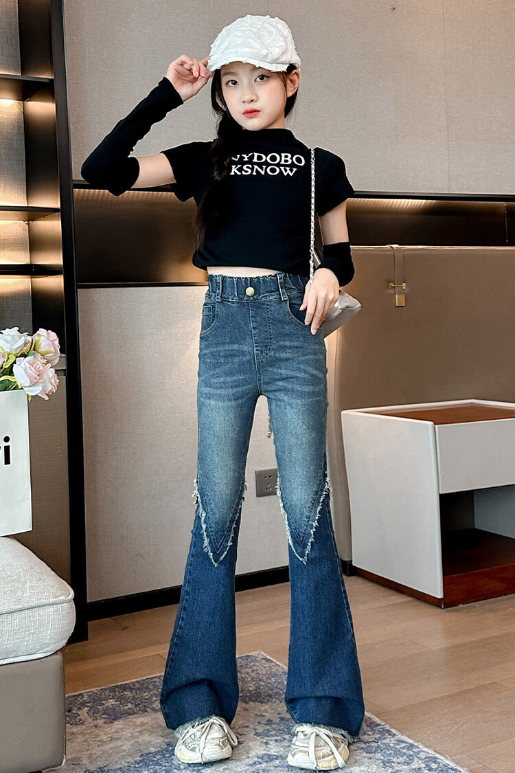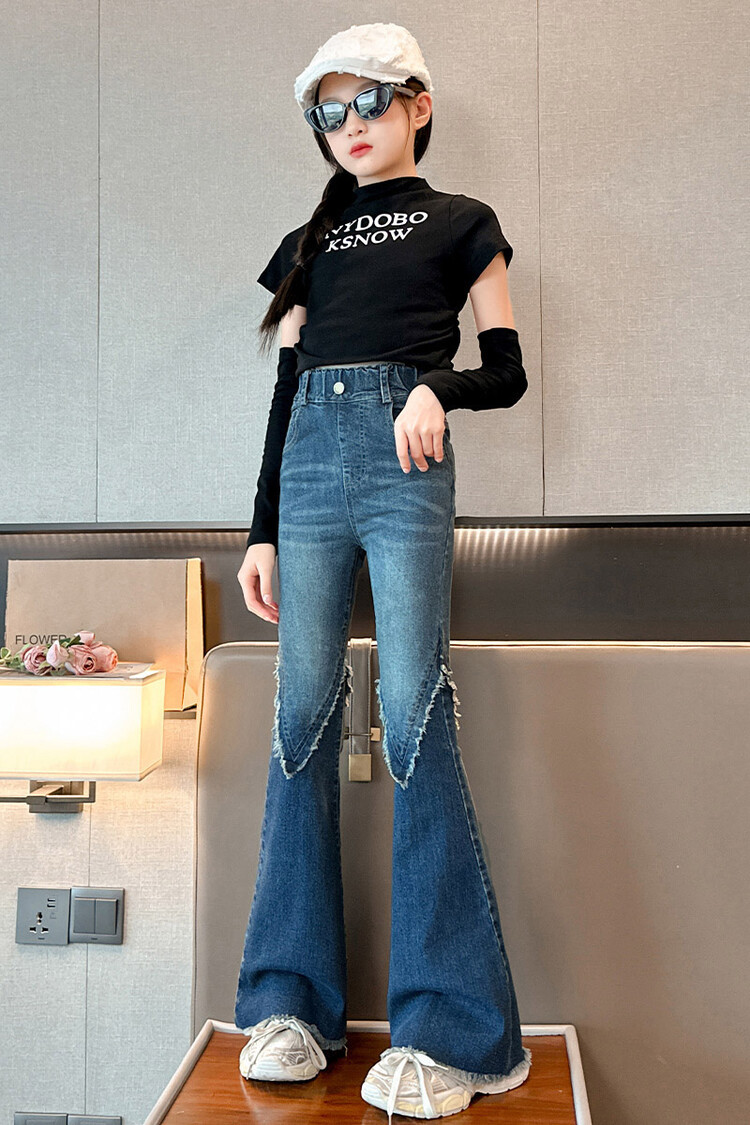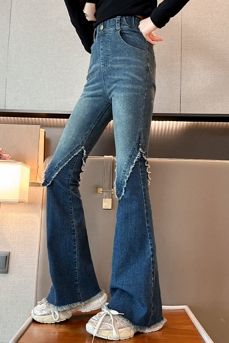 여자 바지 2024 새로운 봄과 가을 어린이 올 매치 바지 여자 달콤한 스트레치 데님 플레어 팬츠를 대신하여