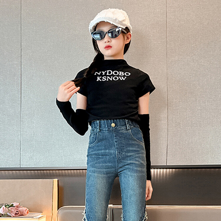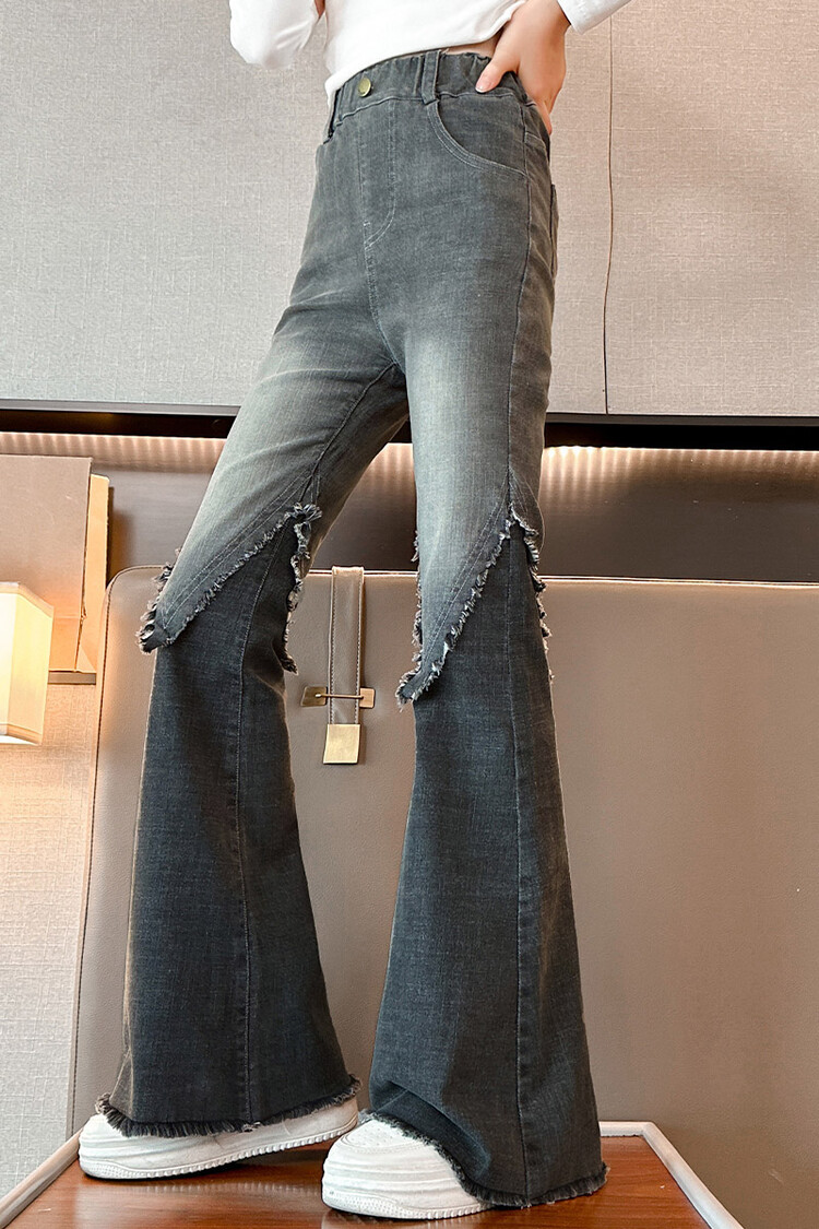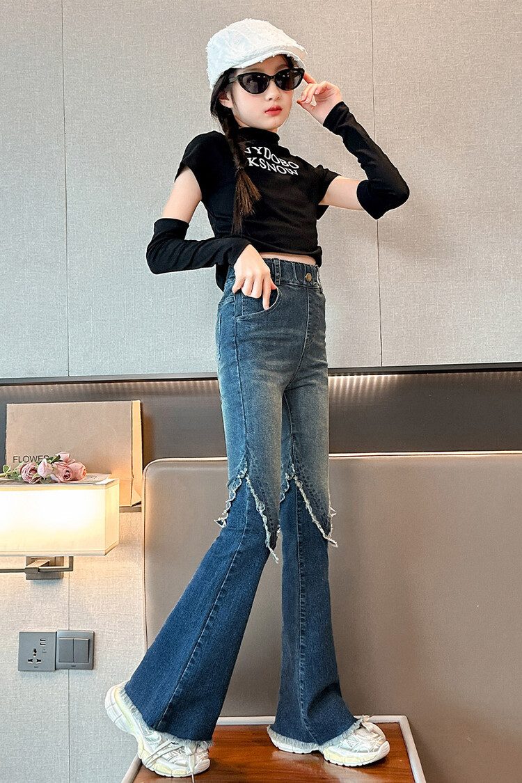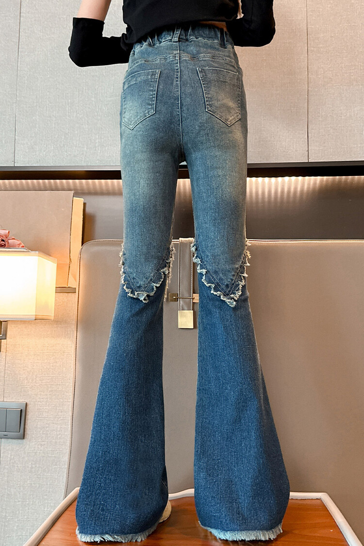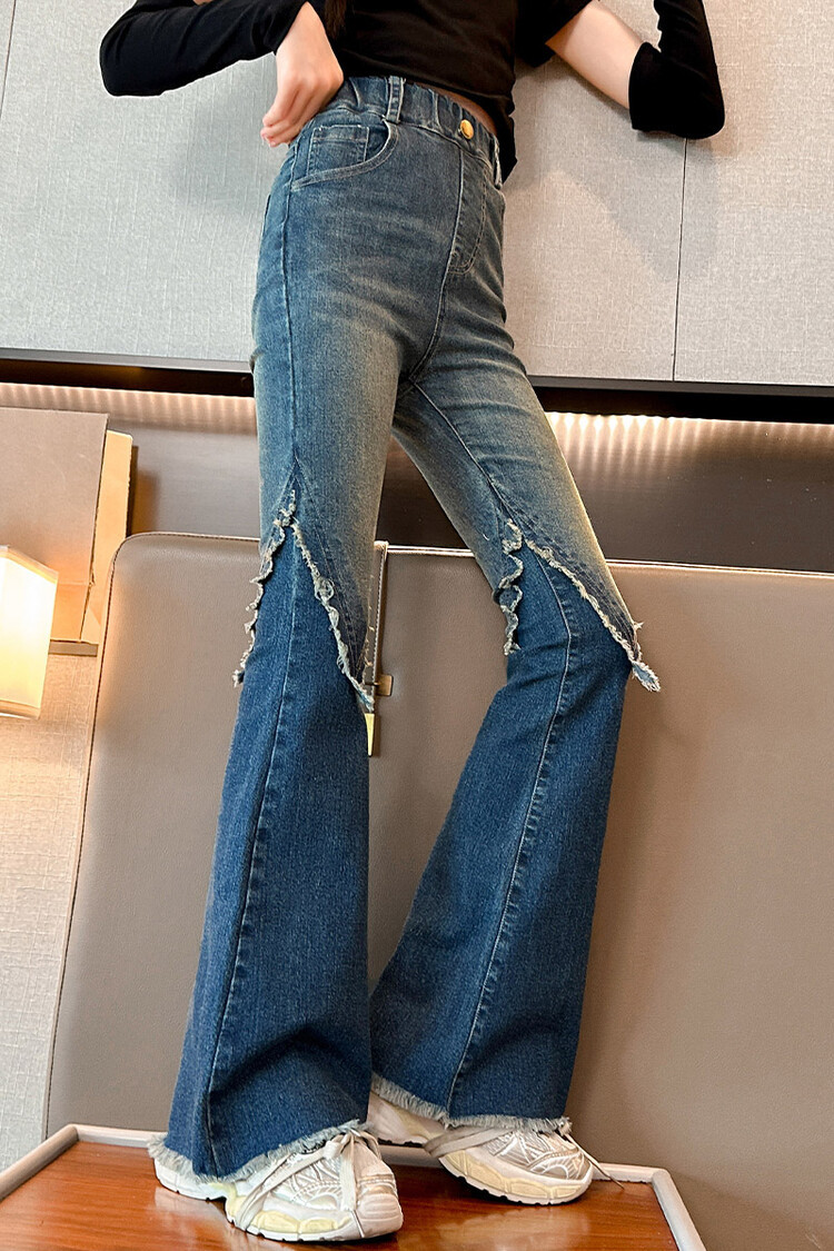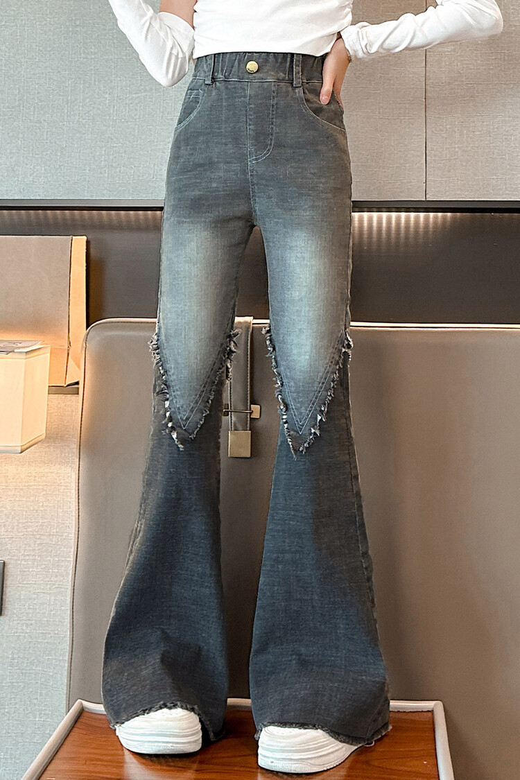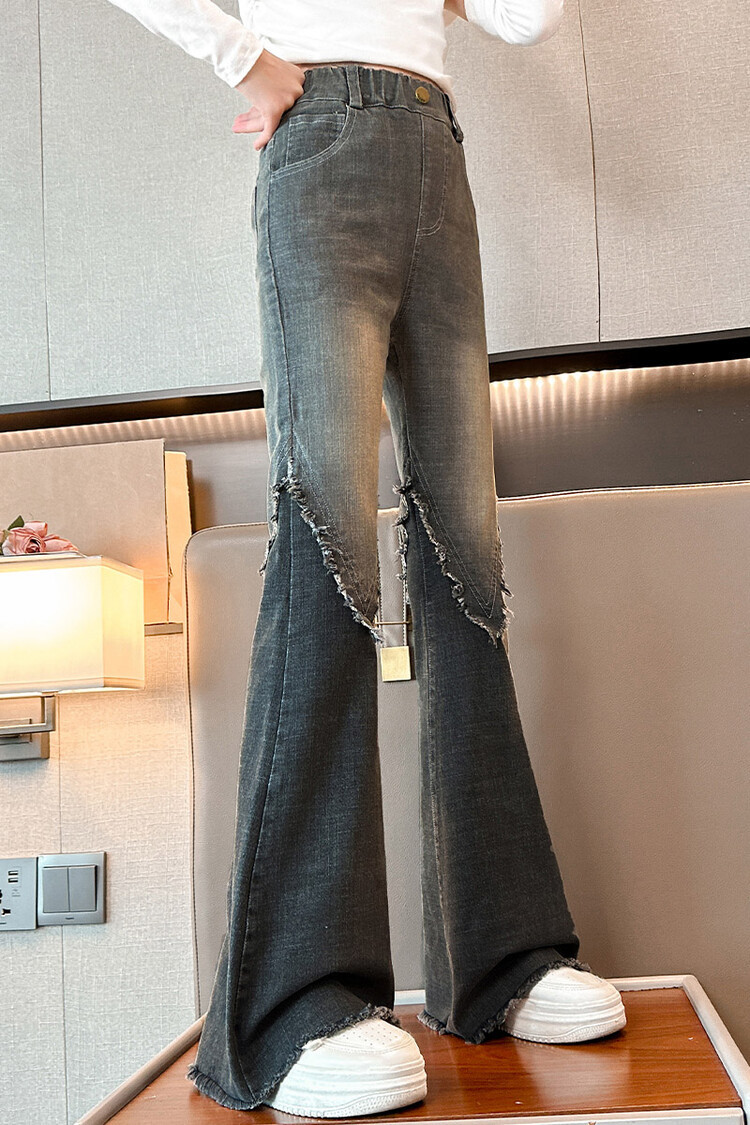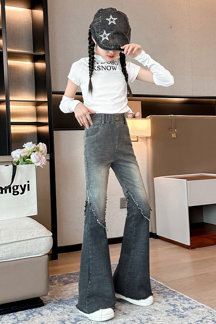 여자 바지 2024 새로운 봄과 가을 어린이 올 매치 바지 여자 달콤한 스트레치 데님 플레어 팬츠를 대신하여