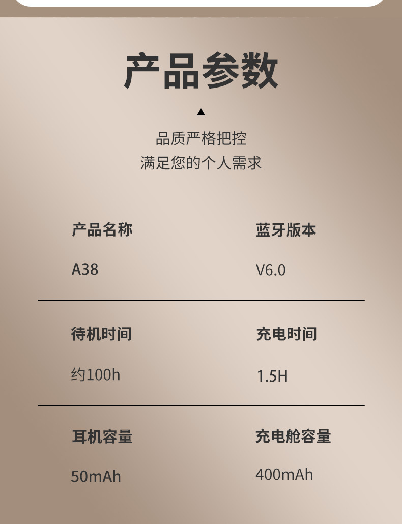 高性价比蓝牙耳机 TWS立体声 入耳检测 IPX5防水 运动耳挂 支持一件代发