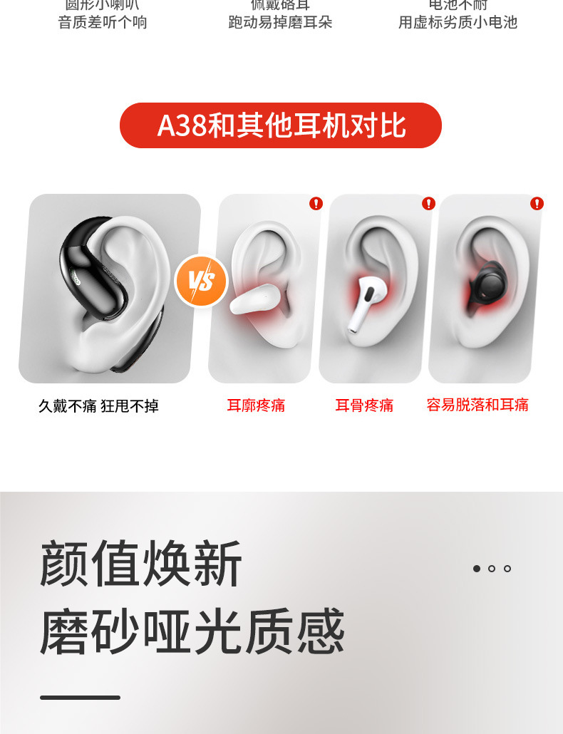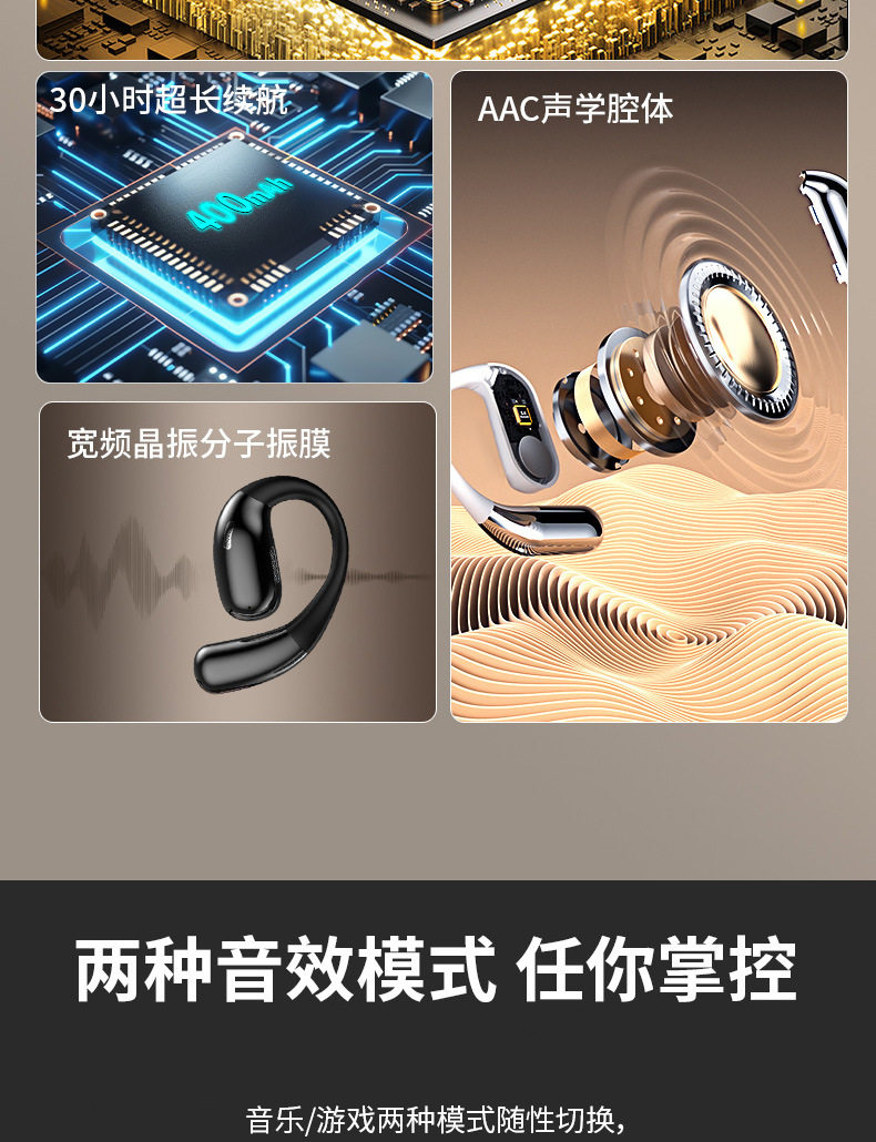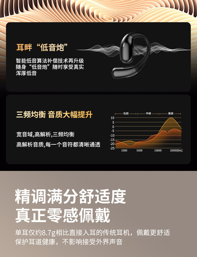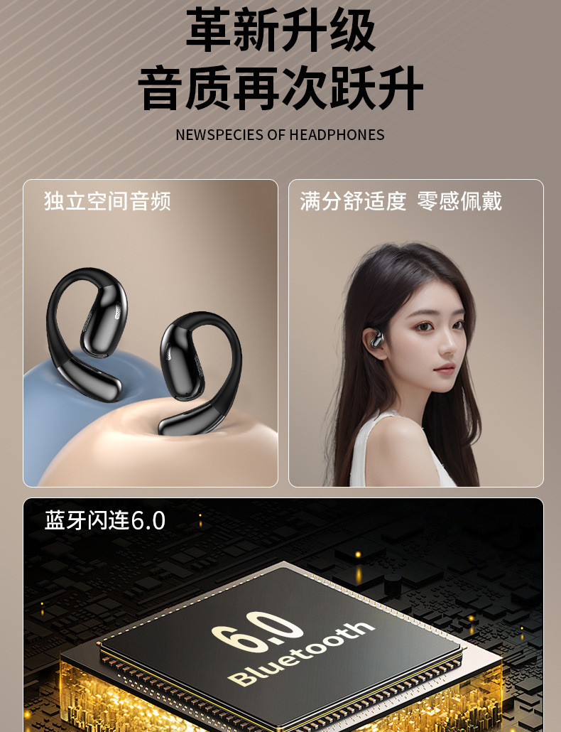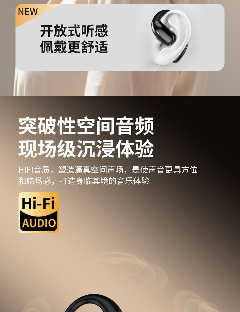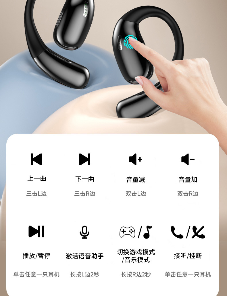 OWS开放式蓝牙耳机 不入耳舒适佩戴 超长续航高清音质 运动通勤 厂家直销