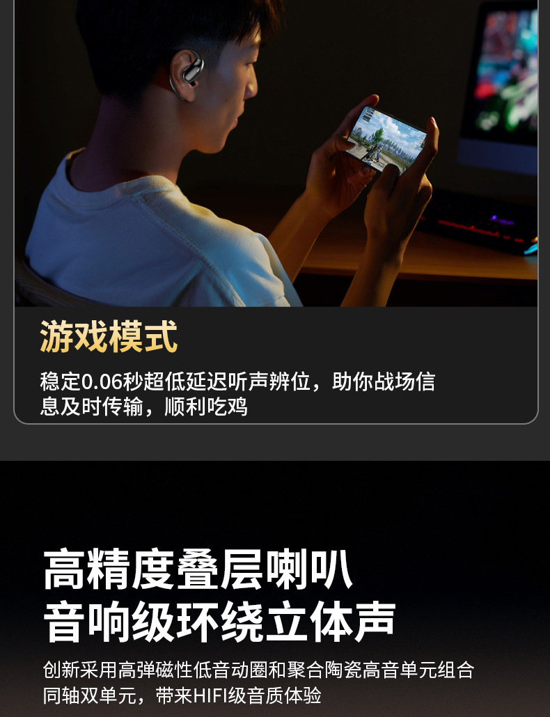 OWS开放式蓝牙耳机真无线不入耳5.3超长续航ENC降噪耳挂式