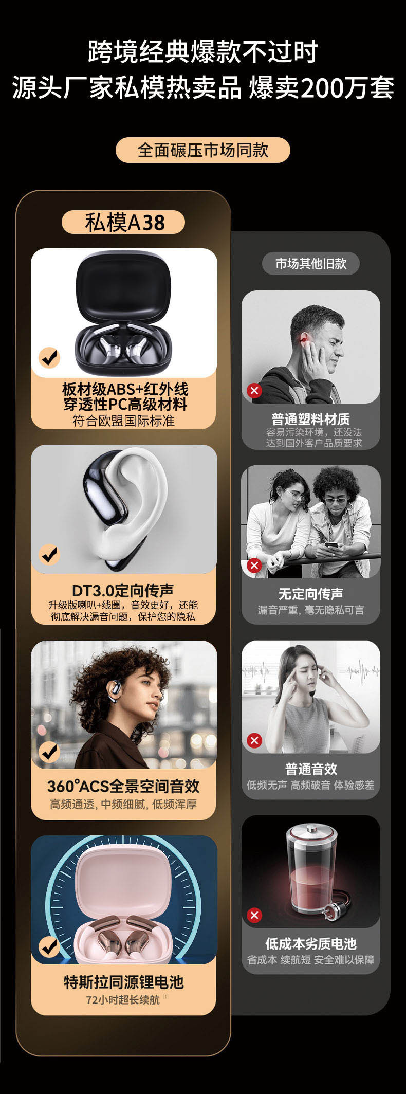 Douyin's best-selling OWS Bluetooth headphones are a new 2024 model with an open design, large battery capacity, and wireless in-ear touch