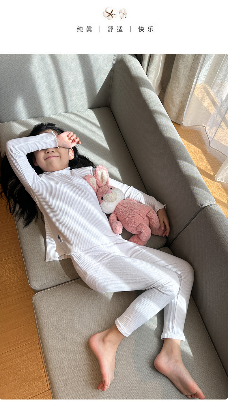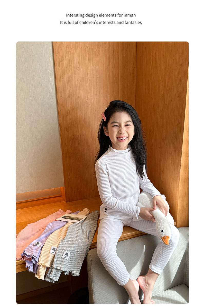 소녀 아기 구덩이 스트립 가을 옷과 바지 세트 탄성 속옷 세트 긴 소매 순수 면화베이스 단색 홈 가을과 겨울스토어 가기