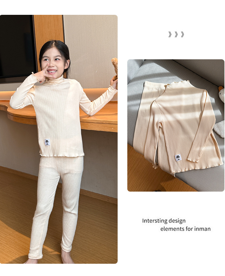 소녀 아기 구덩이 스트립 가을 옷과 바지 세트 탄성 속옷 세트 긴 소매 순수 면화베이스 단색 홈 가을과 겨울