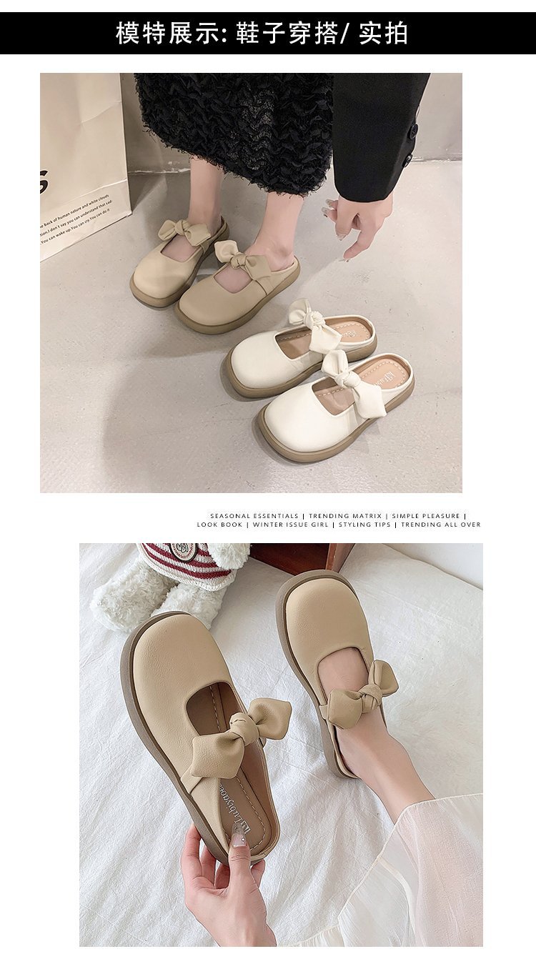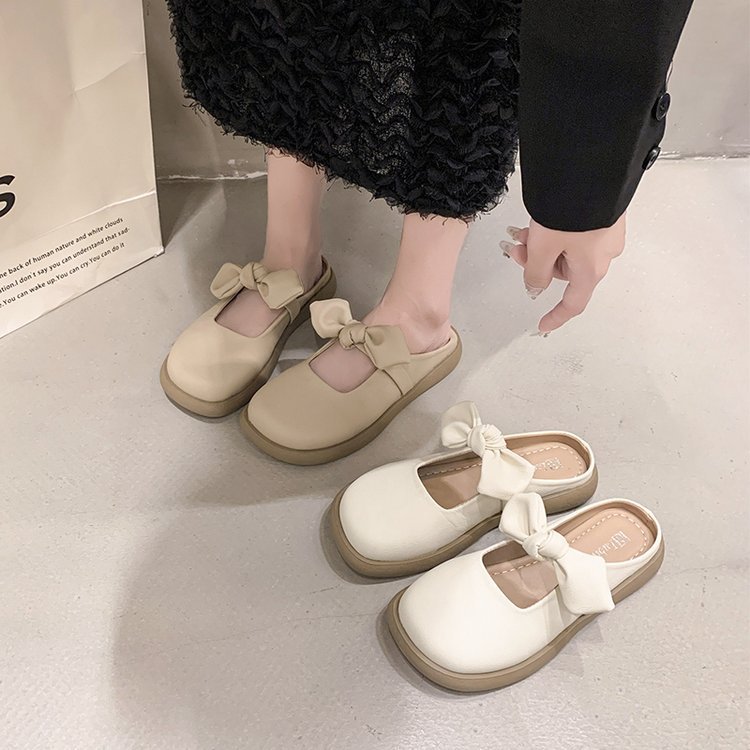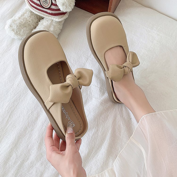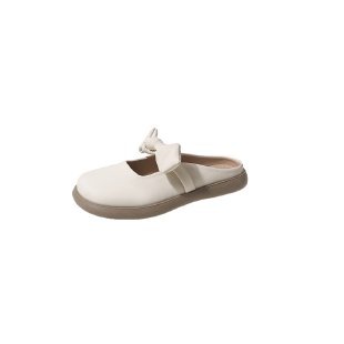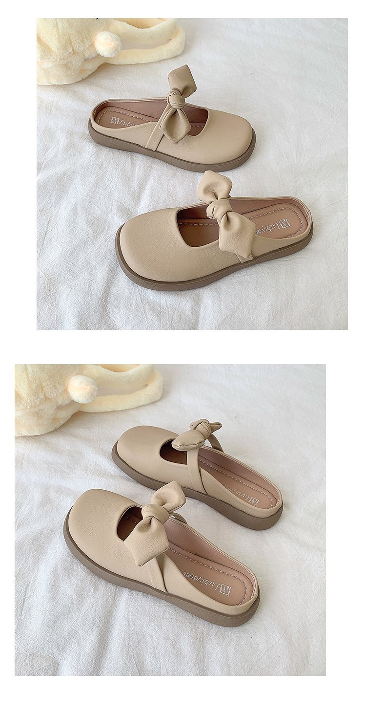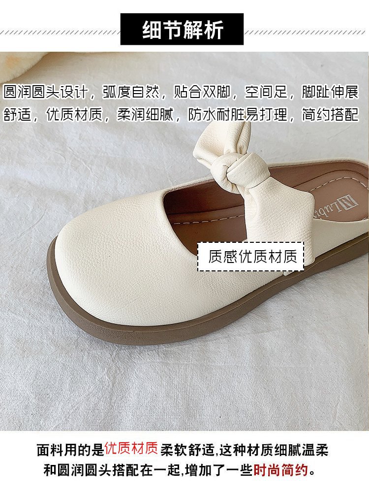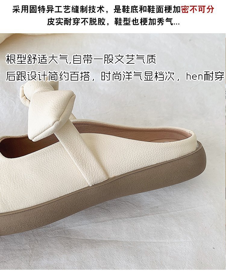 페어리 스타일 활 커버 헤드 하프 슬리퍼 여성 여름 가을 2024 새로운 모리 스타일 부드러운 바닥 스커트 플랫 샌들