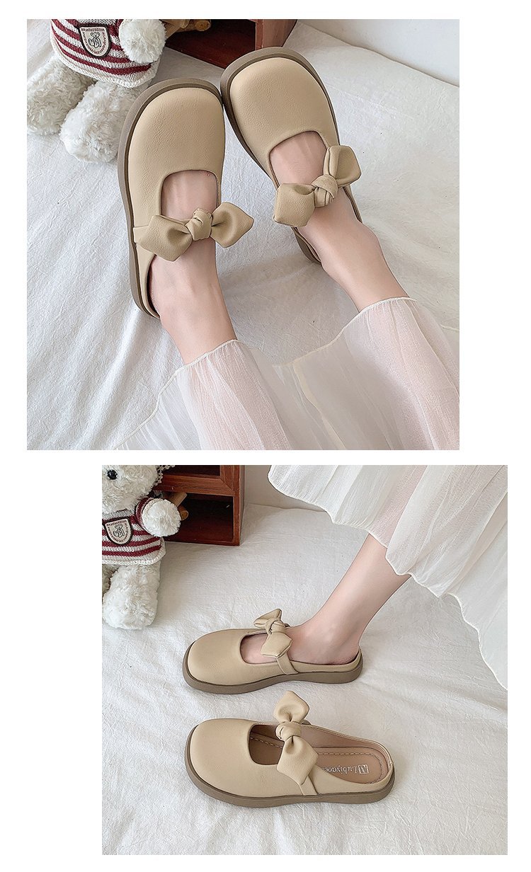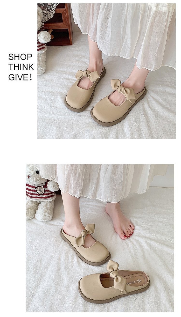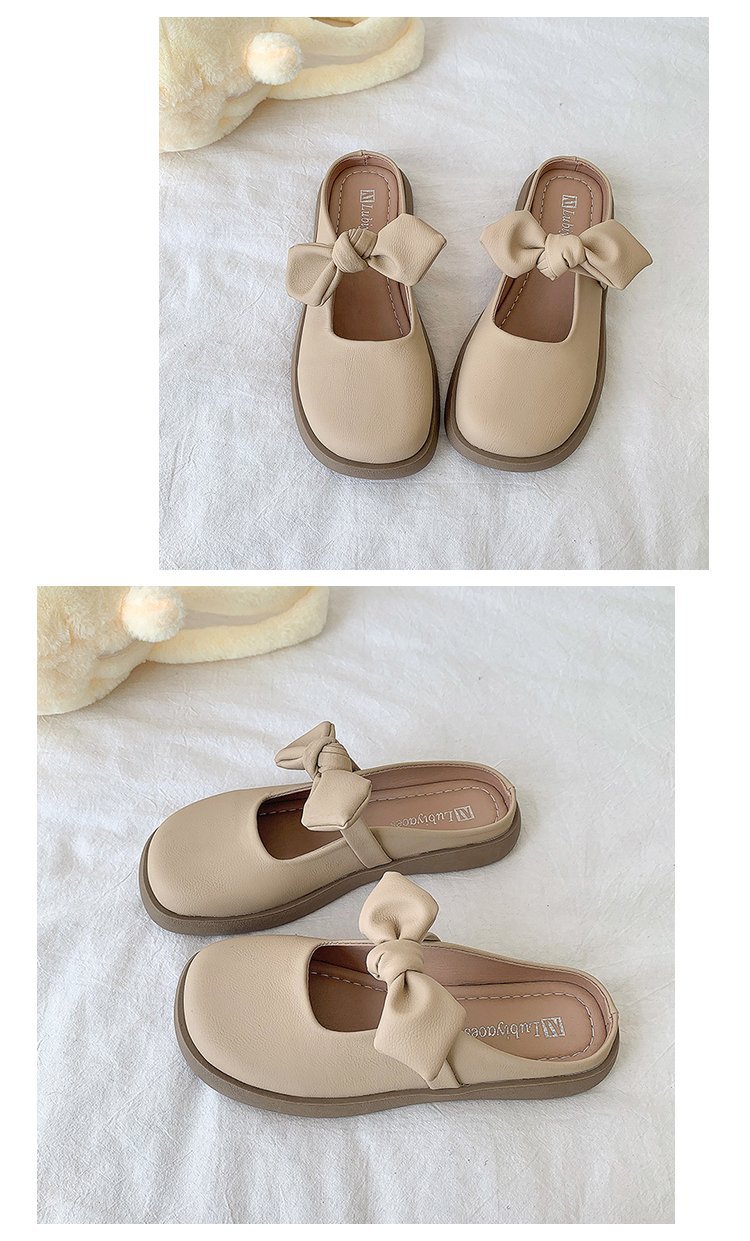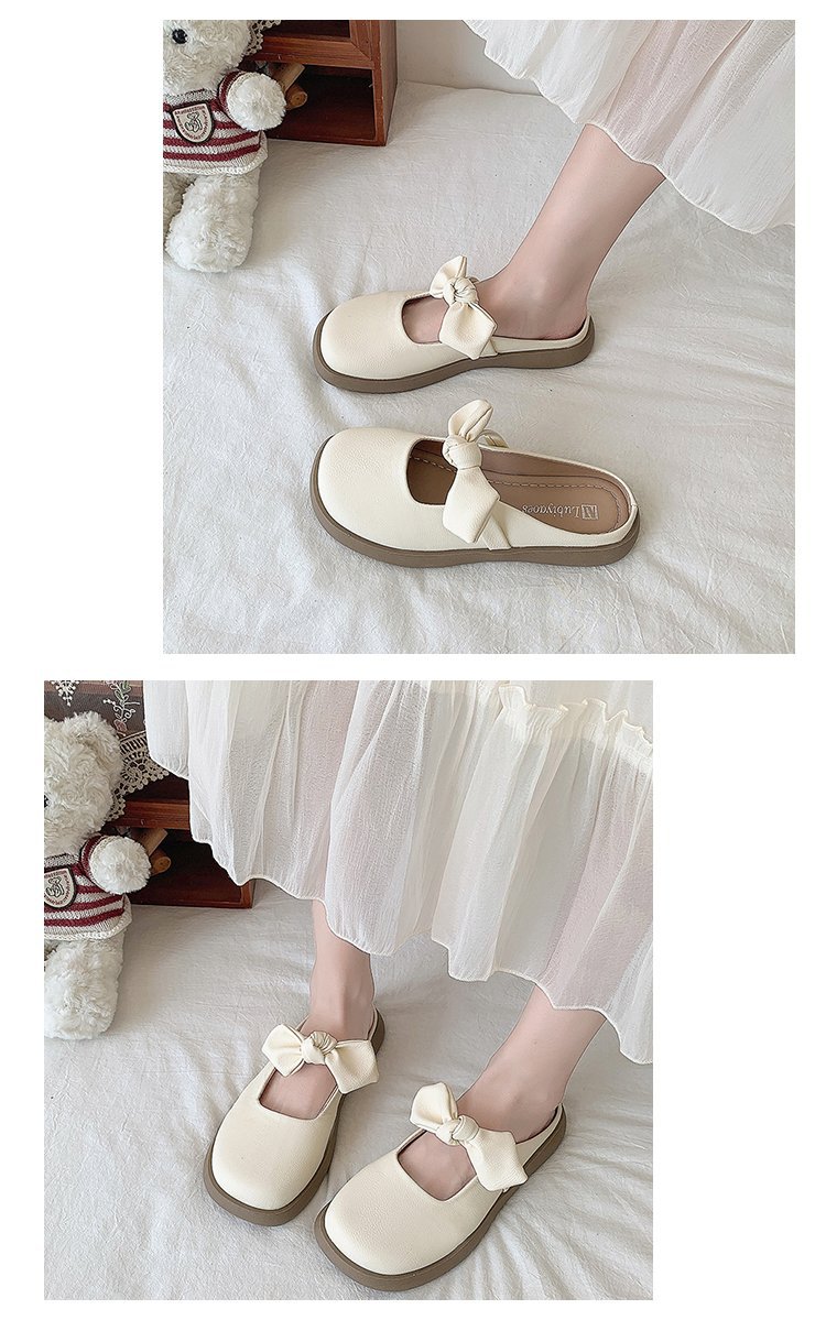 페어리 스타일 활 커버 헤드 하프 슬리퍼 여성 여름 가을 2024 새로운 모리 스타일 부드러운 바닥 스커트 플랫 샌들