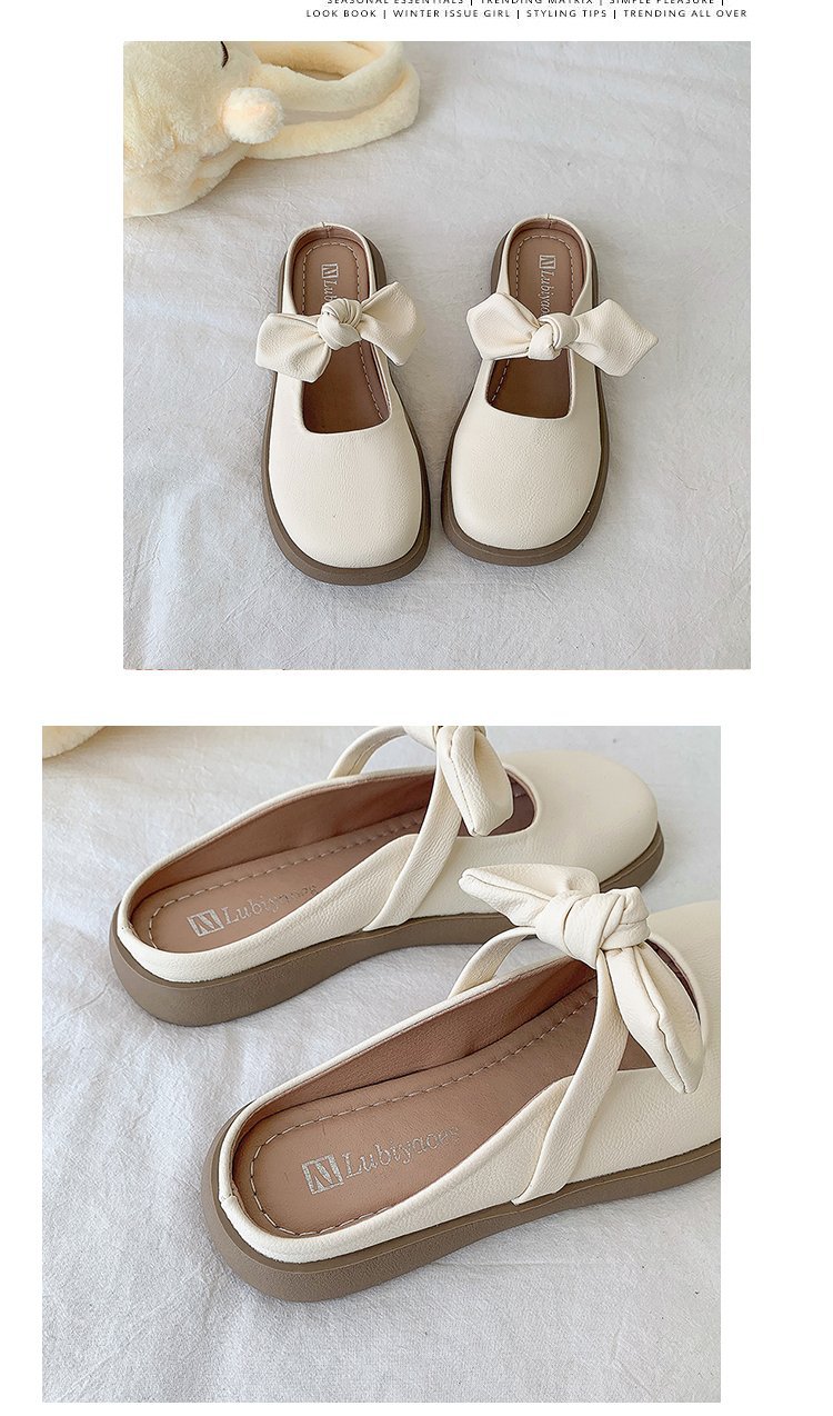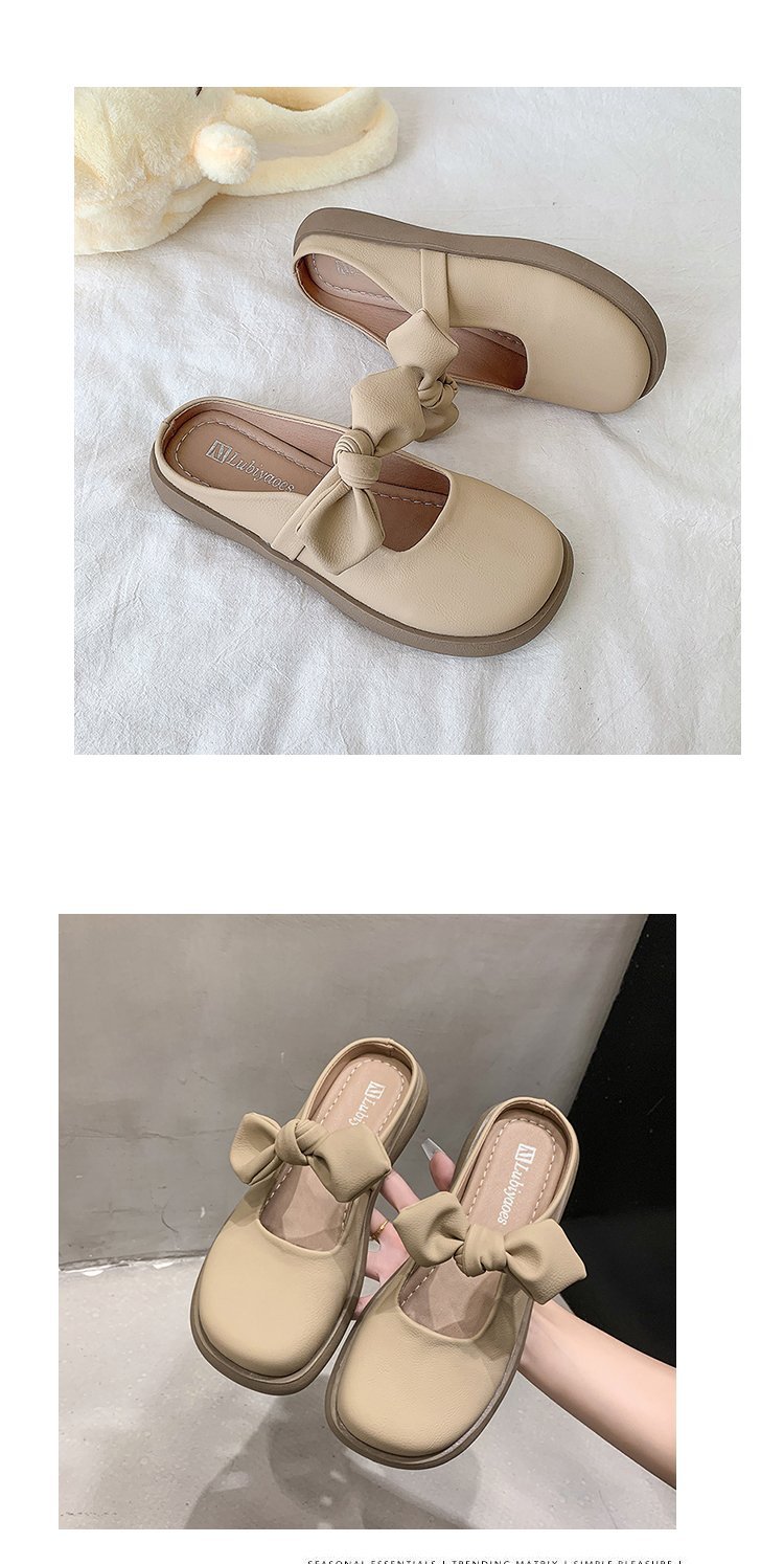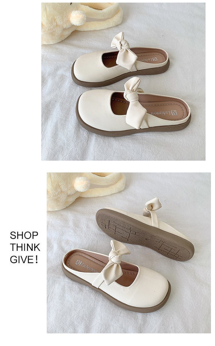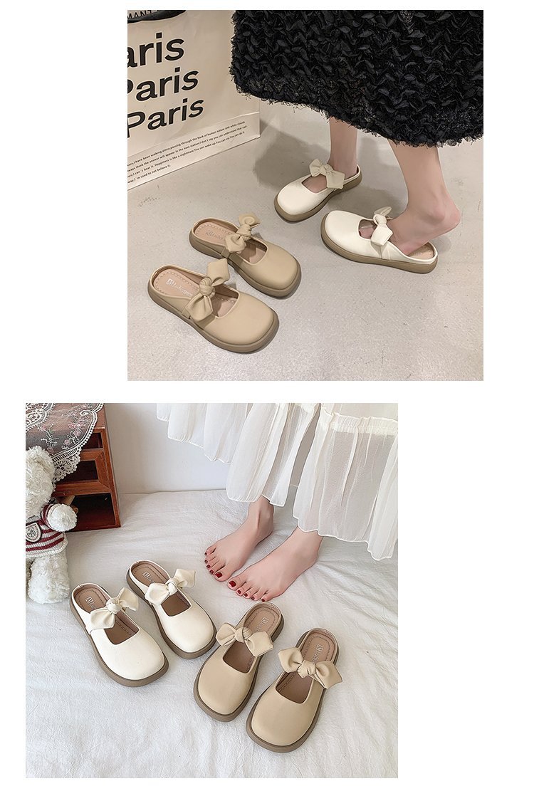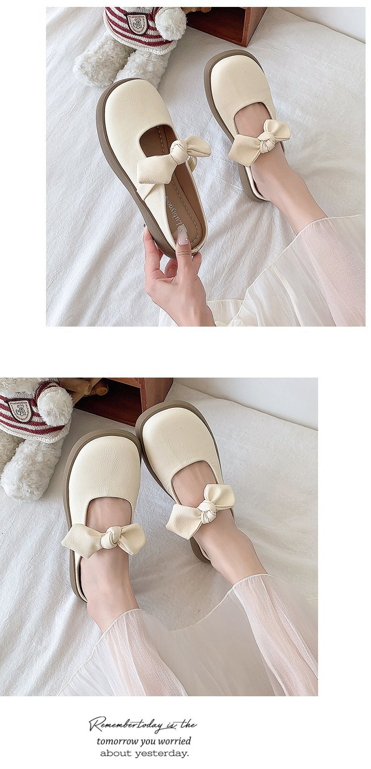 페어리 스타일 활 커버 헤드 하프 슬리퍼 여성 여름 가을 2024 새로운 모리 스타일 부드러운 바닥 스커트 플랫 샌들