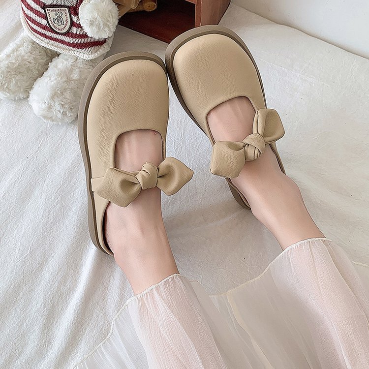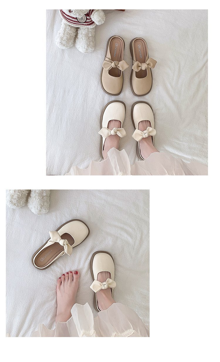 페어리 스타일 활 커버 헤드 하프 슬리퍼 여성 여름 가을 2024 새로운 모리 스타일 부드러운 바닥 스커트 플랫 샌들스토어 가기