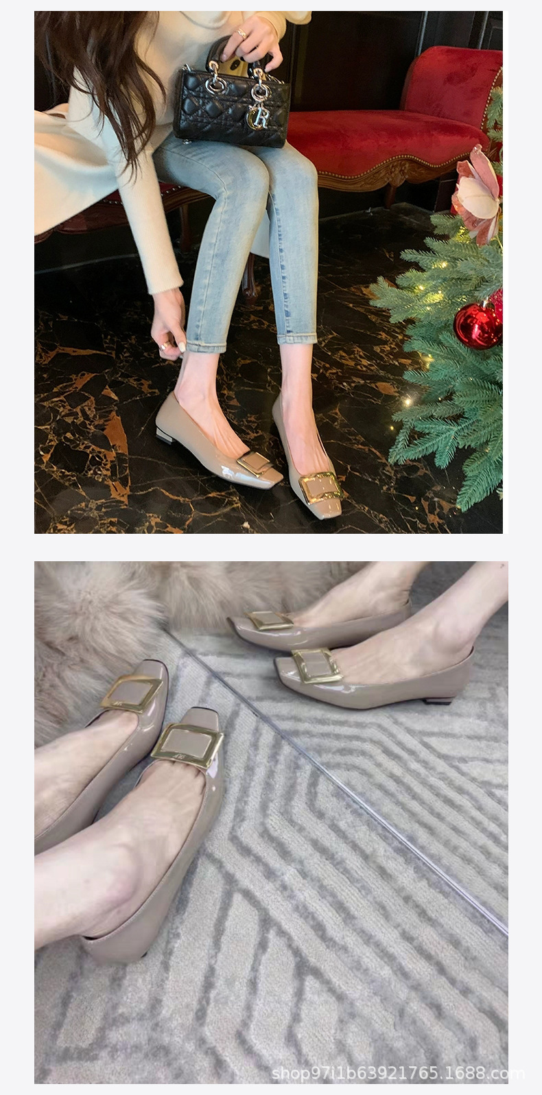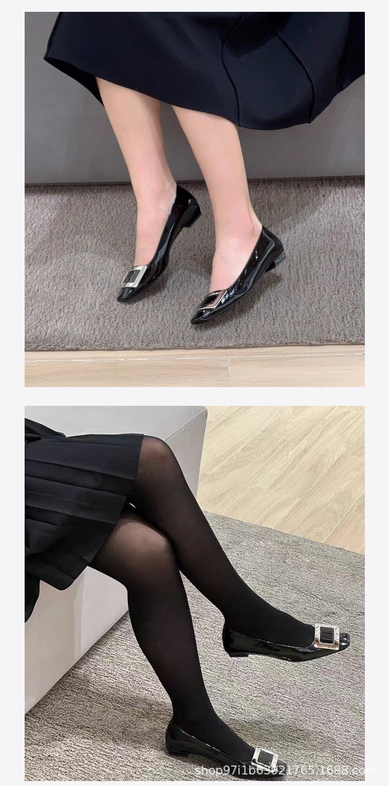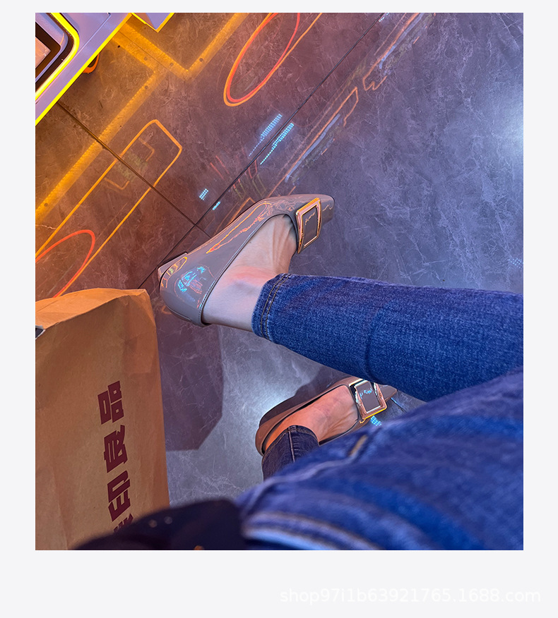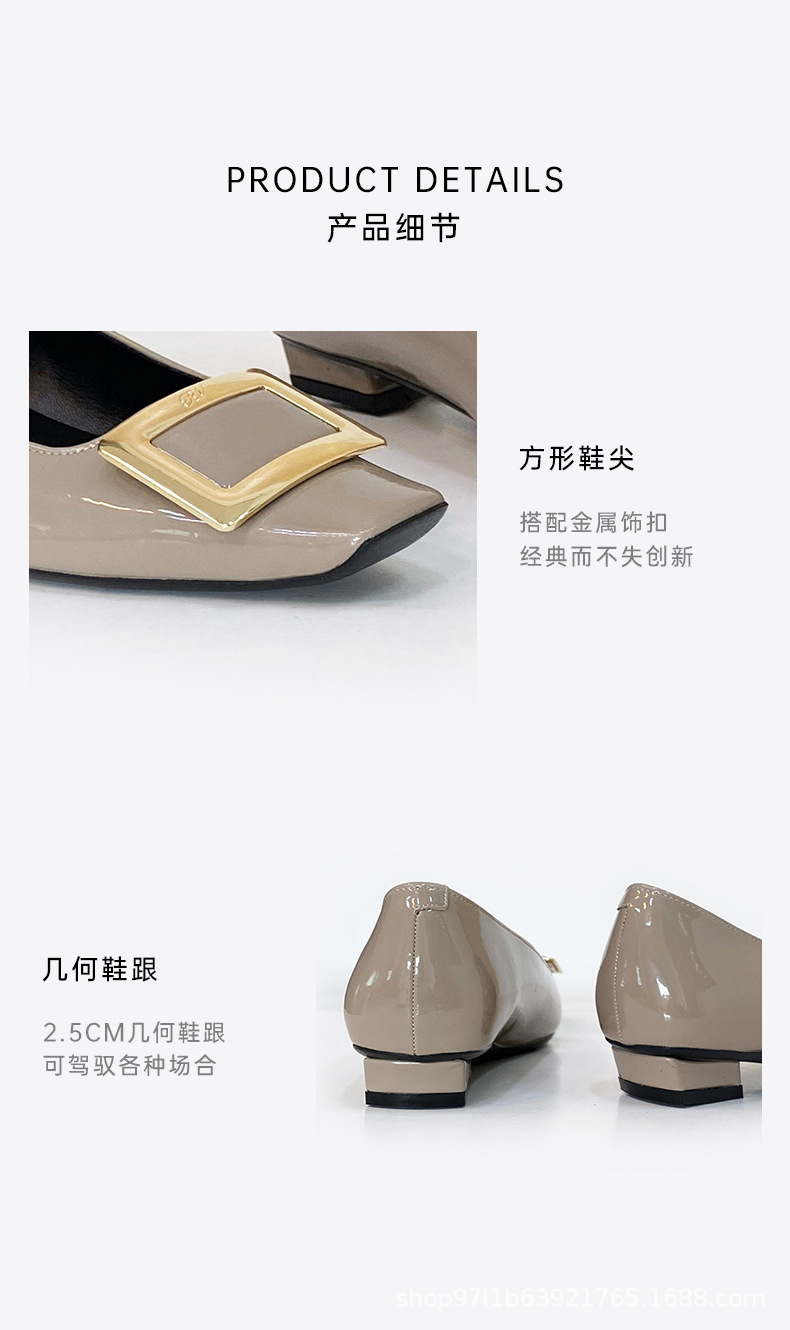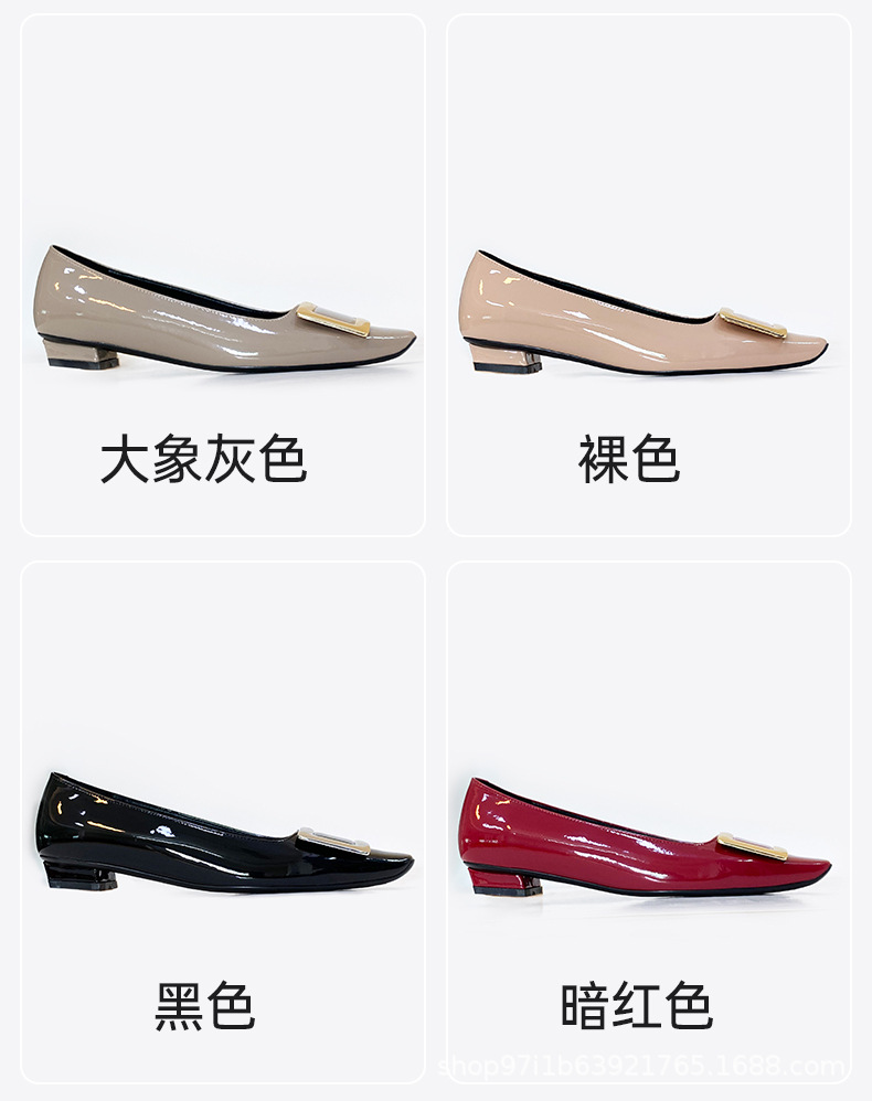 【특가판】2025 가을 신상 RV 페이턴트 가죽 플랫 여성 구두 클래식 스퀘어토 직장 출퇴근용 얕은 구두스토어 가기