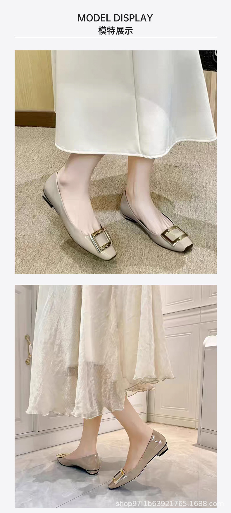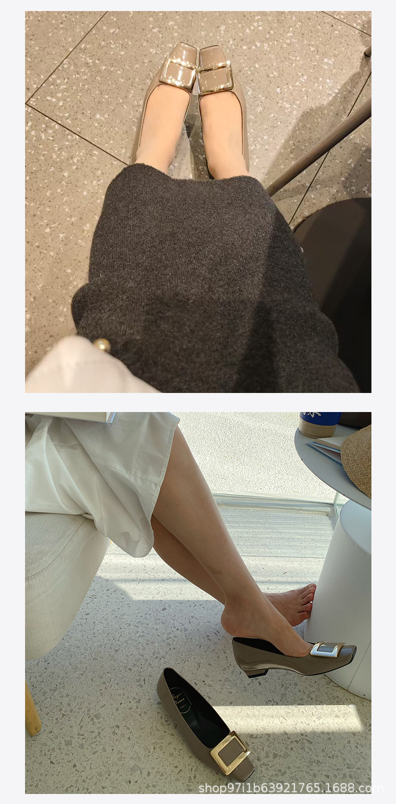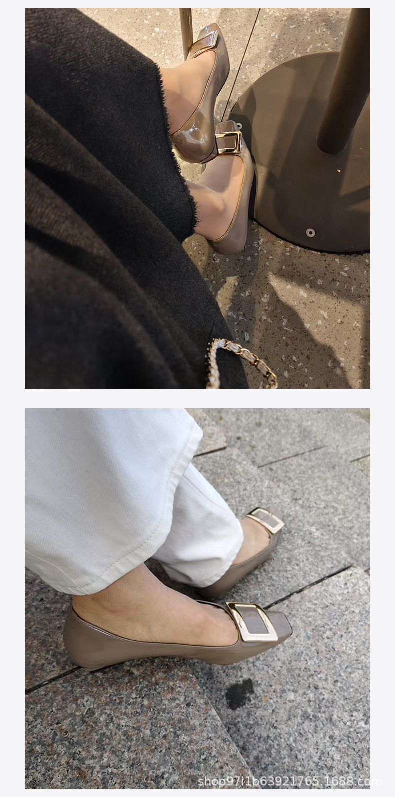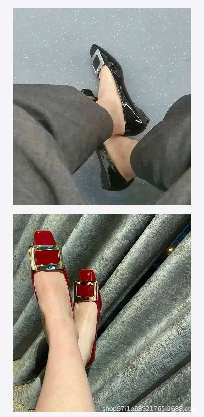 【특가판】2025 가을 신상 RV 페이턴트 가죽 플랫 여성 구두 클래식 스퀘어토 직장 출퇴근용 얕은 구두스토어 가기