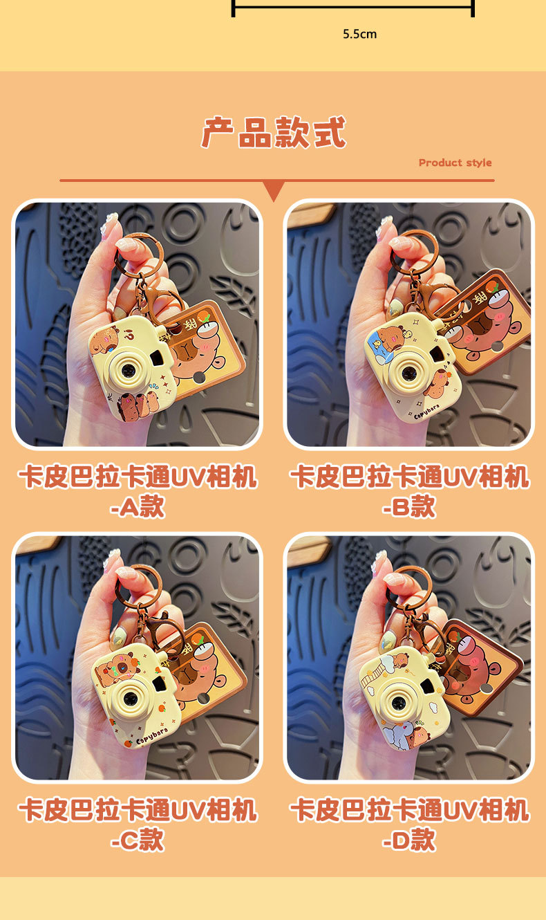원래 Capibalakatong 카메라 빛나는 키 체인 귀여운 Capybara 인터넷 축하 키 체인 커플 백 펜던트
