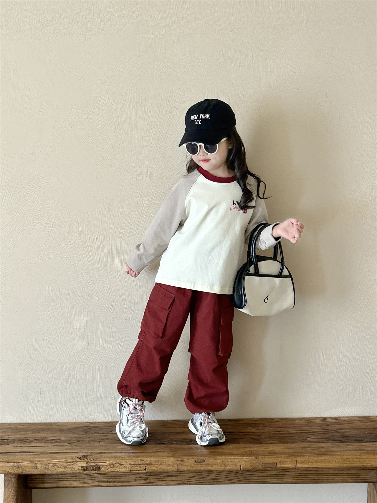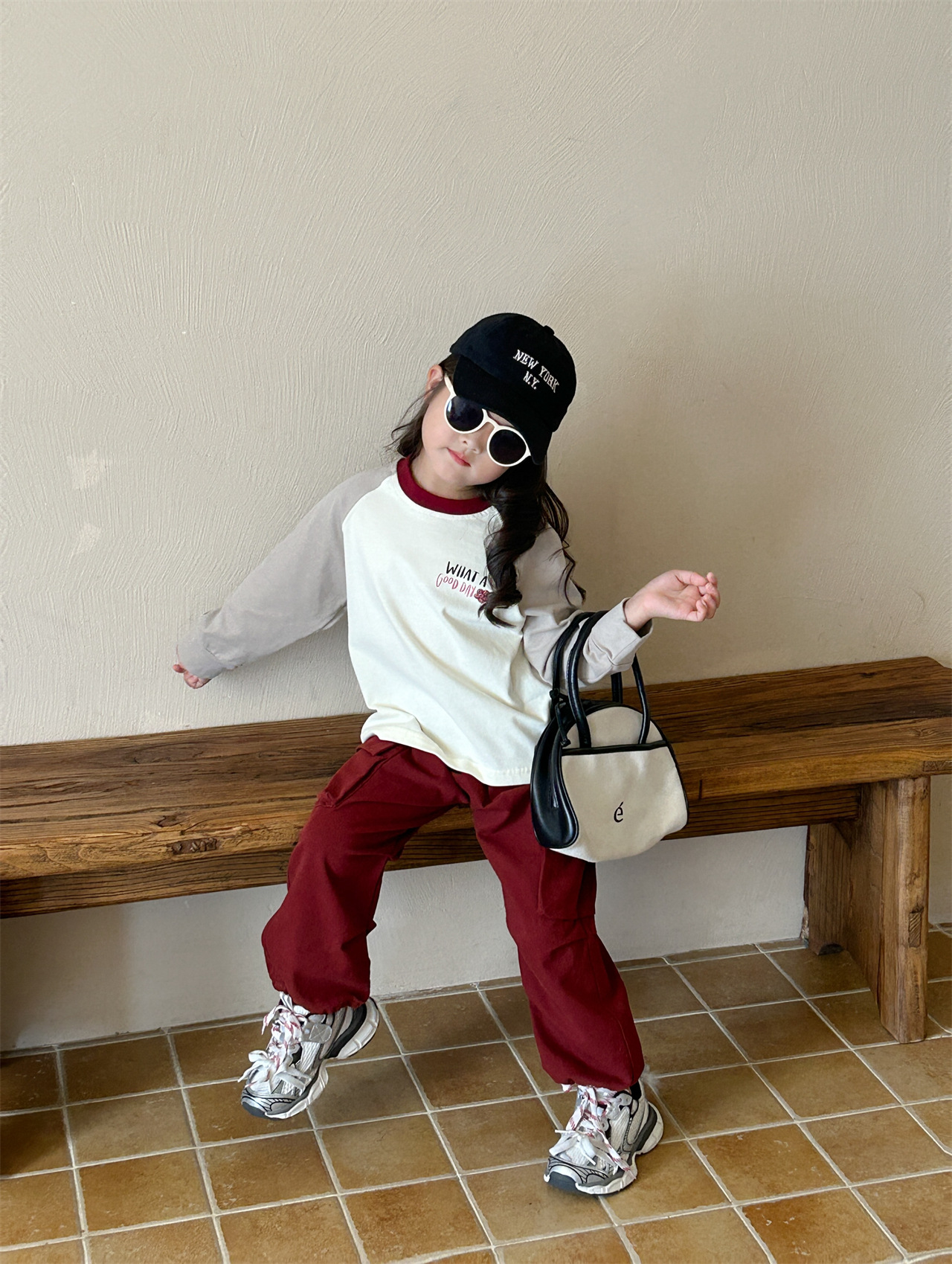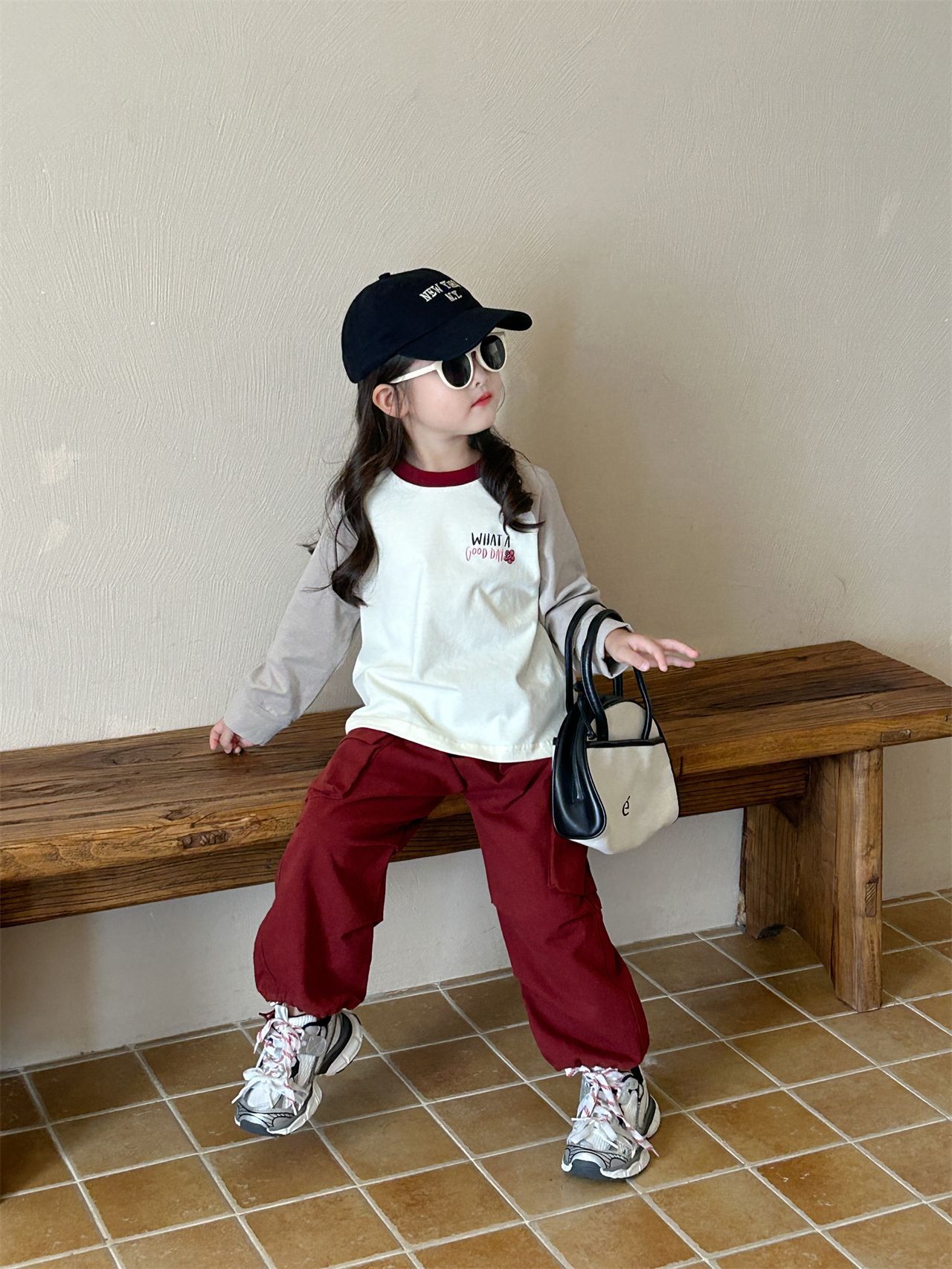 《재고정리, 반품/교환 불가》여아 긴팔 티셔츠 2면 순면 베이스 레이어 셔츠 어린 여자아이 레터링 루즈핏 상의 작업복 바지스토어 가기