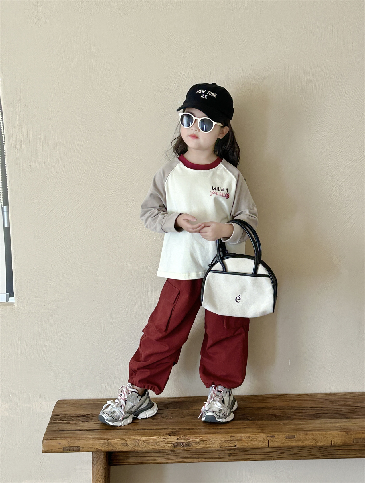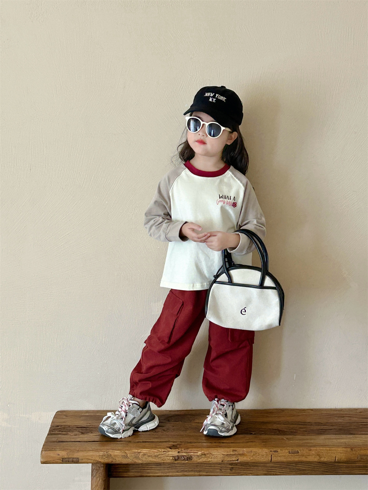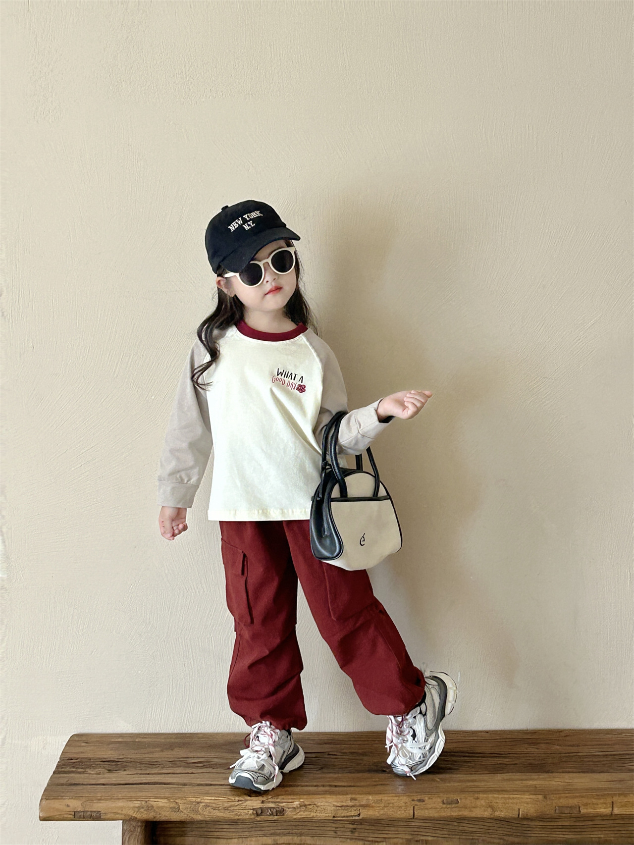 《재고정리, 반품/교환 불가》여아 긴팔 티셔츠 2면 순면 베이스 레이어 셔츠 어린 여자아이 레터링 루즈핏 상의 작업복 바지스토어 가기