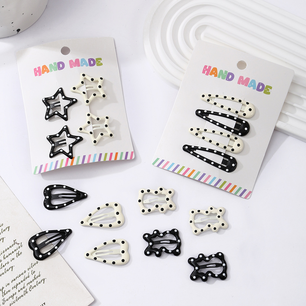 새로운 흑백 시리즈 머리핀 머리 장식 귀여운 스타 Y2K 머리핀 여성 사이드 클립 앞머리 bb 클립 머리핀 시리즈