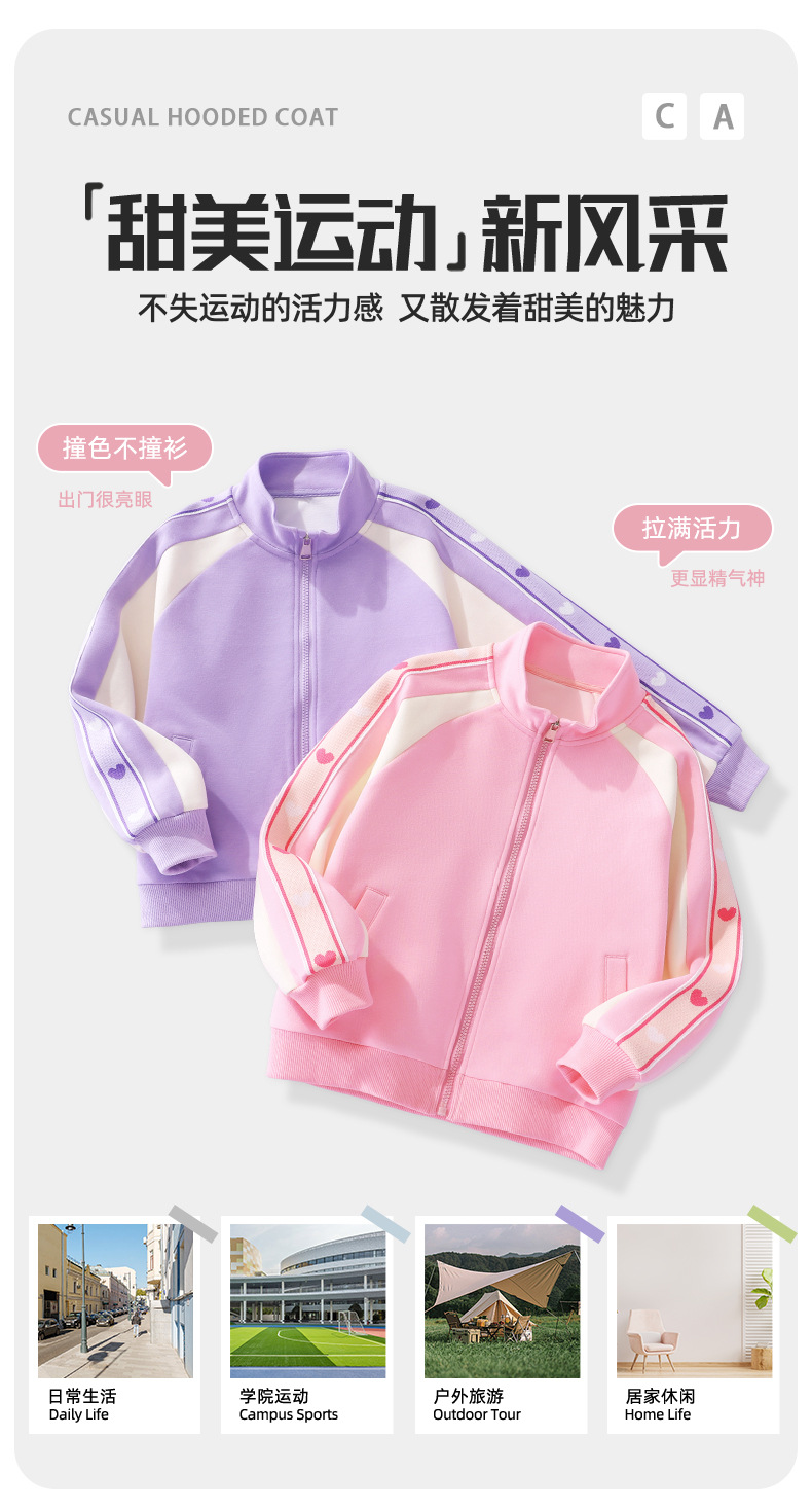 도몽두 여아 자켓 2025 봄 가을 스타일 여아 배색 지퍼 상의 큰 아이 야외 스포츠 가을옷 FJS