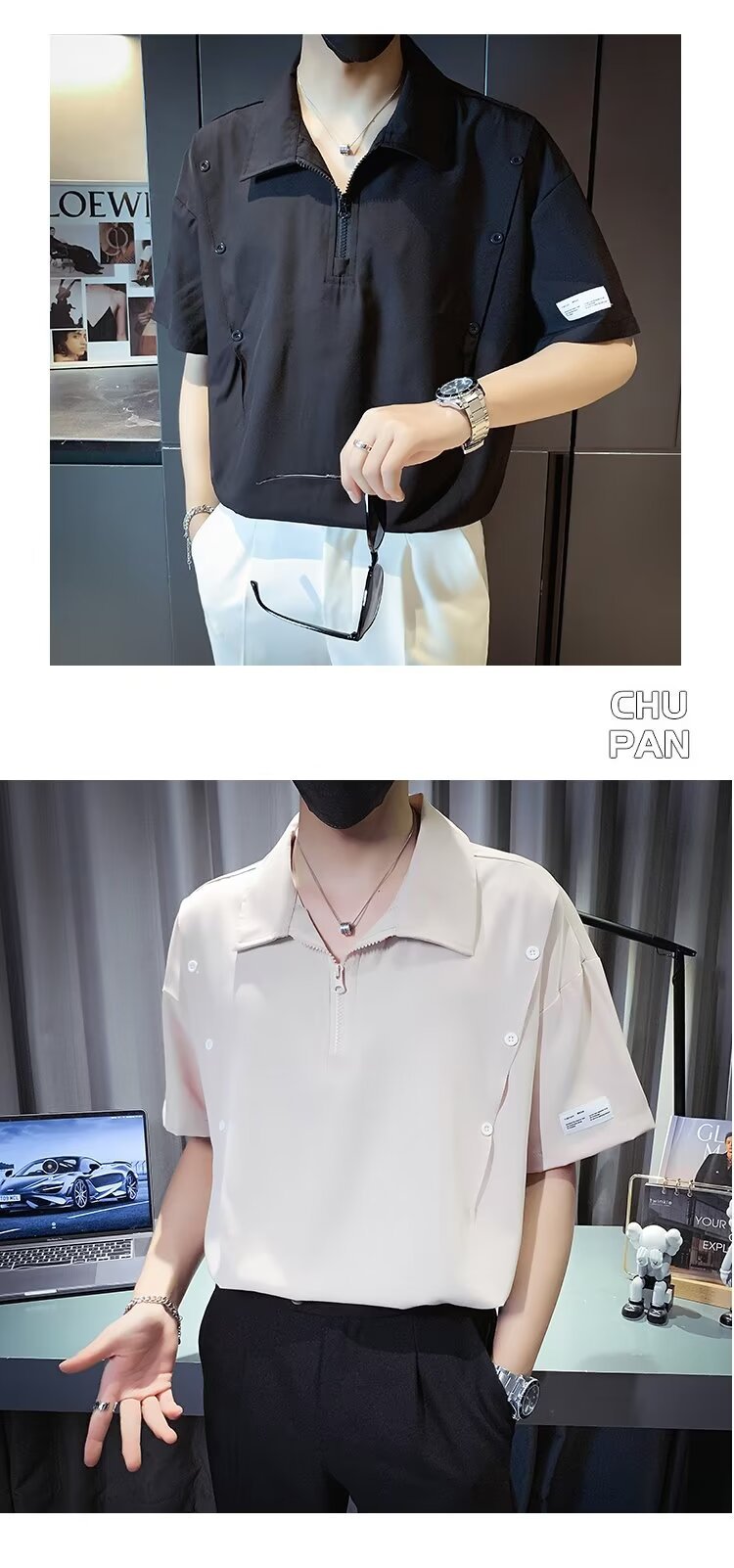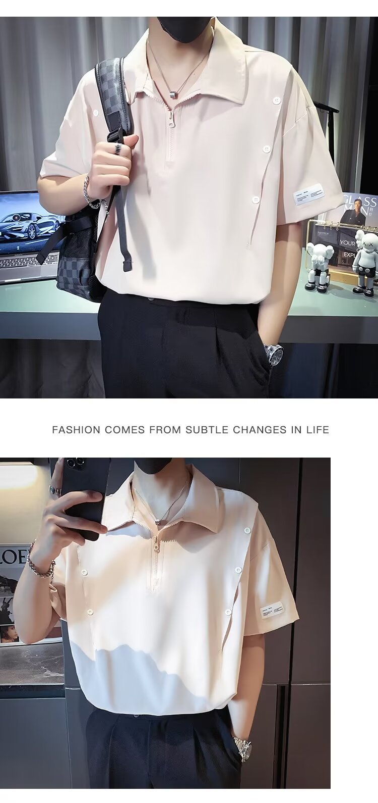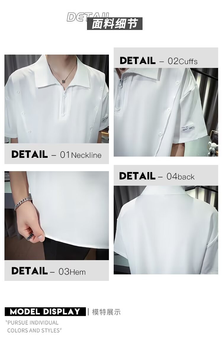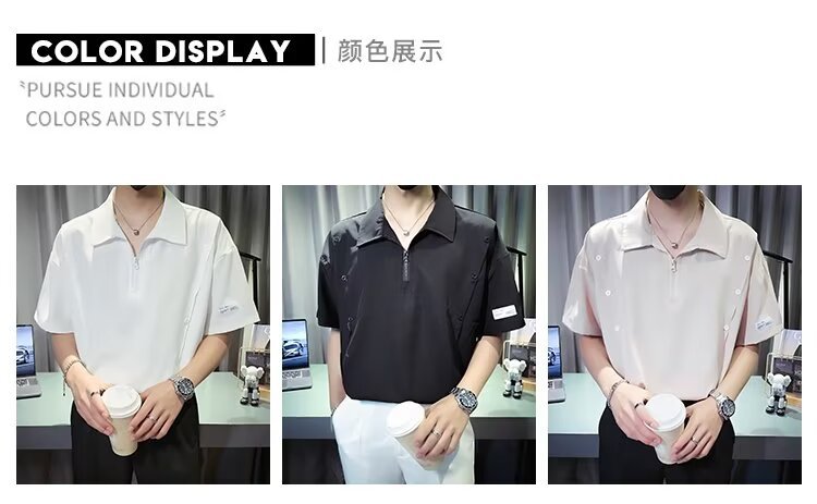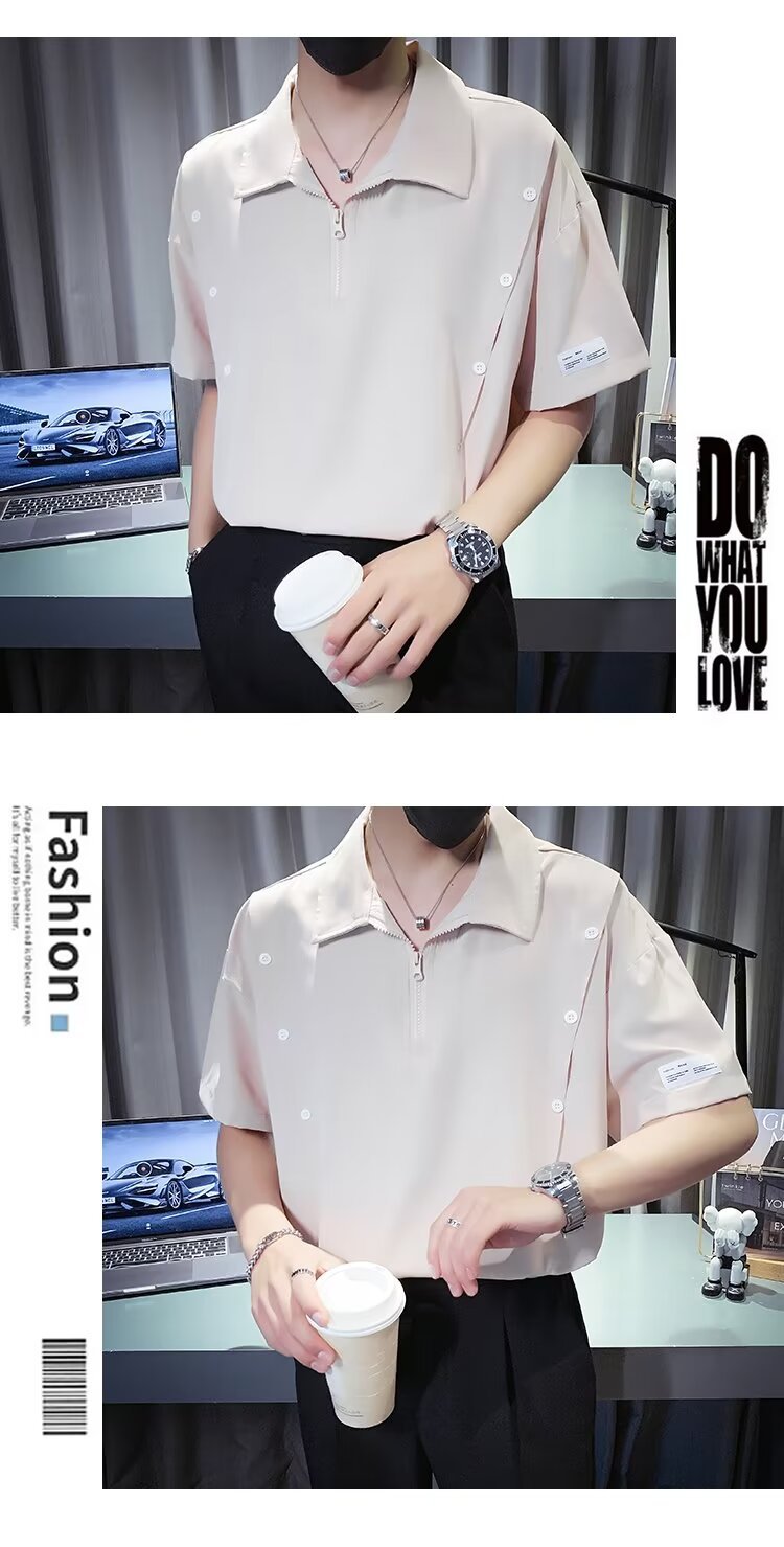 반 지퍼 아이스 실크 반팔 남성 디자인 센스 니쉬 셔츠 티셔츠 트렌디 한 브랜드 패셔블 탑 쿨 센스 반소매 폴로 셔츠스토어 가기