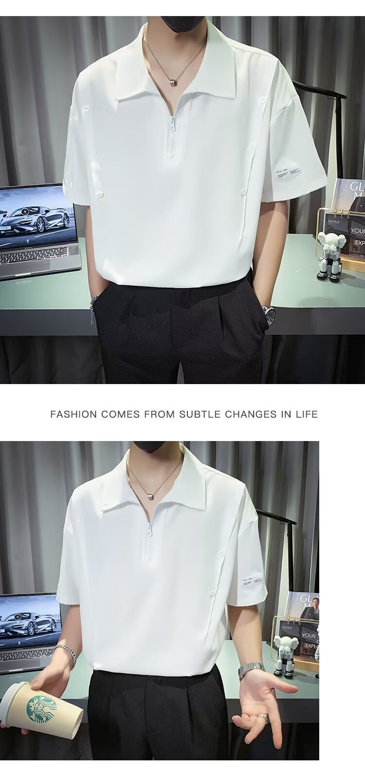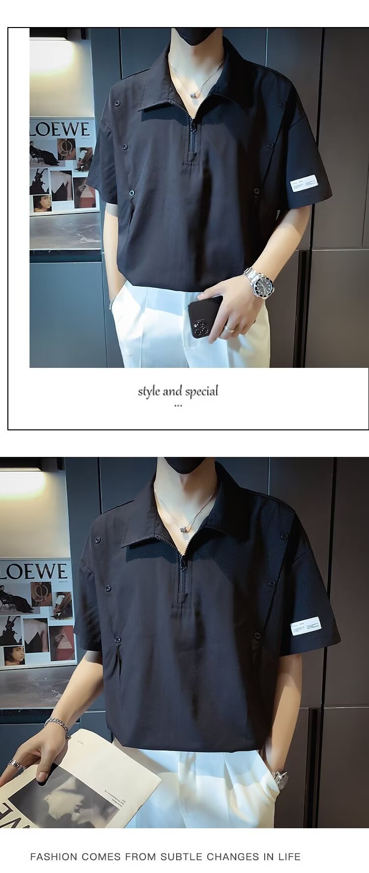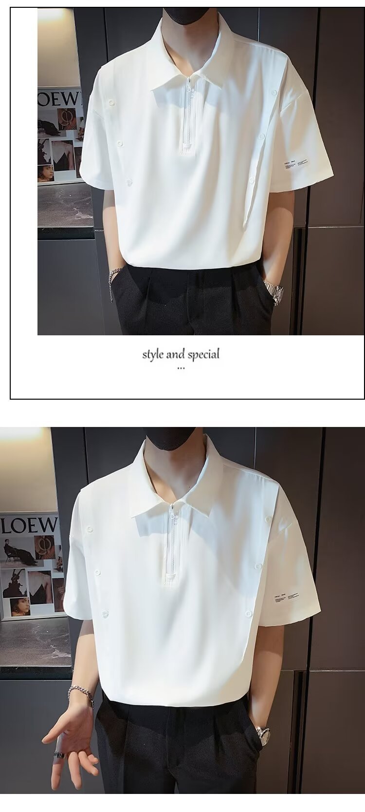 반 지퍼 아이스 실크 반팔 남성 디자인 센스 니쉬 셔츠 티셔츠 트렌디 한 브랜드 패셔블 탑 쿨 센스 반소매 폴로 셔츠스토어 가기