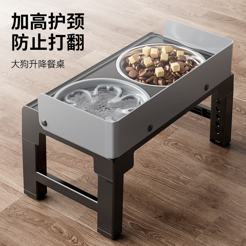 새로운 수유 스플래쉬 보울 접히는 개 식품 그릇 목 보호 느린 식품 스테인레스 스틸 미디어와 대형 개 더블 볼