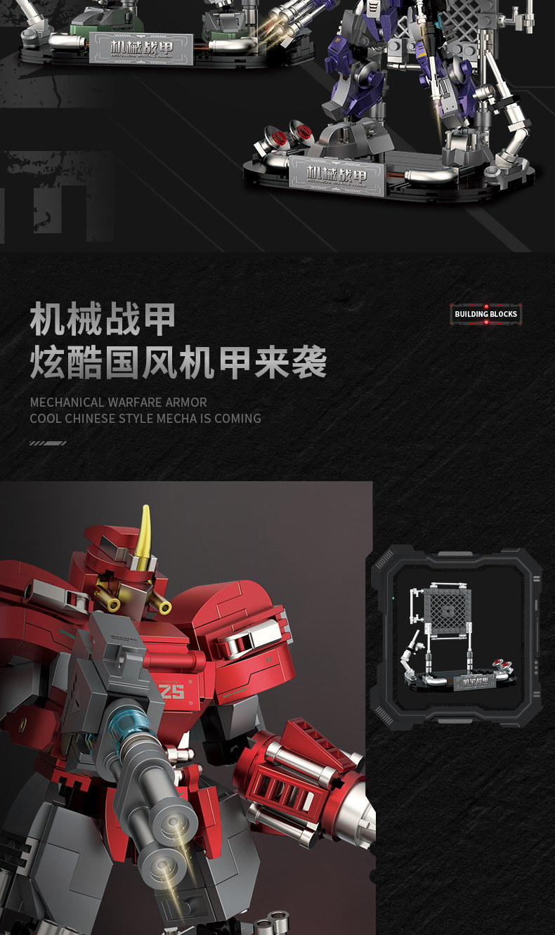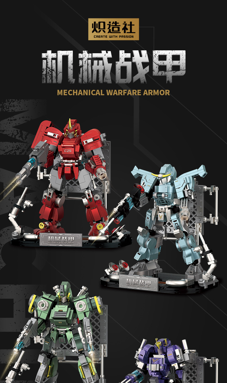 Chizao Society 기계식 갑옷 Guofeng Mecha 조립 모델 장식품 로봇 건물 블록 어린이 장난감 소년 선물