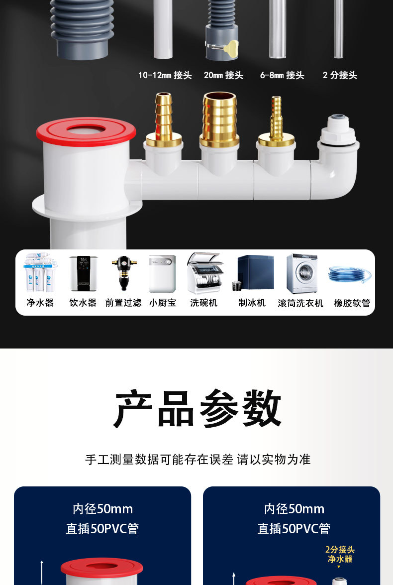 • 하수관 배수티 + 6/8mm 커넥터 [소형 주방 보물]