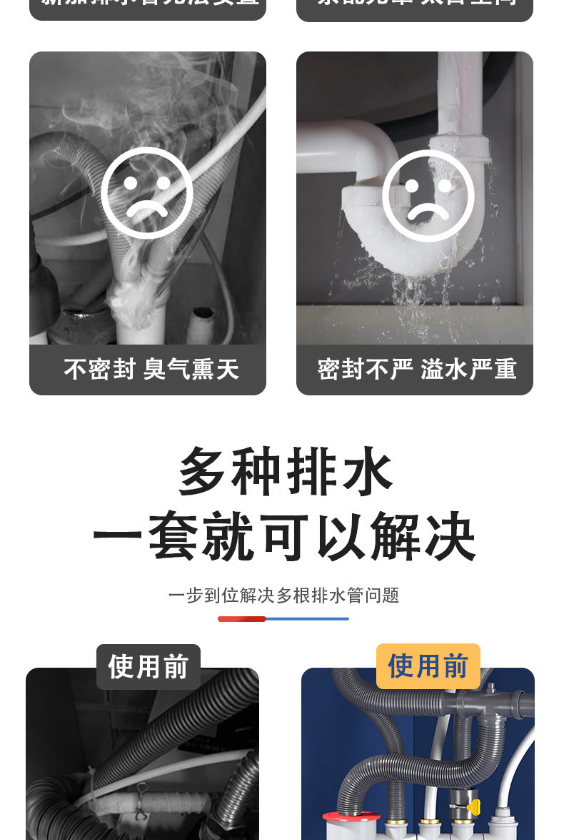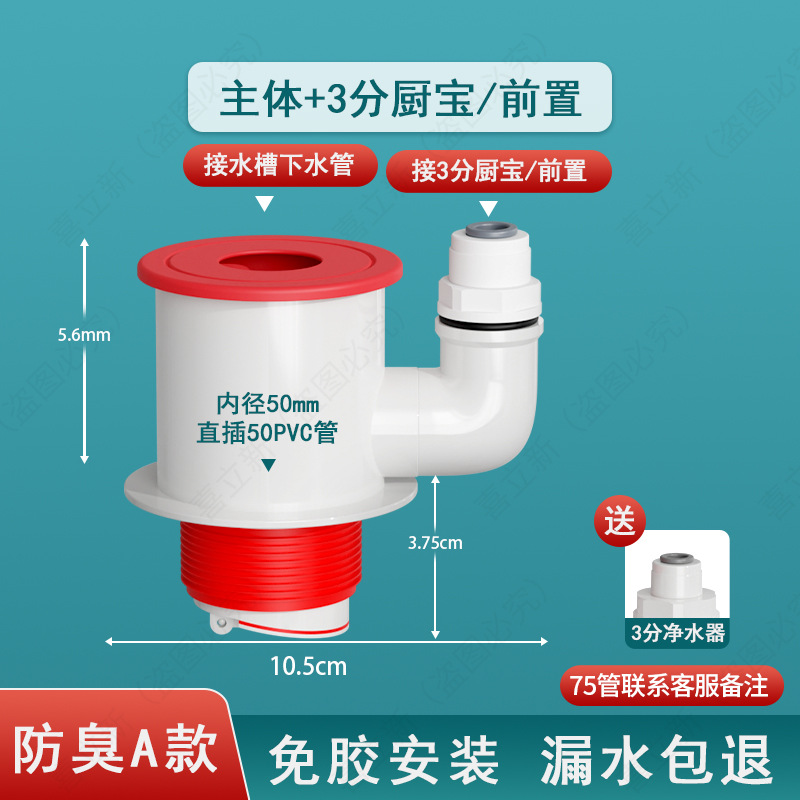 주방 하수도 파이프 3 방향 야채 세척 분지 배수 3 방향 탈취제 유물 반향 방지 냄새 분리기 밀봉 싱크대스토어 가기
