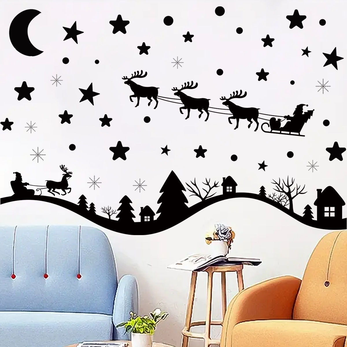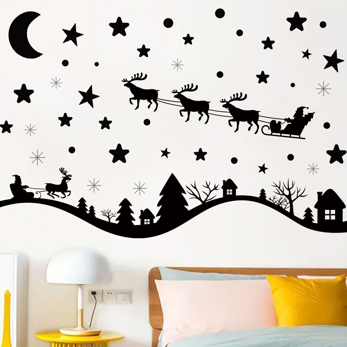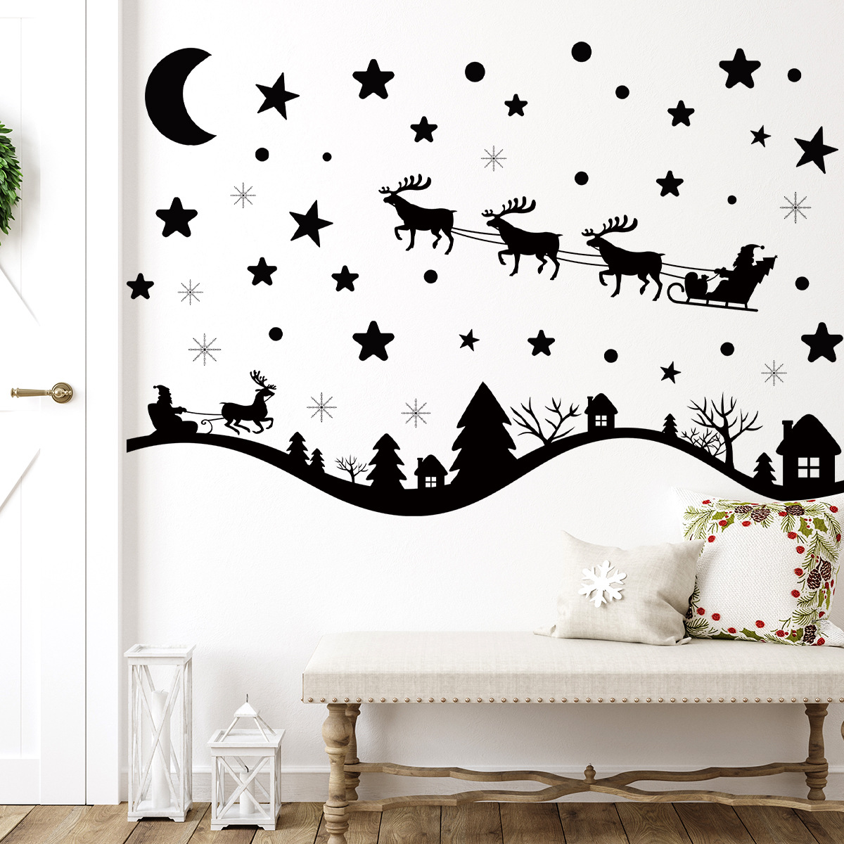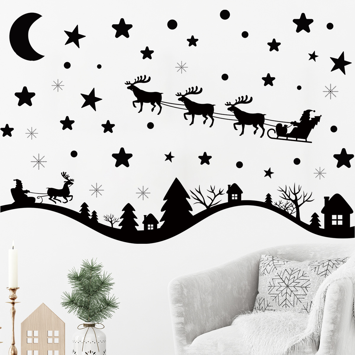크리스마스 이브 엘크 썰매 산타 셀프 접착 벽 스티커 Ins 축제 파티 레이아웃 장식 스티커 BR0775F